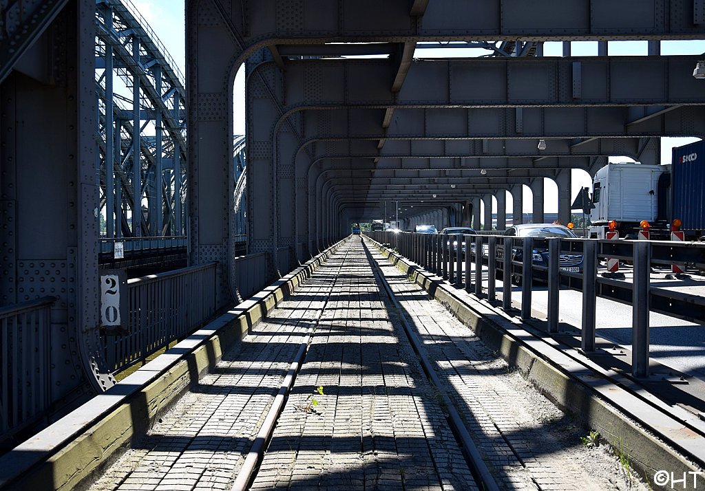 Im Hintergrund die Rethehubbrücke und die neue Retheklappbrücke