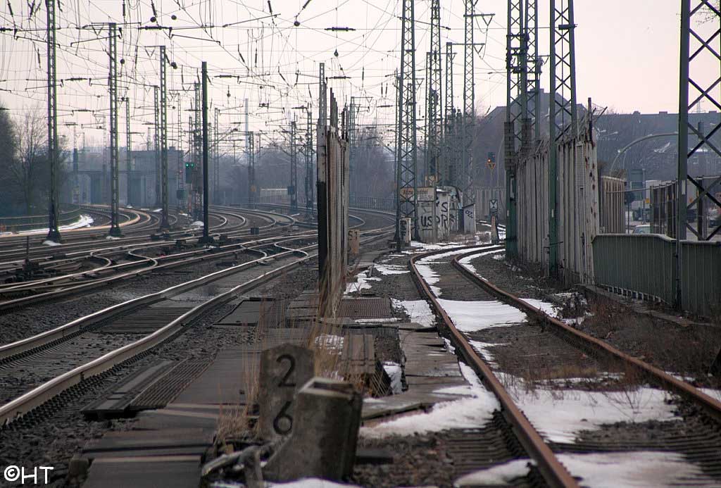 km 30,6 (rechts) gehört zur Hafenbahn Veddeler Damm, Weiche HBS 004, km 30,0 - Gleisabschluss in km 30,7 - Streckenunterbrechung - Hamburg Kai rechts