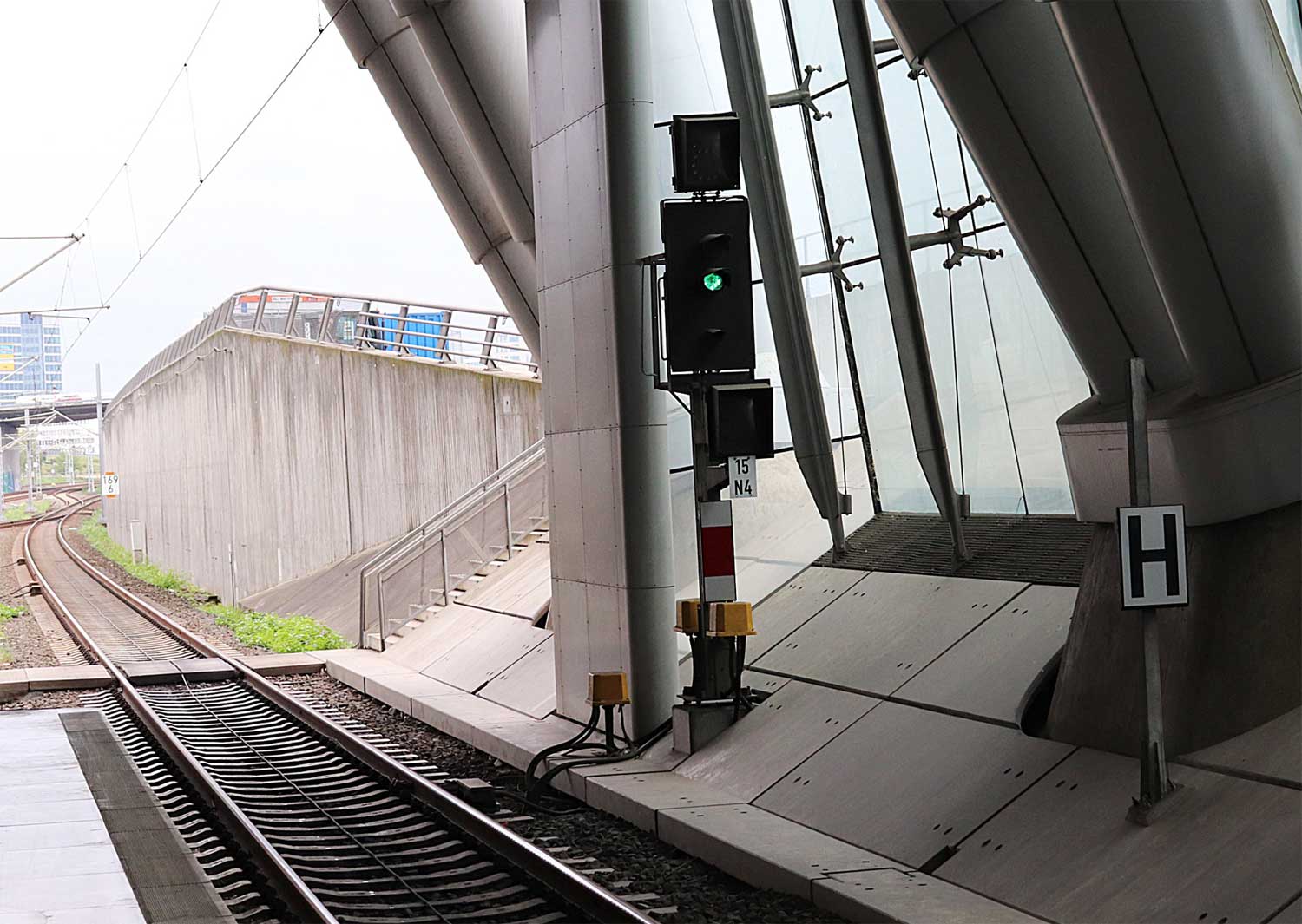 km 169,0 (Richtungsgleis) in Frankfurt (Main) Flughafen Fernbahnhof - Blick Richtung Köln