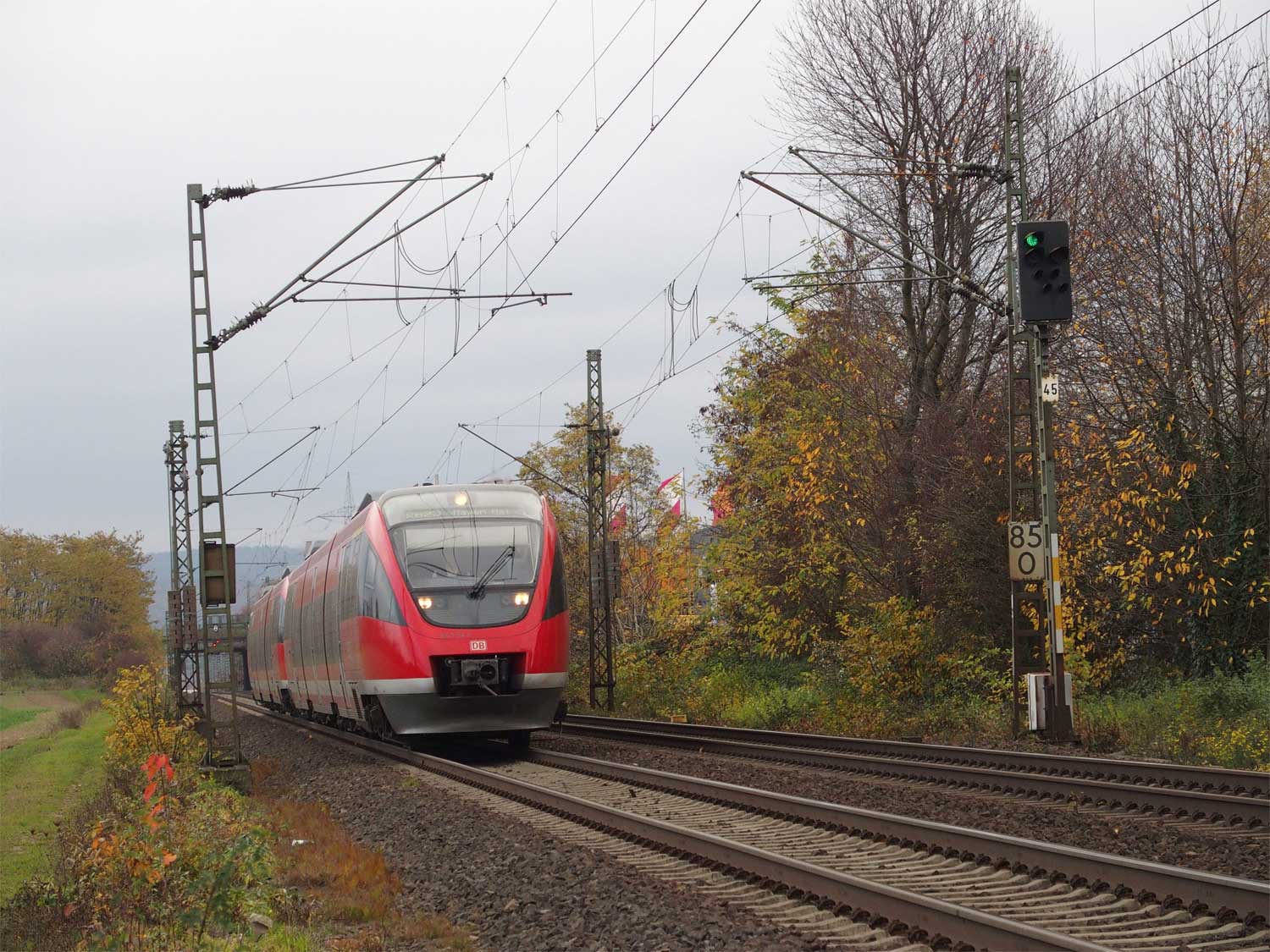km 95,4 zwischen Königsbach (b Kapellen-Stolzenfels) und Rhens - Blick Richtung Köln