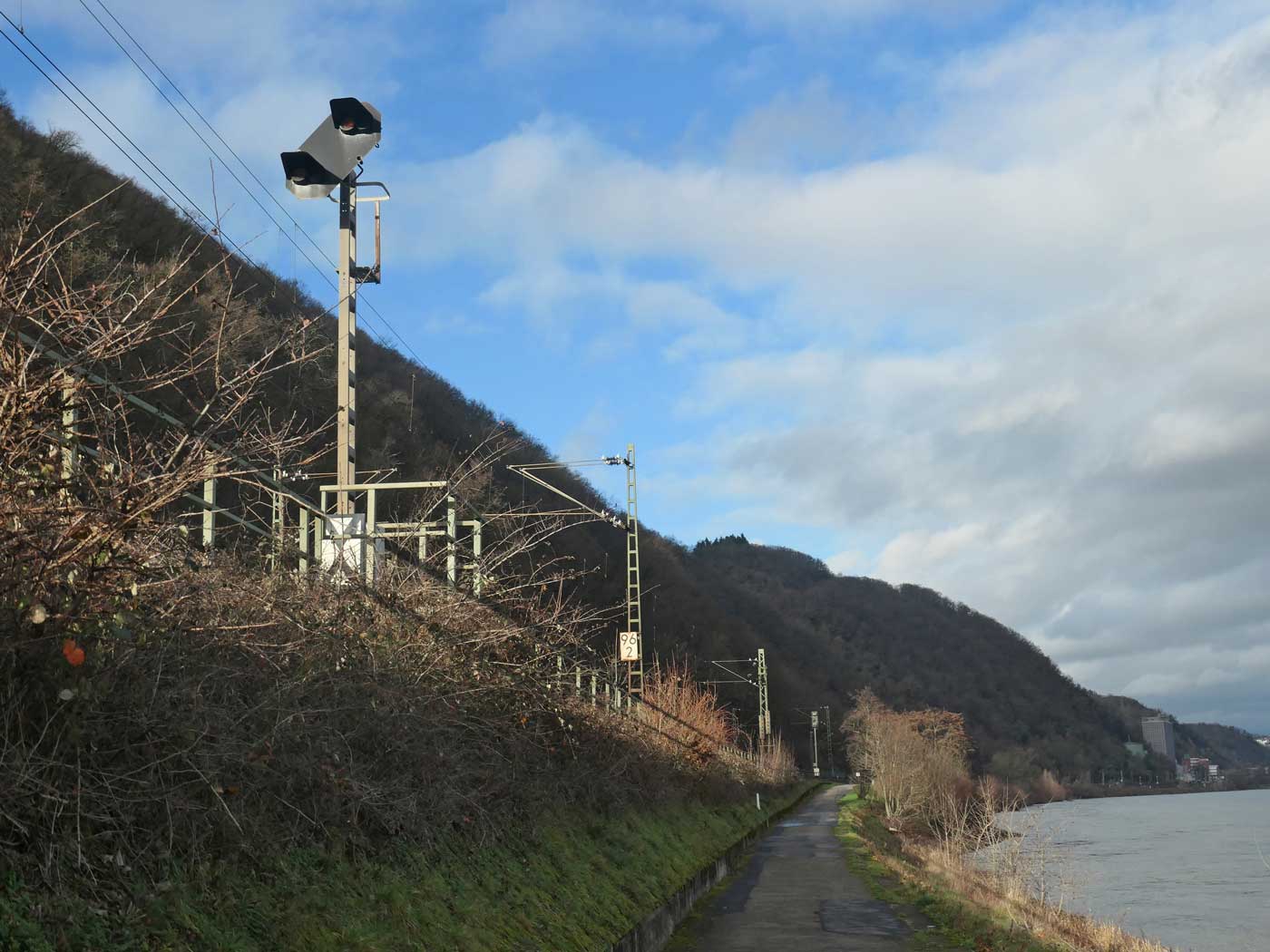 km 96,0 zwischen Königsbach (b Kapellen-Stolzenfels) und Rhens - Blick Richtung Bingerbrück/Bingen