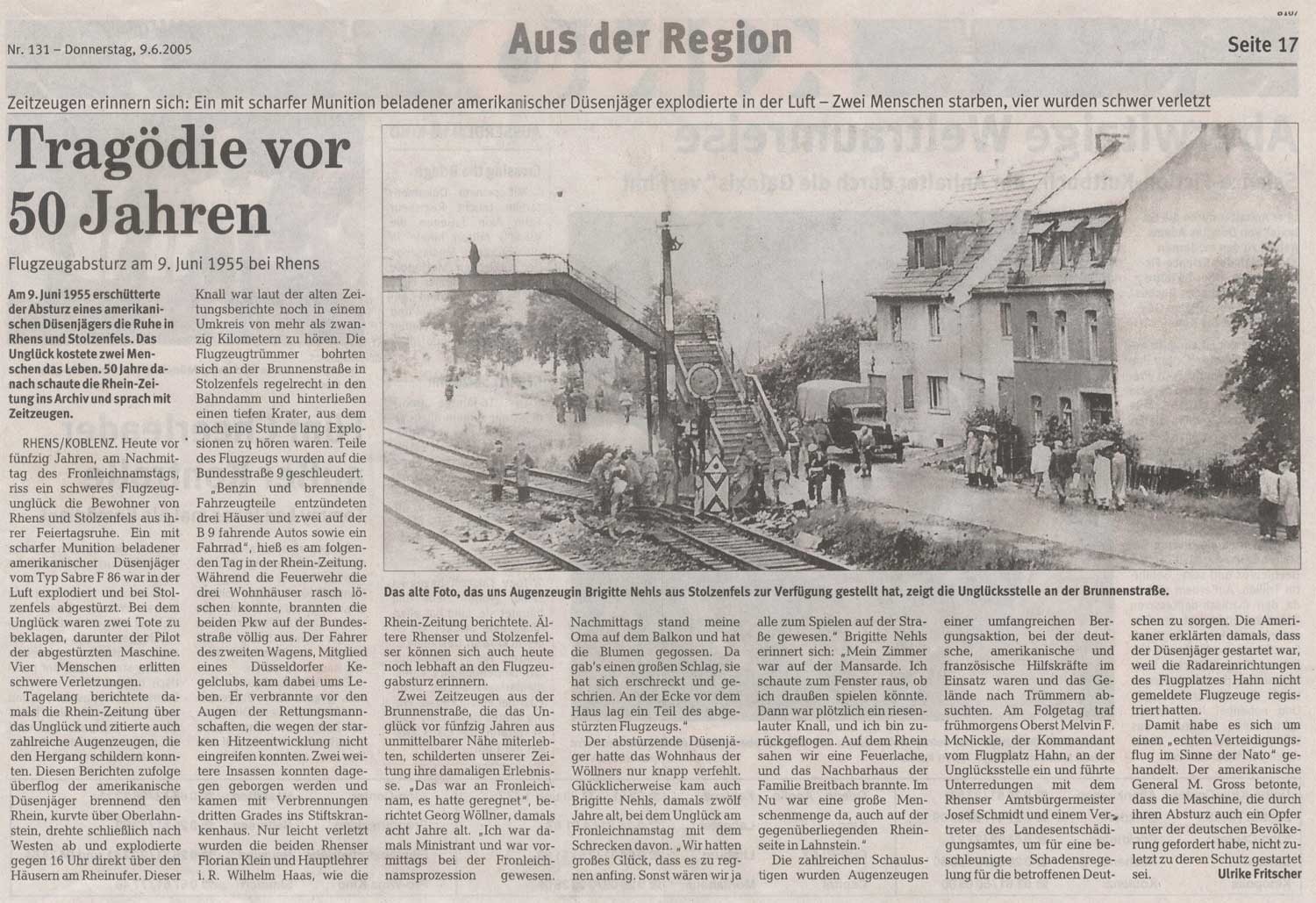 Zeitungsausschnitt vom 09.06.2005 zum Flugzeugabsturz am 09.06.1955