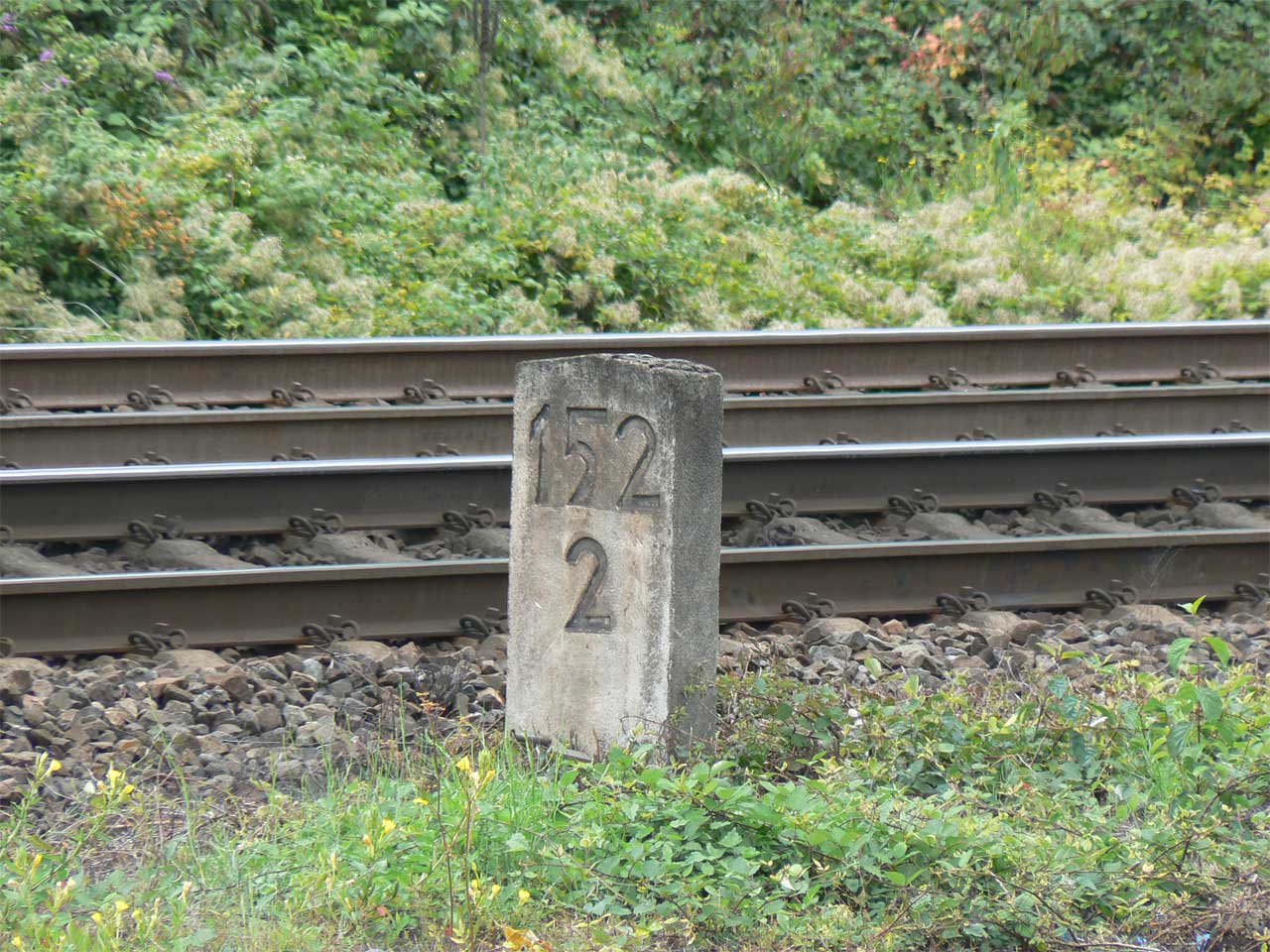 km 152,2 (Stein und Tafel) in Bingerbrück - heute: Bingen (Rhein) Hbf - Blick Richtung Kilometerwechsel