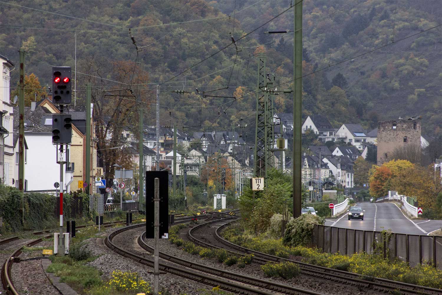 km 142,0 in Niederheimbach - Blick Richtung Bingen/Bingerbrück