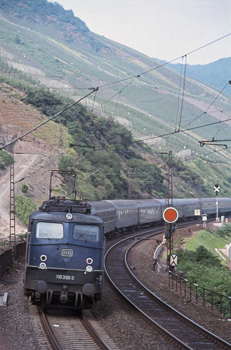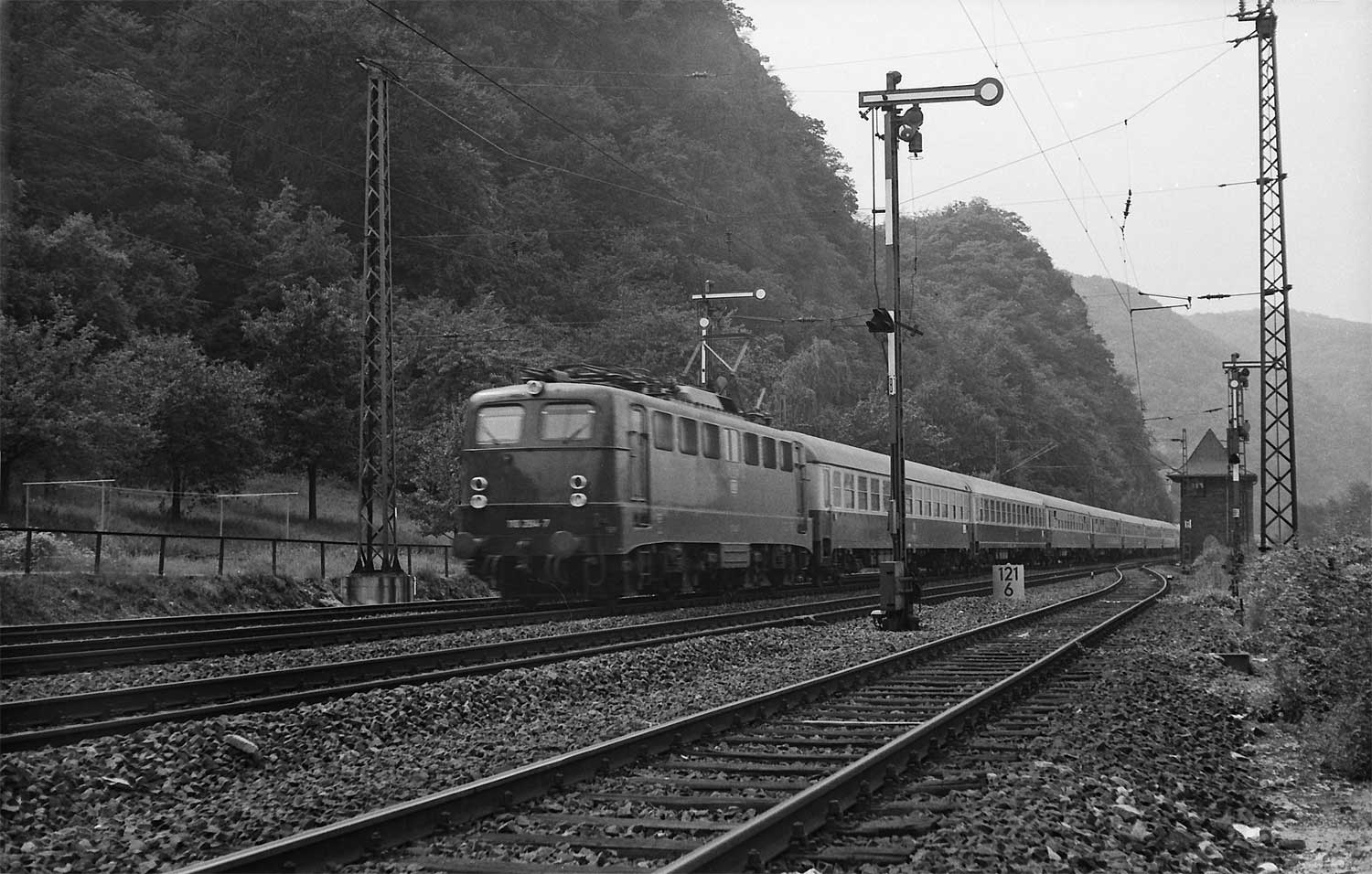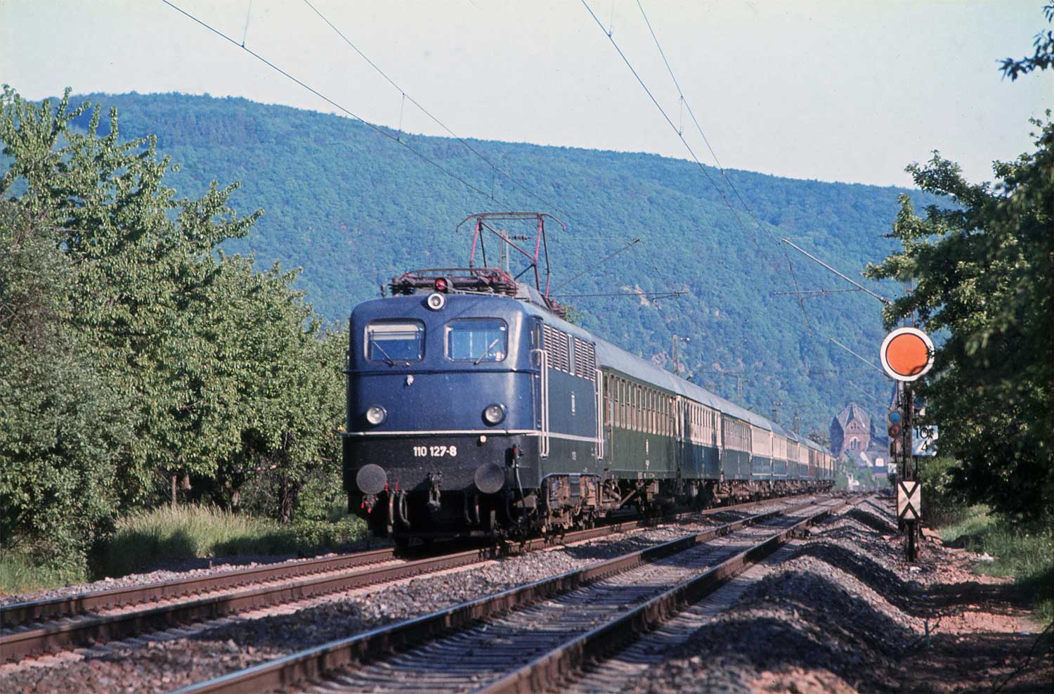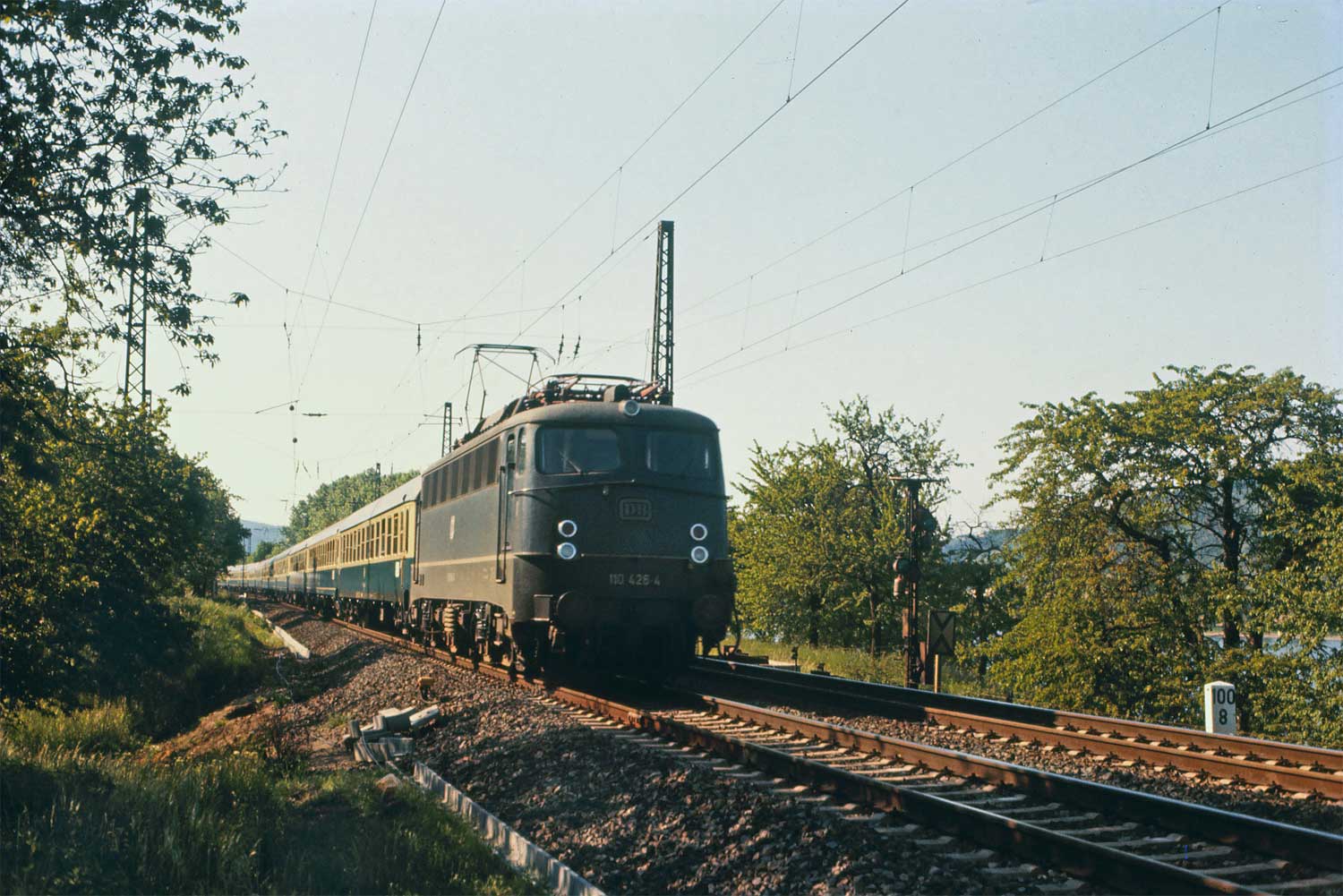 Kilometerwechsel auf der Nahbrücke - E10 1309 mit Rheingold