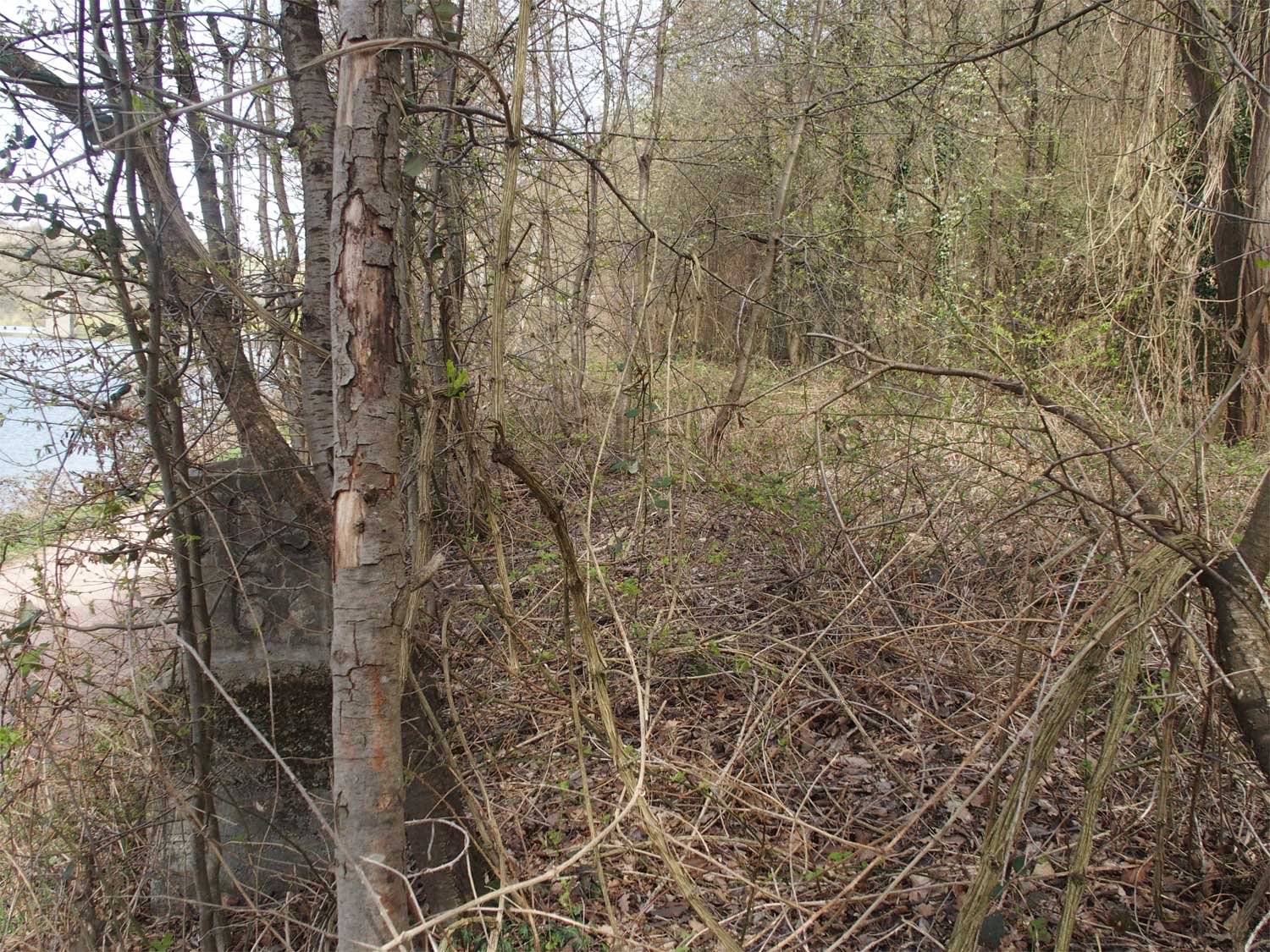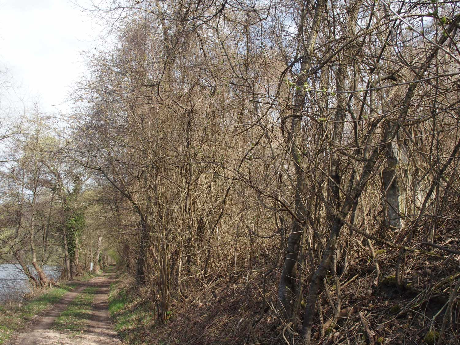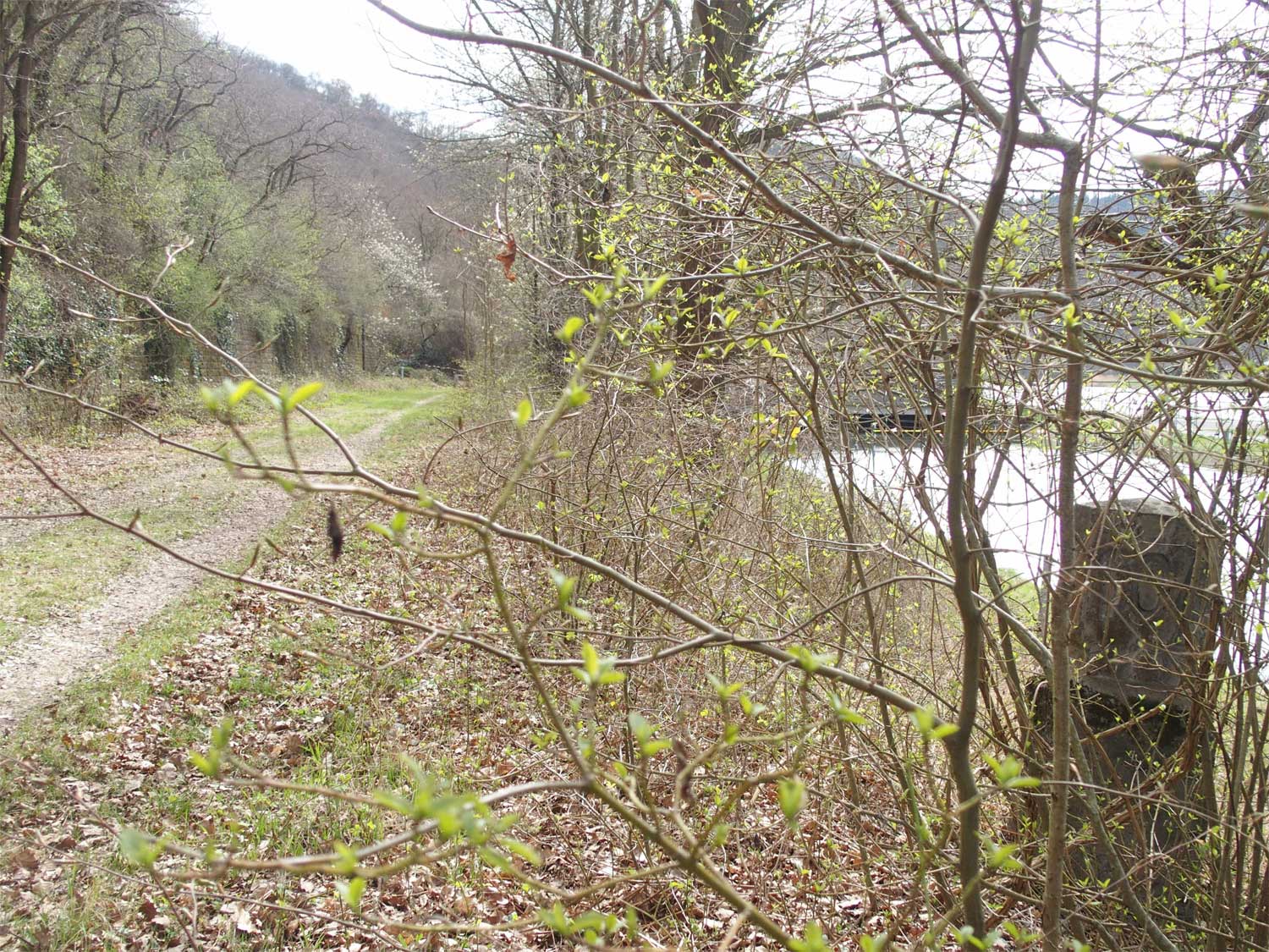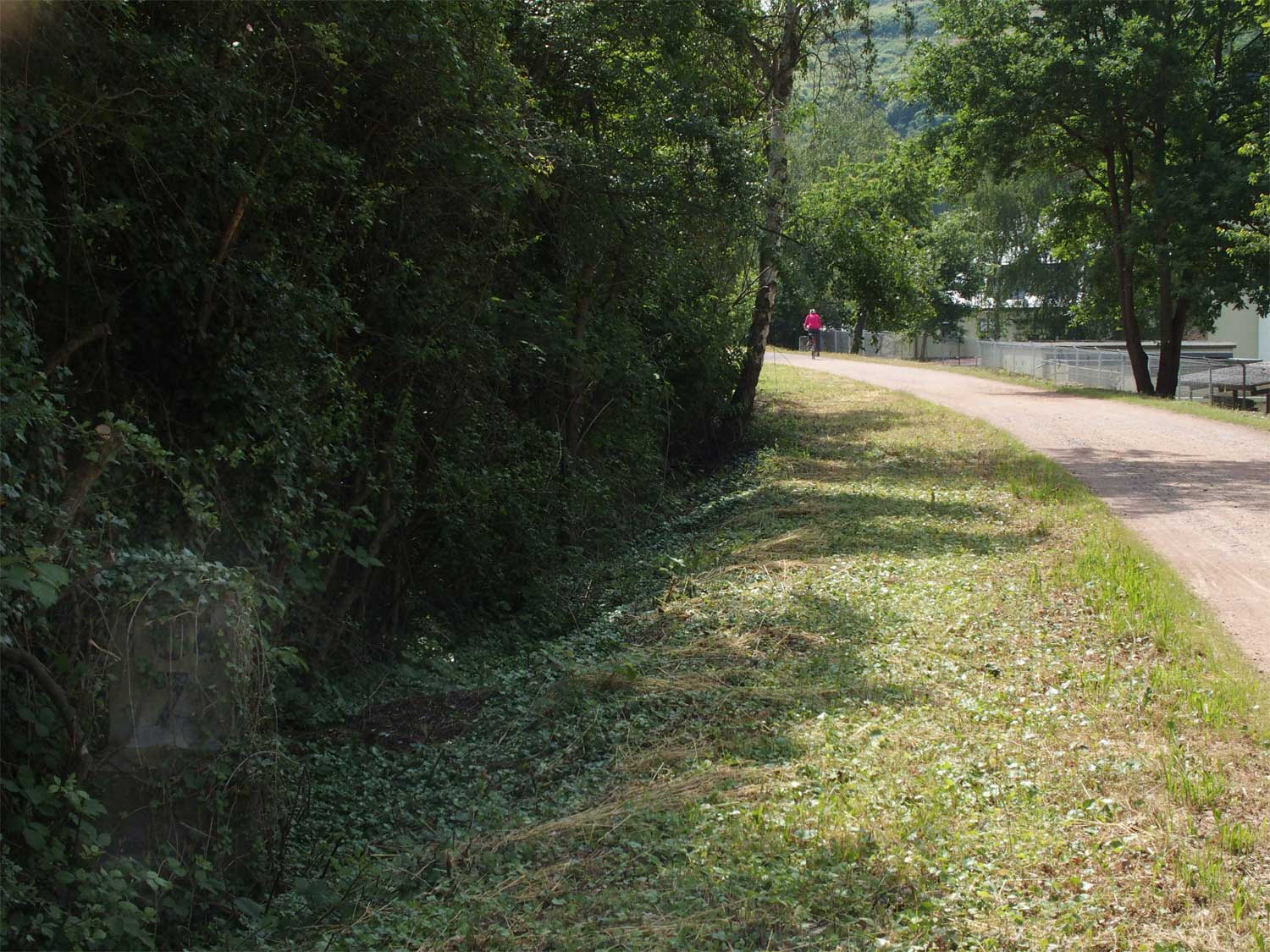 Rechts der Abzweig des ehemaligen Zufahrtsgleises zum RWE-Kraftwerk Niederhausen