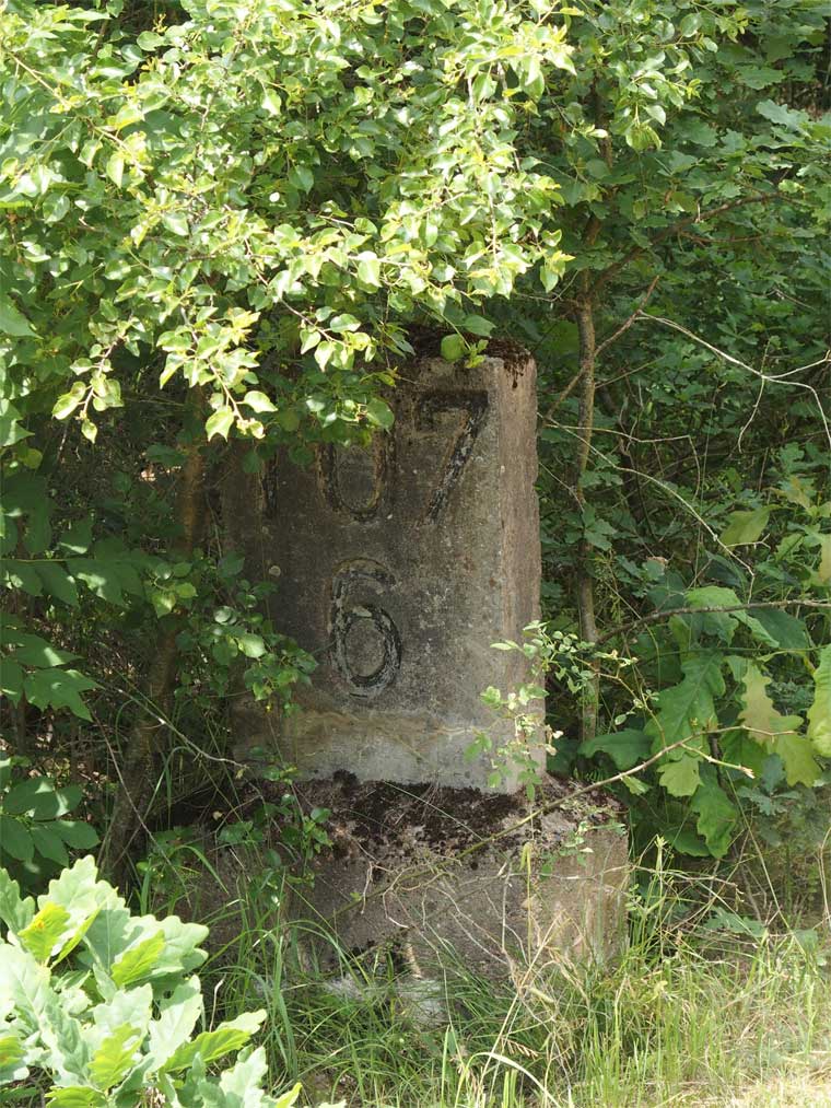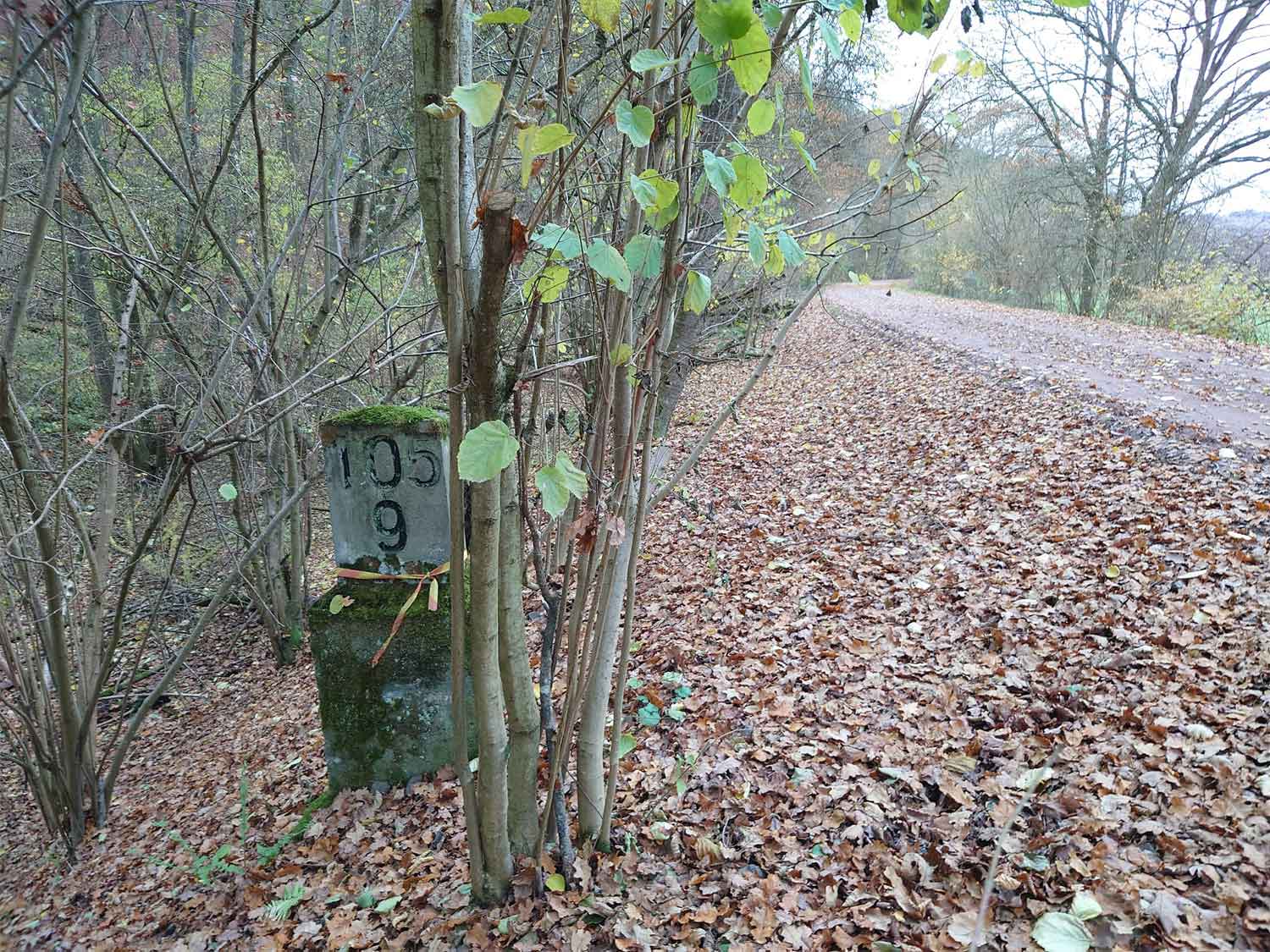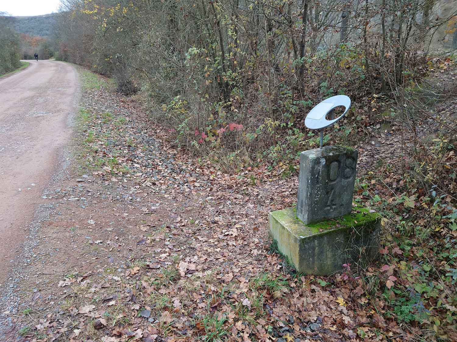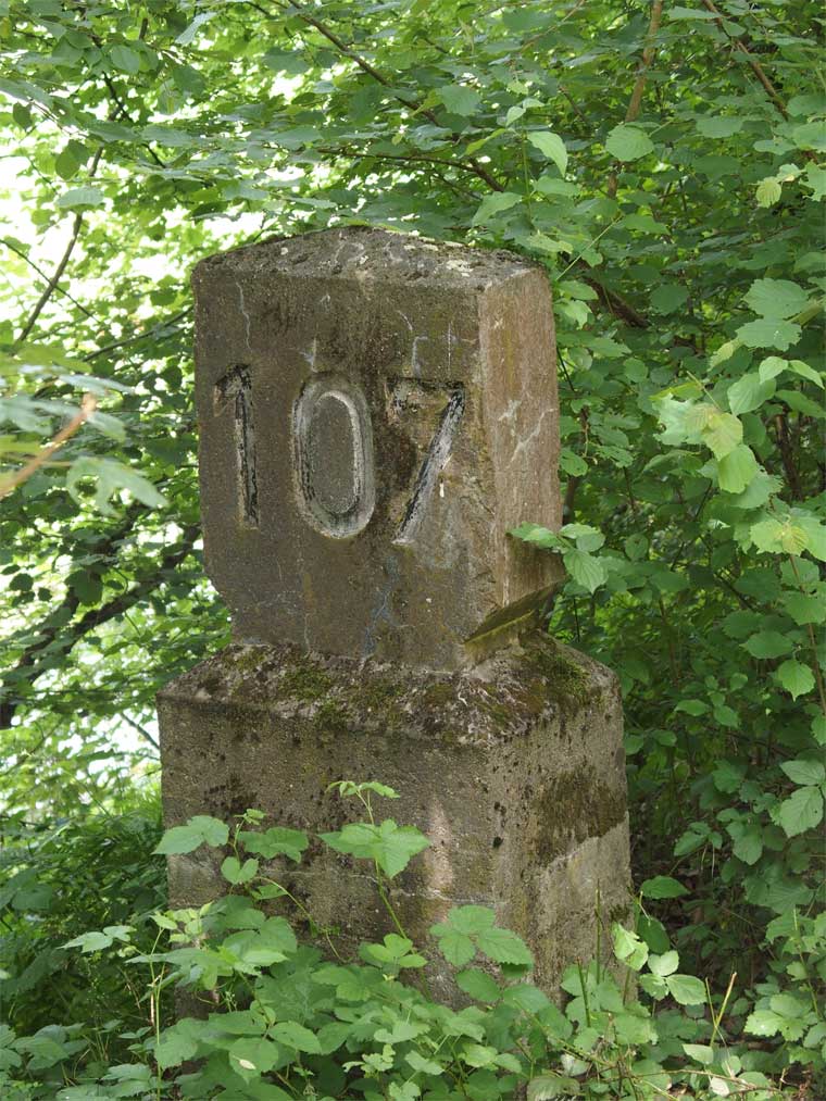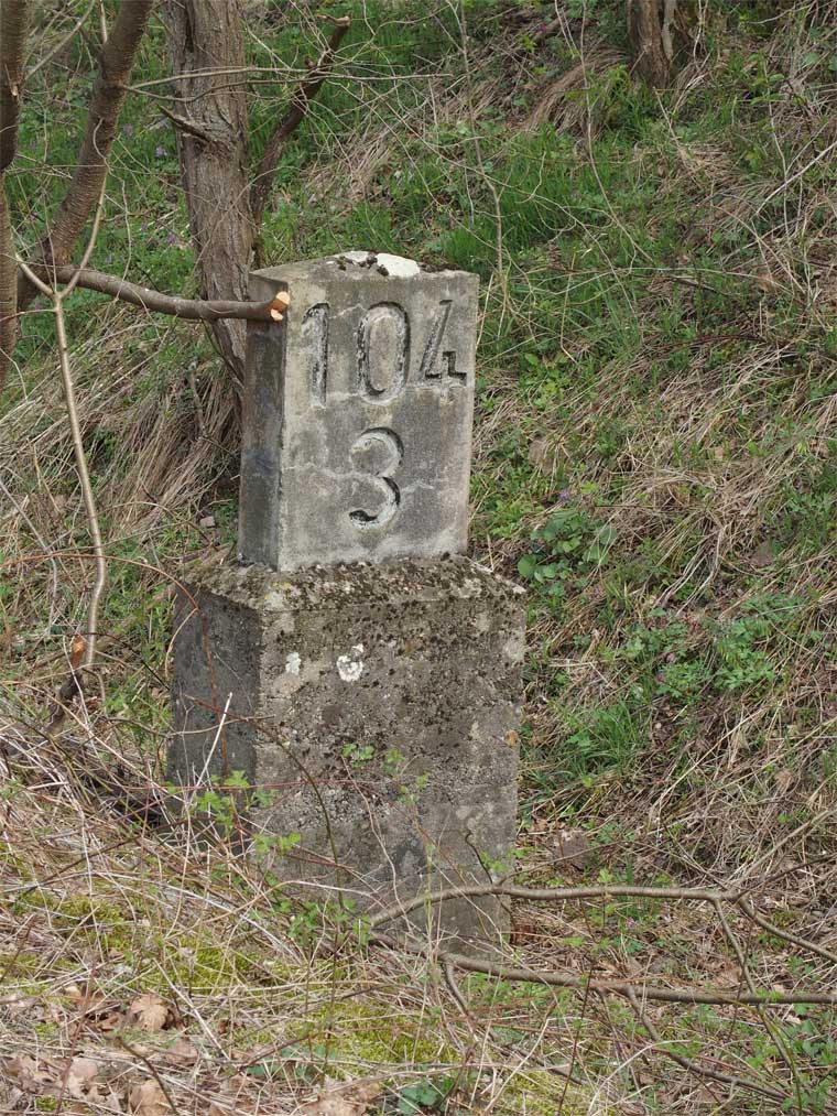 km 105,2 (Sockel) zwischen Duchroth und Bad Münster am Stein - Blick Richtung Homburg (Saar)