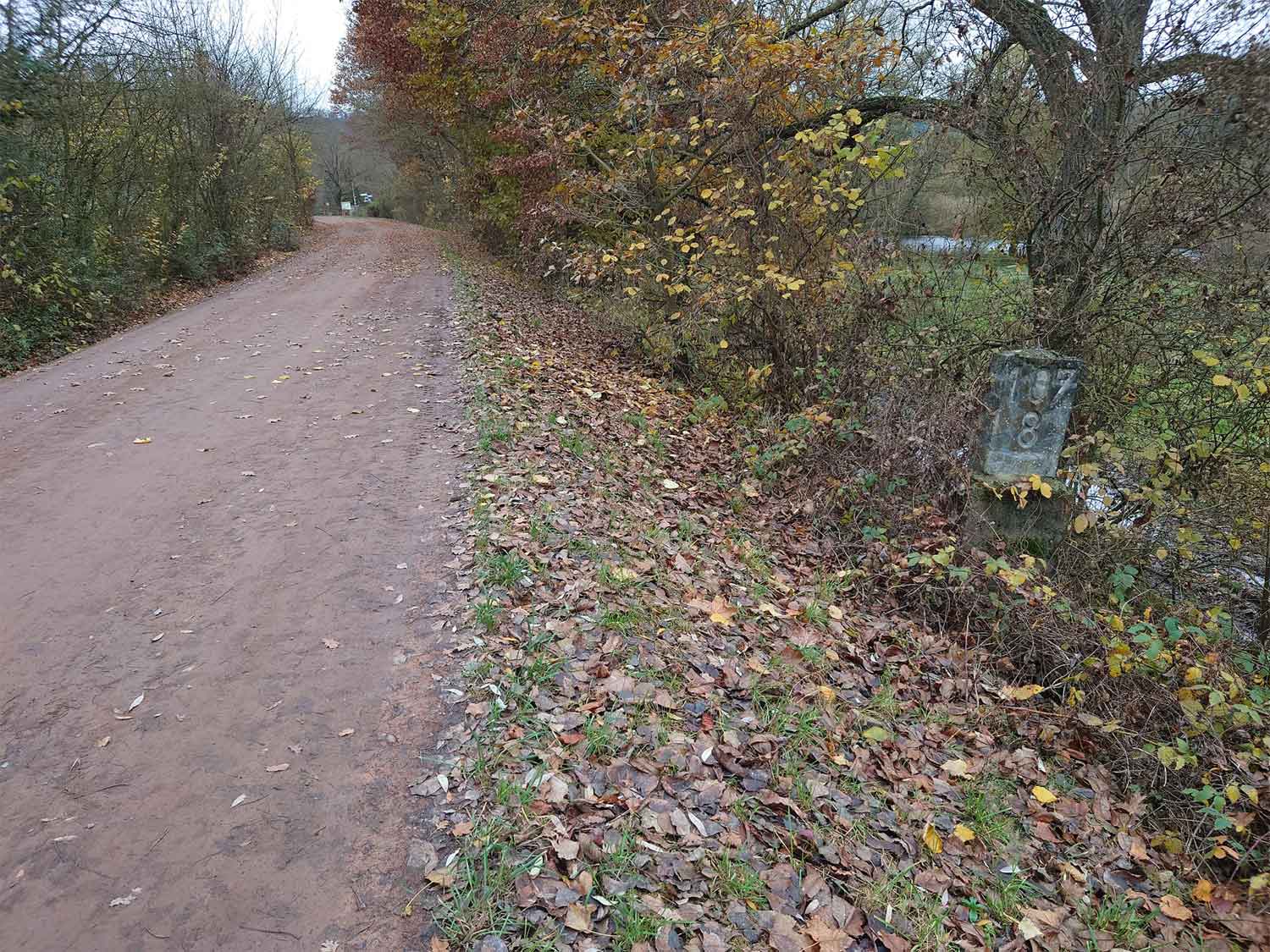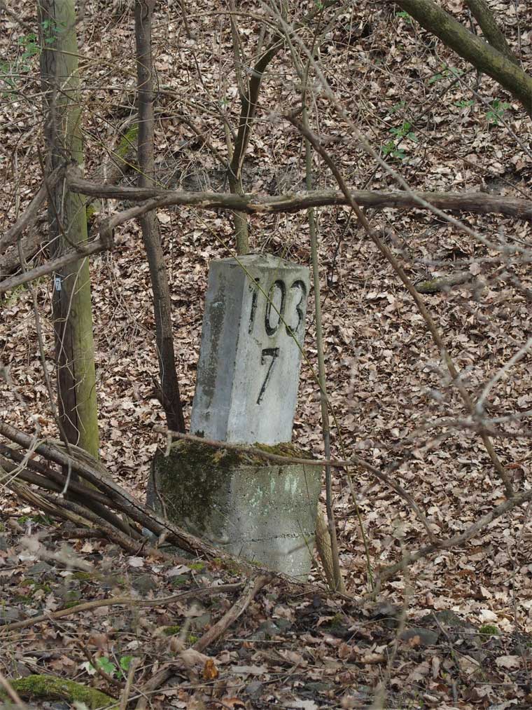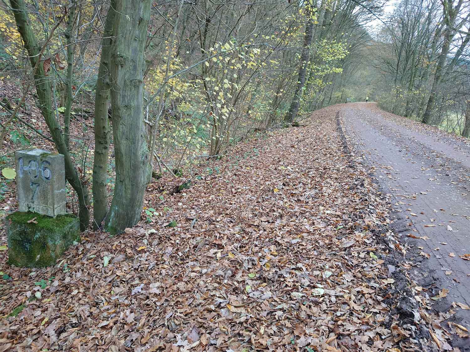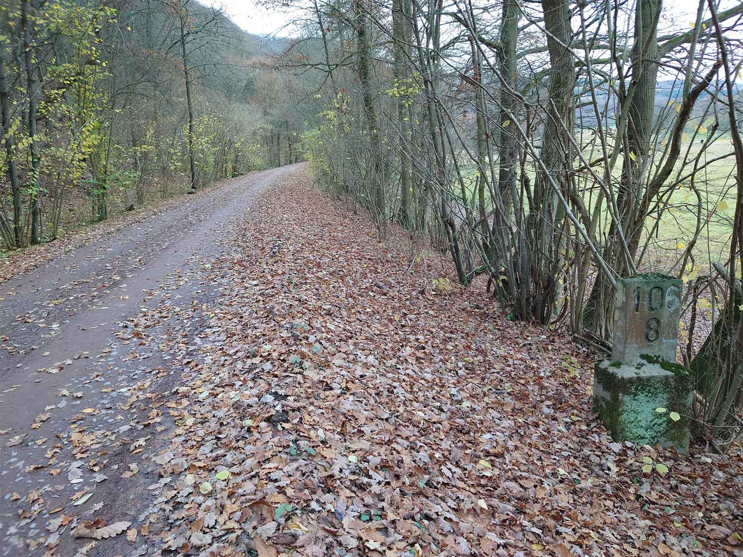 km 105,2 (Sockel) zwischen Duchroth und Bad Münster am Stein - Blick Richtung Homburg (Saar)