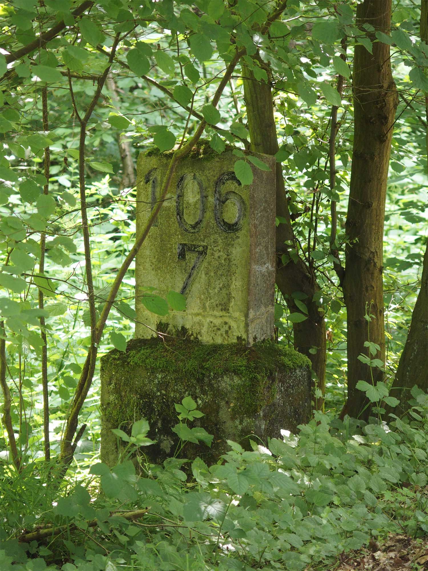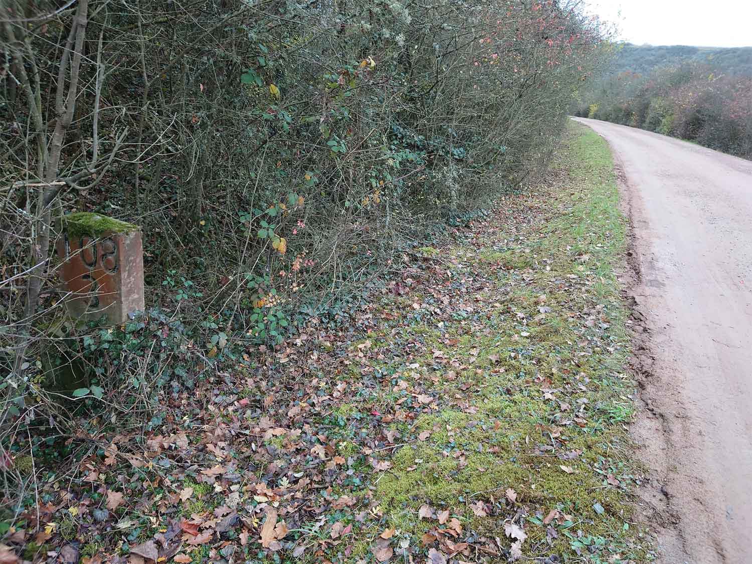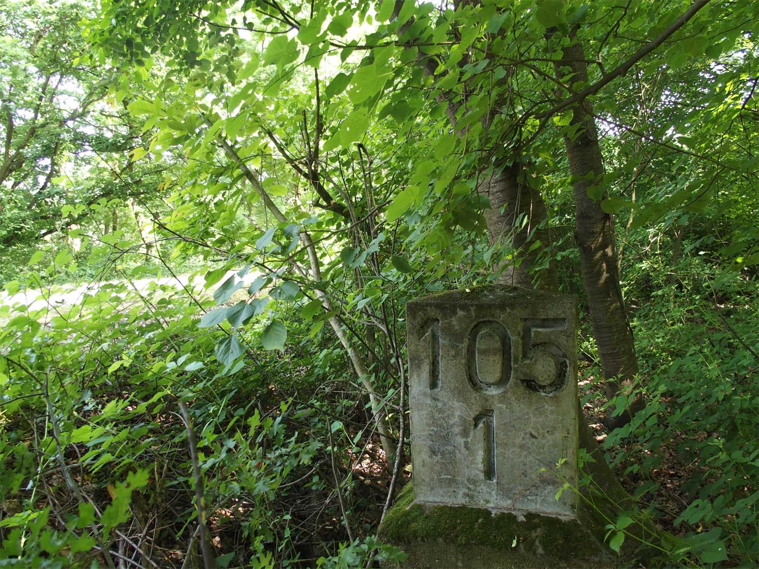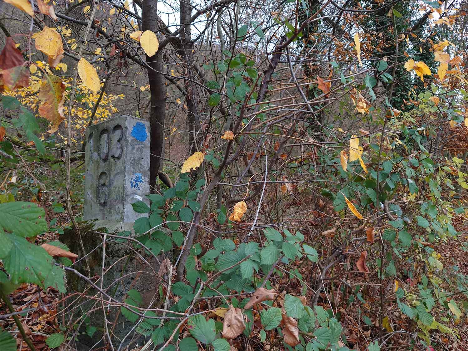 km 105,2 (Sockel) zwischen Duchroth und Bad Münster am Stein - Blick Richtung Homburg (Saar)