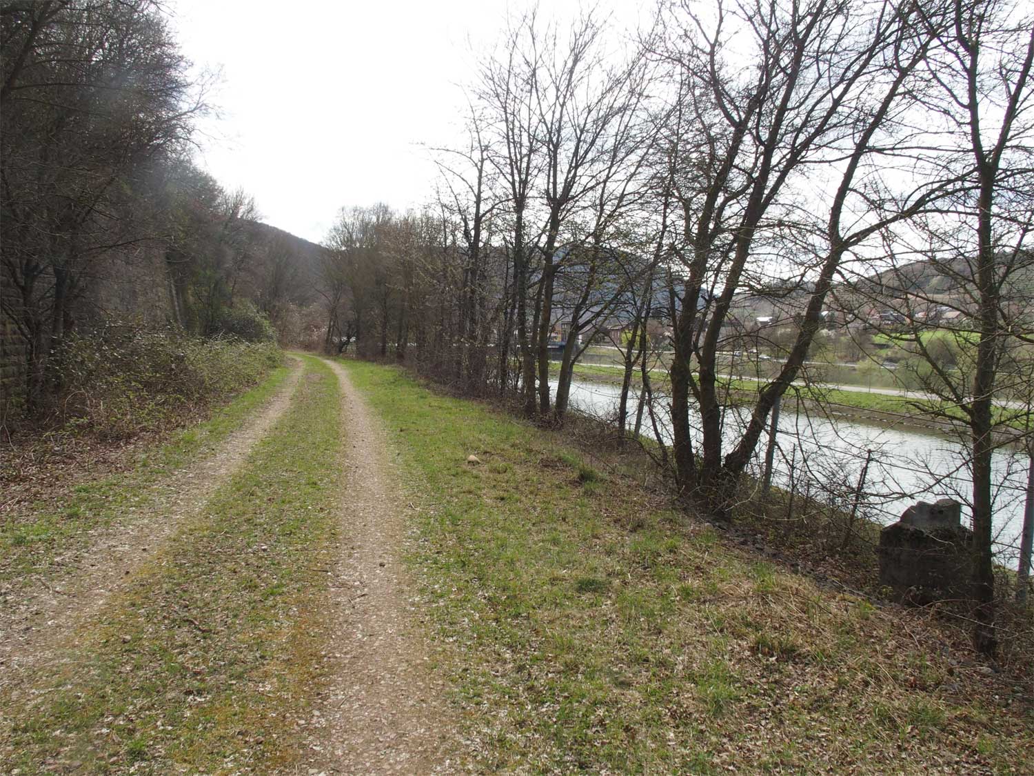 etwa bei km 104,5 zwischen Duchroth und Bad Münster am Stein - Blick Richtung Homburg (Saar)