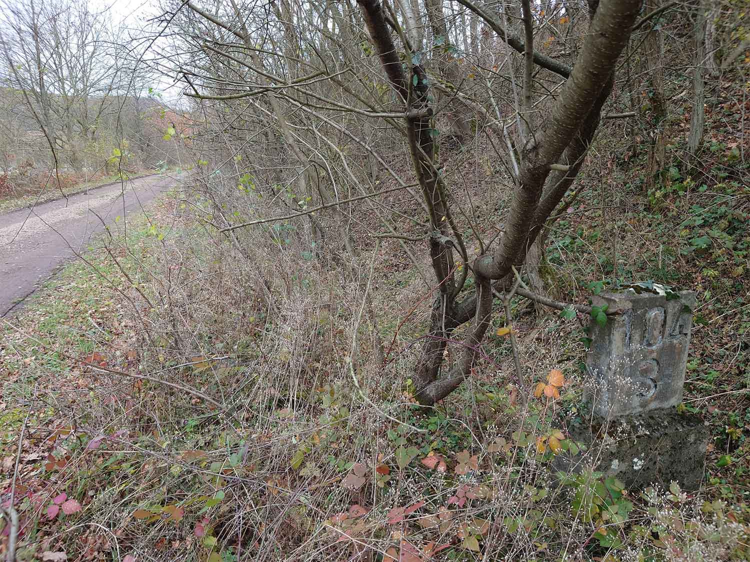km 105,2 (Sockel) zwischen Duchroth und Bad Münster am Stein - Blick Richtung Bad Münster am Stein