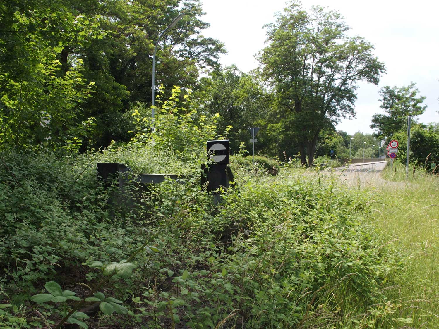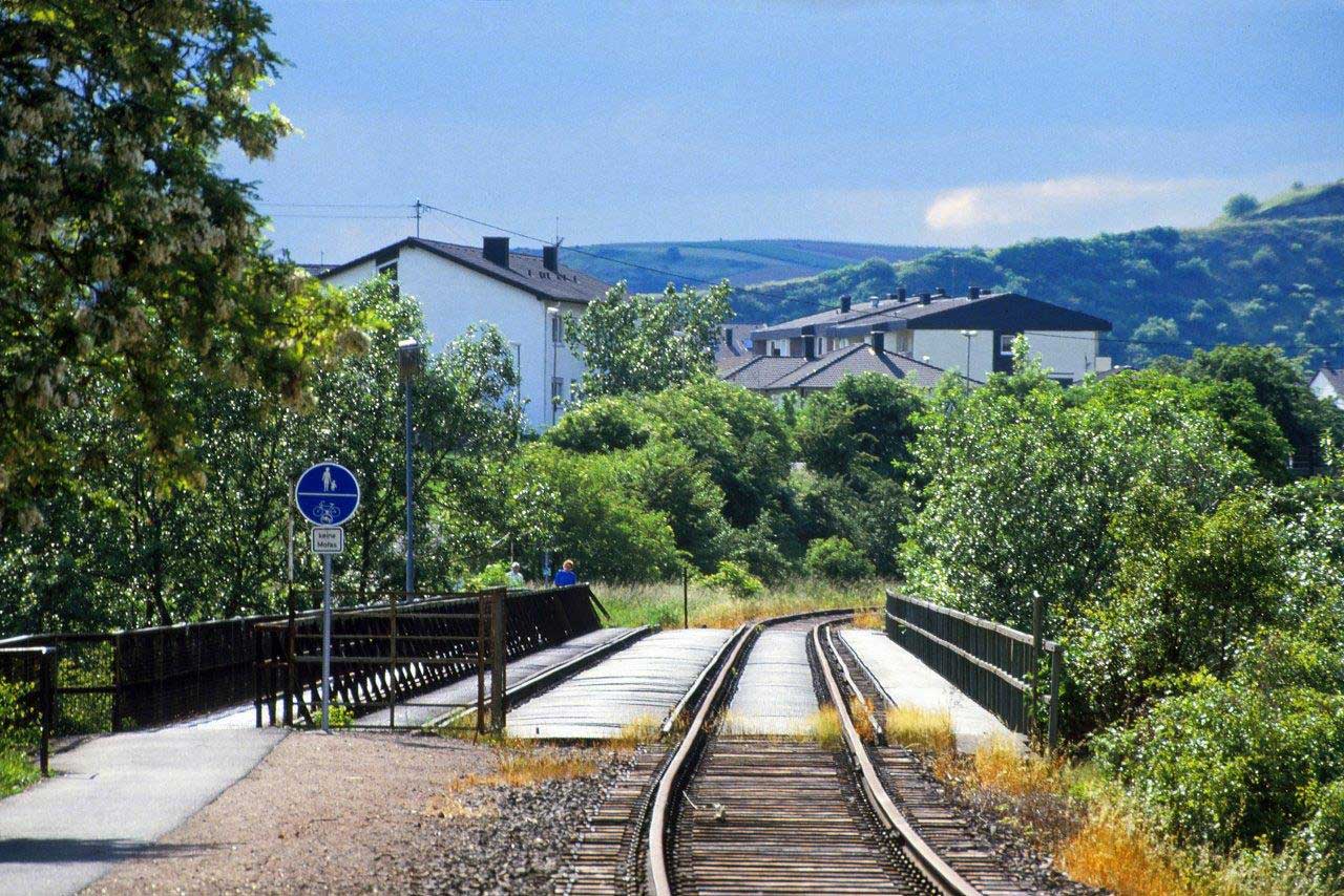 Gleisabschluss an der ehemaligen Einmündung der Strecke - Blick zur Nahebrücke in Richtung Homburg (Saar)