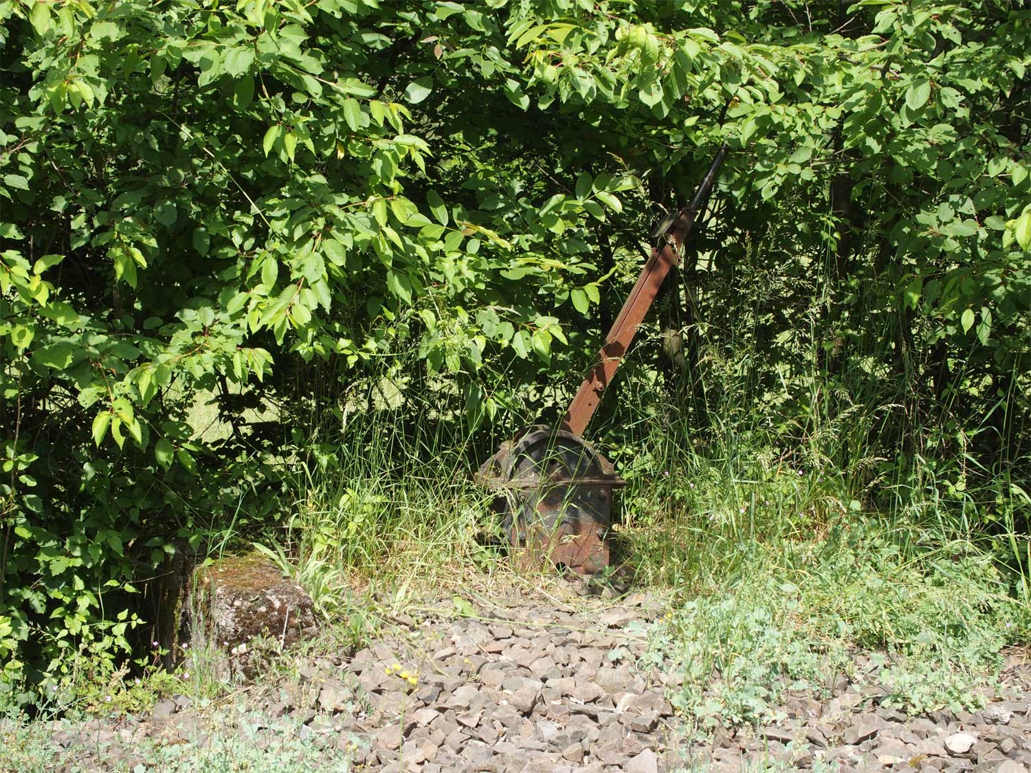 Weichenstellhebel am Abzw. des ehemaligen Zufahrtsgleises zum RWE-Kraftwerk Niederhausen