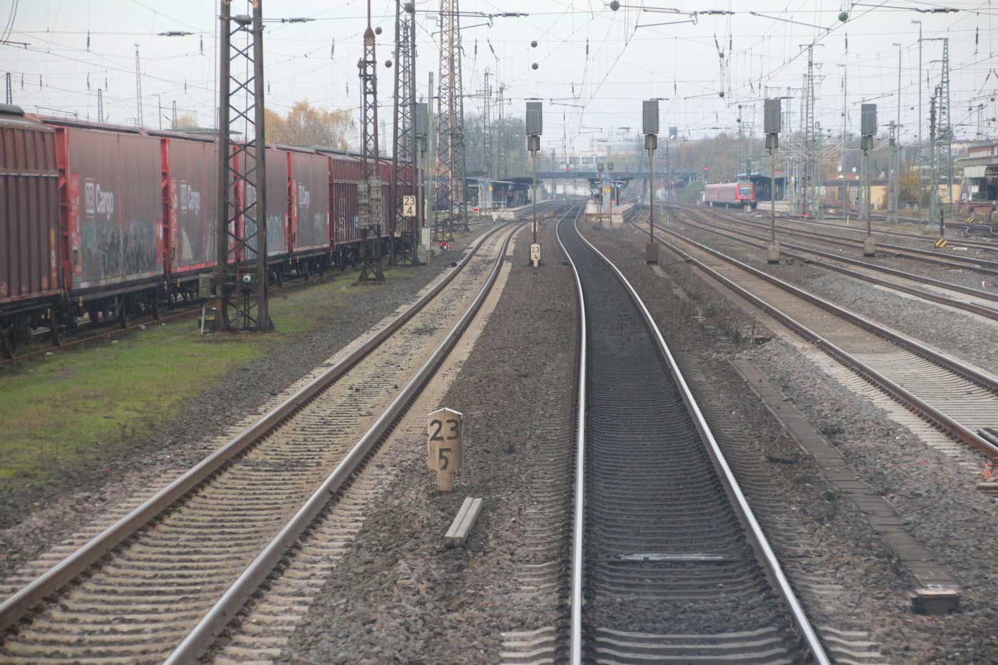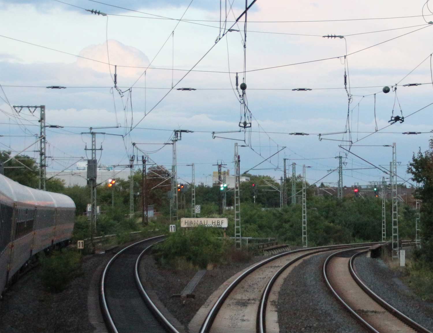 | Hanau Hbf | 22,92 | km 19,89 der Strecke Frankfurt (Main) Süd 0,0 - Frankfurt (Main) Ost 2,38 - Hanau 19,89 - Aschaffenburg Hbf 43,189 |