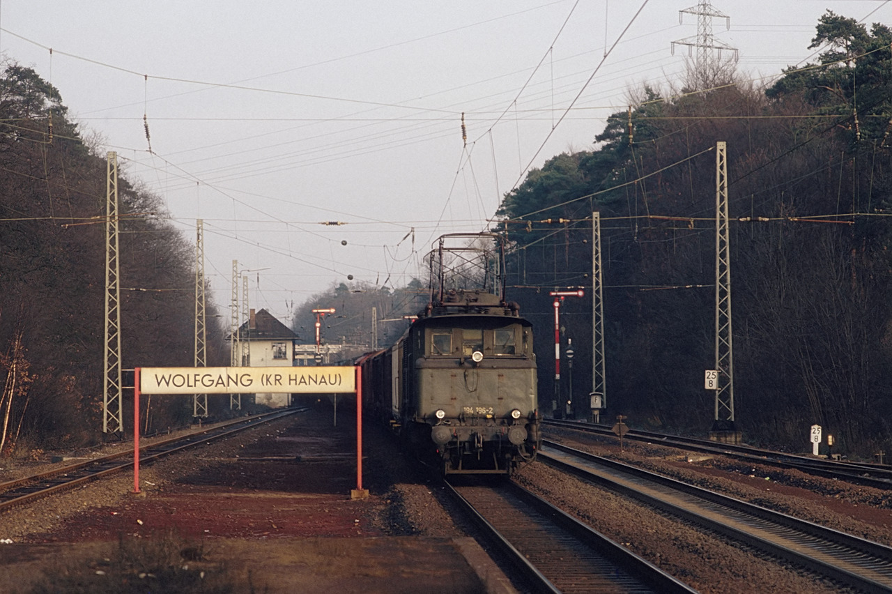 | Wolfgang (Kr. Hanau) | 25,29 | km 0,77 der Strecke Abzw. Rauschwald -0,40 - Wolfgang (Kr Hanau) 0,77 |