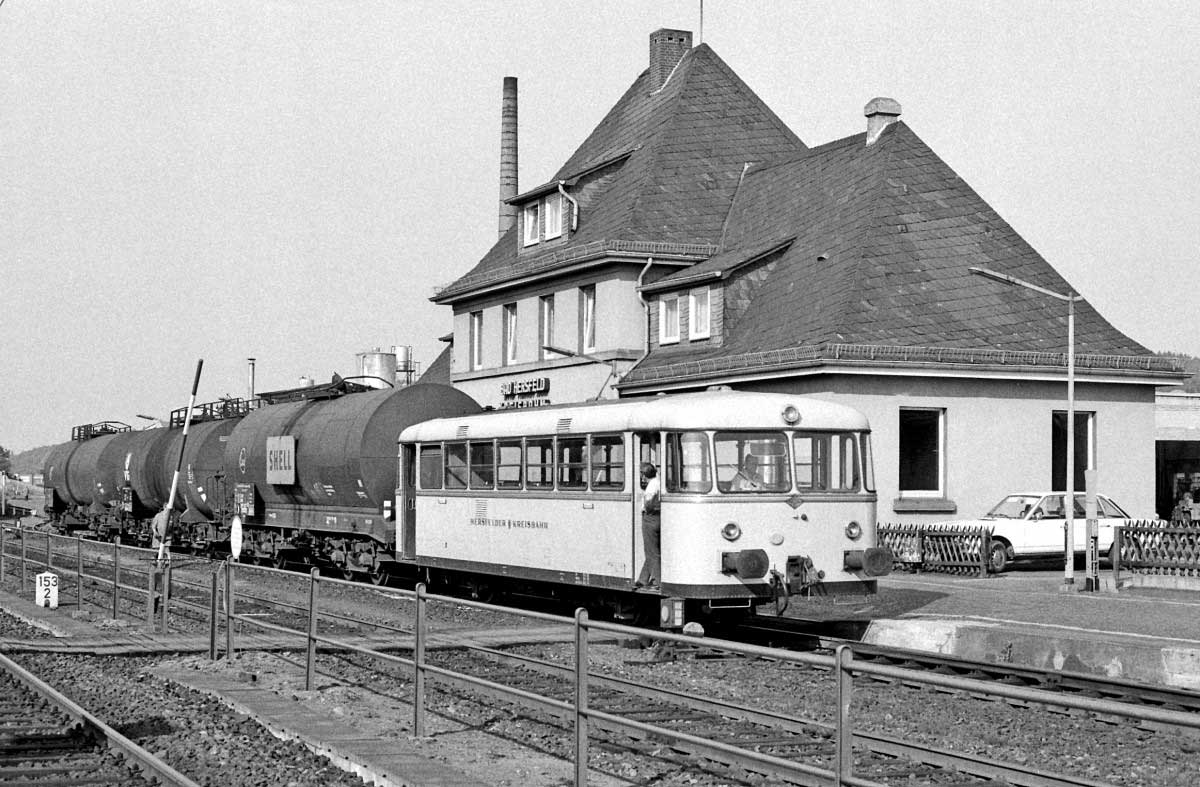 Rechts das Bahnhofsgebäude der Hersfelder Kreisbahn