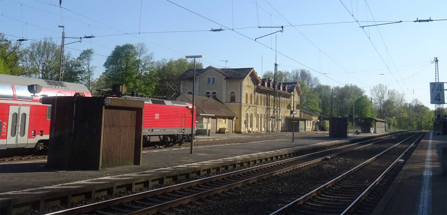 | Wolfgang (Kr. Hanau) | 25,29 | km 0,77 der Strecke Abzw. Rauschwald -0,40 - Wolfgang (Kr Hanau) 0,77 |