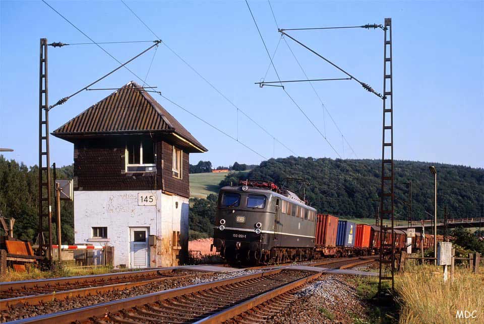 an der ehemaligen Bk Hermannspiegel - 145 068 mit EZ 51845 (Mannheim Rbf - Leipzig-Engelsdorf)