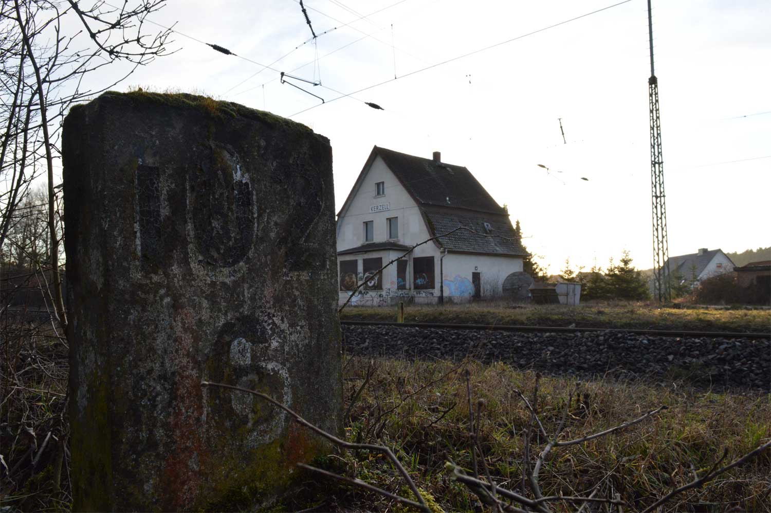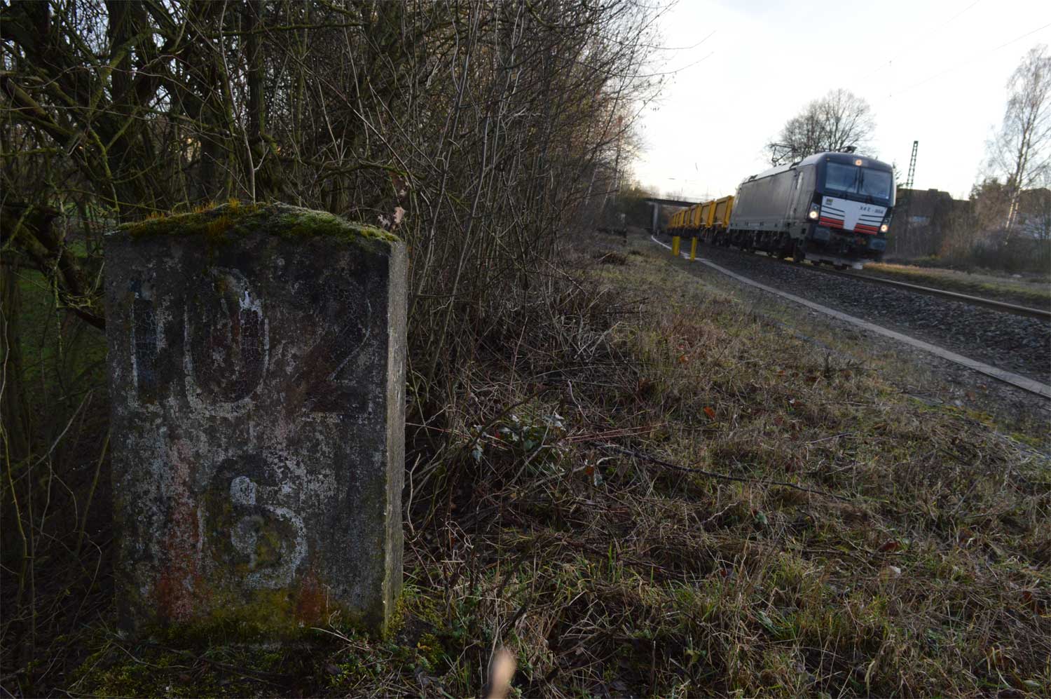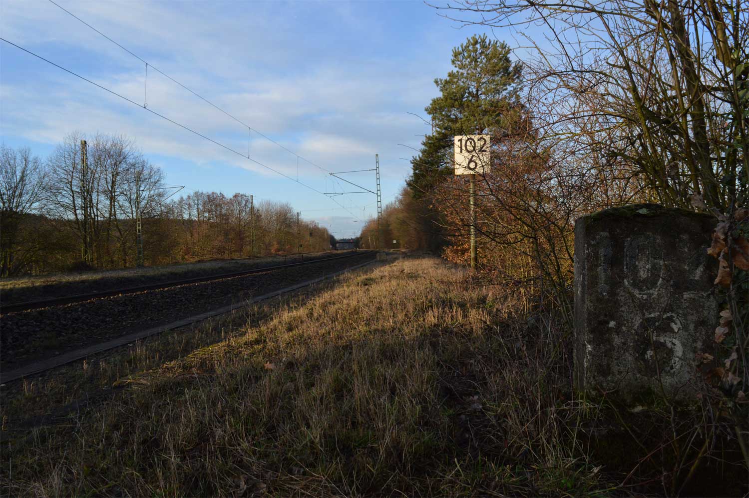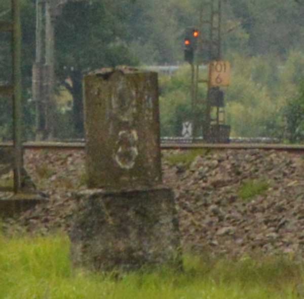 Der Stein unmittelbar neben der V 100 könnte der Nullstein der Strecke