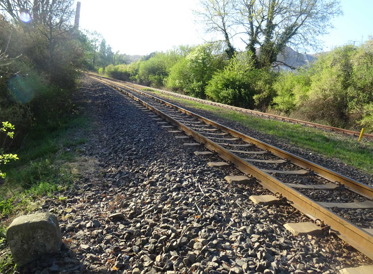 Der Stein schaut auch noch gerade so über die Schienen.