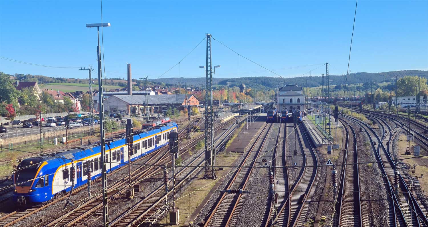 | Wächtersbach | 54,79 | km 0,0 der Strecke Wächtersbach Klbf 0,0 - Bad Orb 6,5 - Verladestelle Truppenübungsplatz Wegscheide 8,2 (Bad Orber Kleinbahn; Normalspur bis 1995, Schmalspur 600 mm ab 2001) |