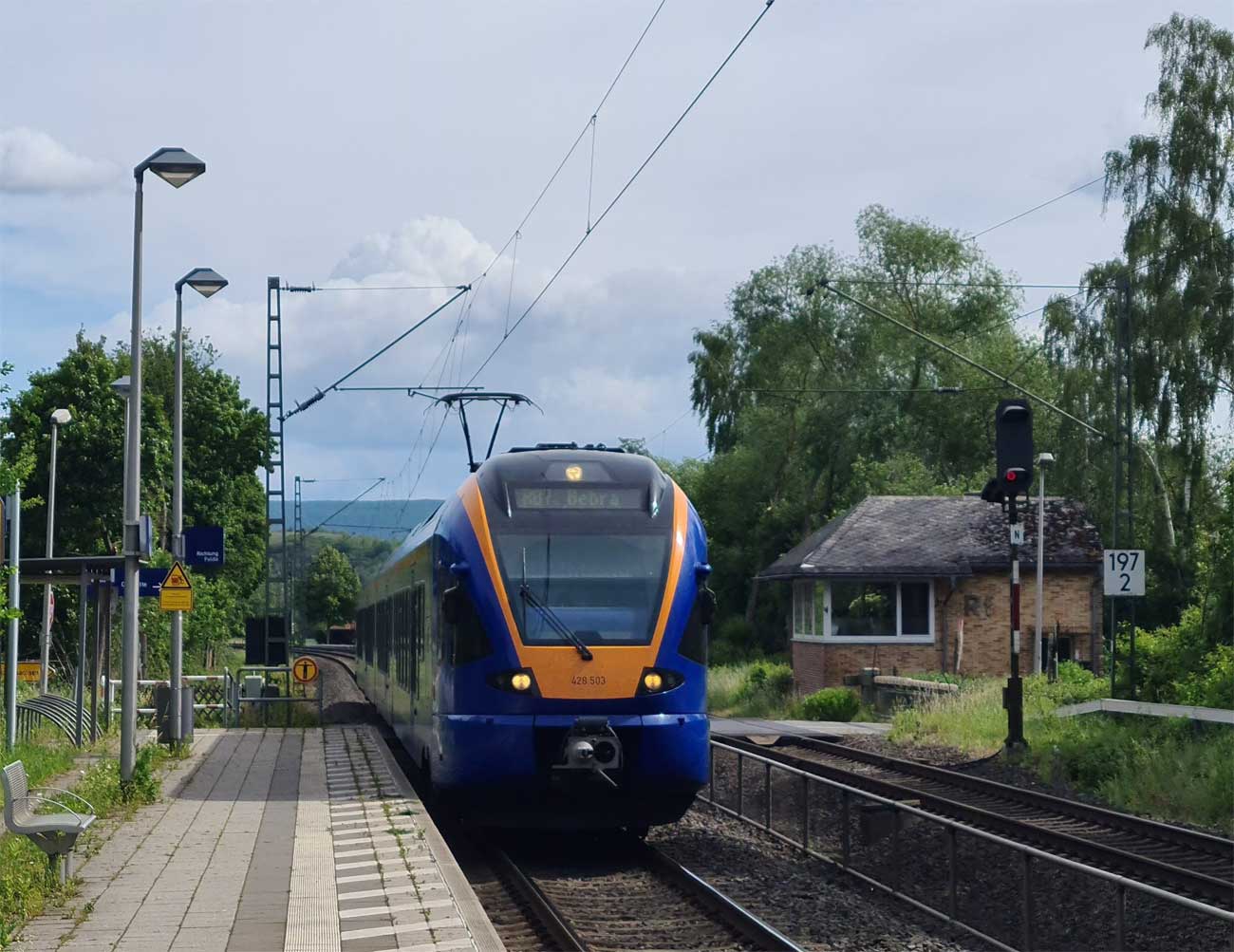 Halle (Saale) Hbf 0,0 - Sangerhausen 59,22 - Nordhausen 97,07 - Leinefelde 139,35 - Hannnoversch Münden 193,54