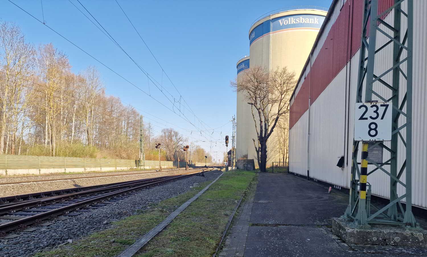 | Wolfgang (Kr. Hanau) | 25,29 | km 0,77 der Strecke Abzw. Rauschwald -0,40 - Wolfgang (Kr Hanau) 0,77 |