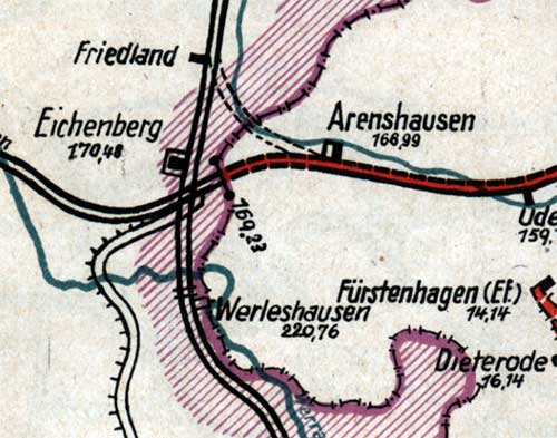 km 230,9 zwischen Eichenberg und Friedland (Han) nahe der ehemaligen Bk Reckershausen