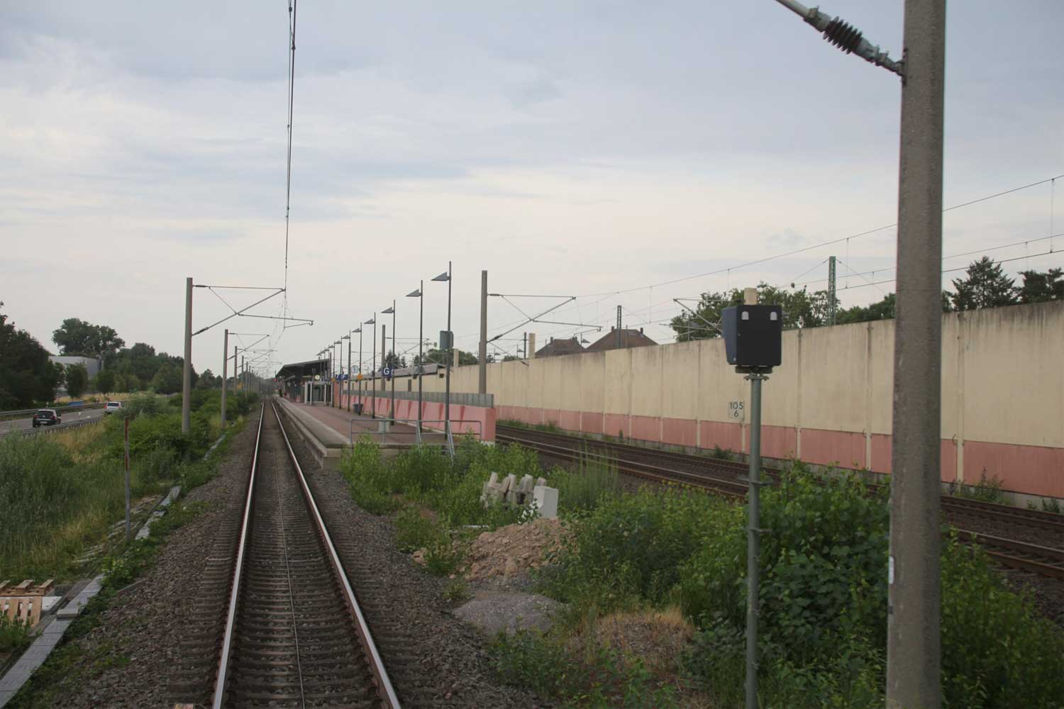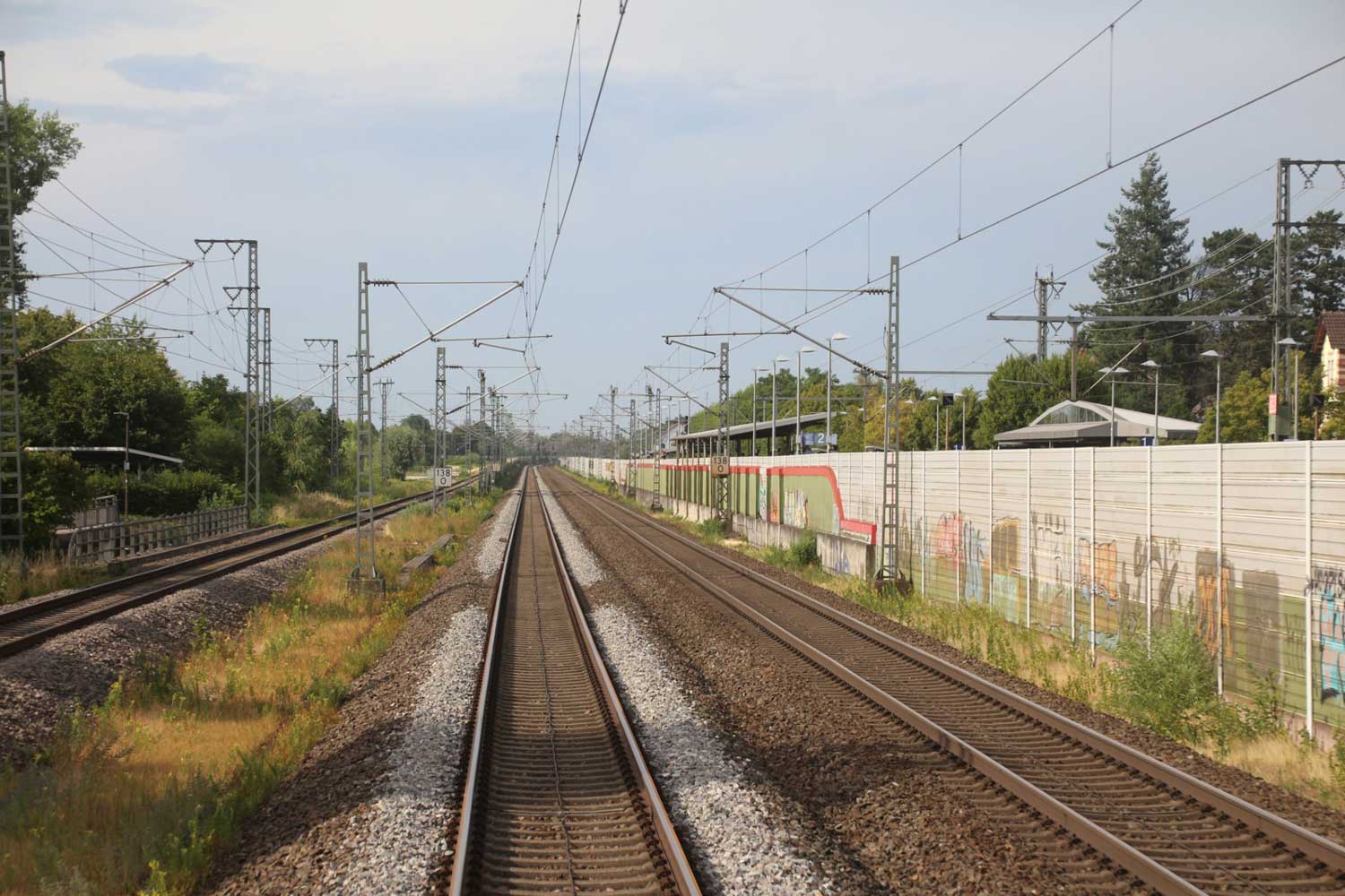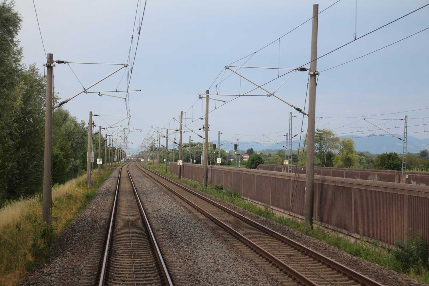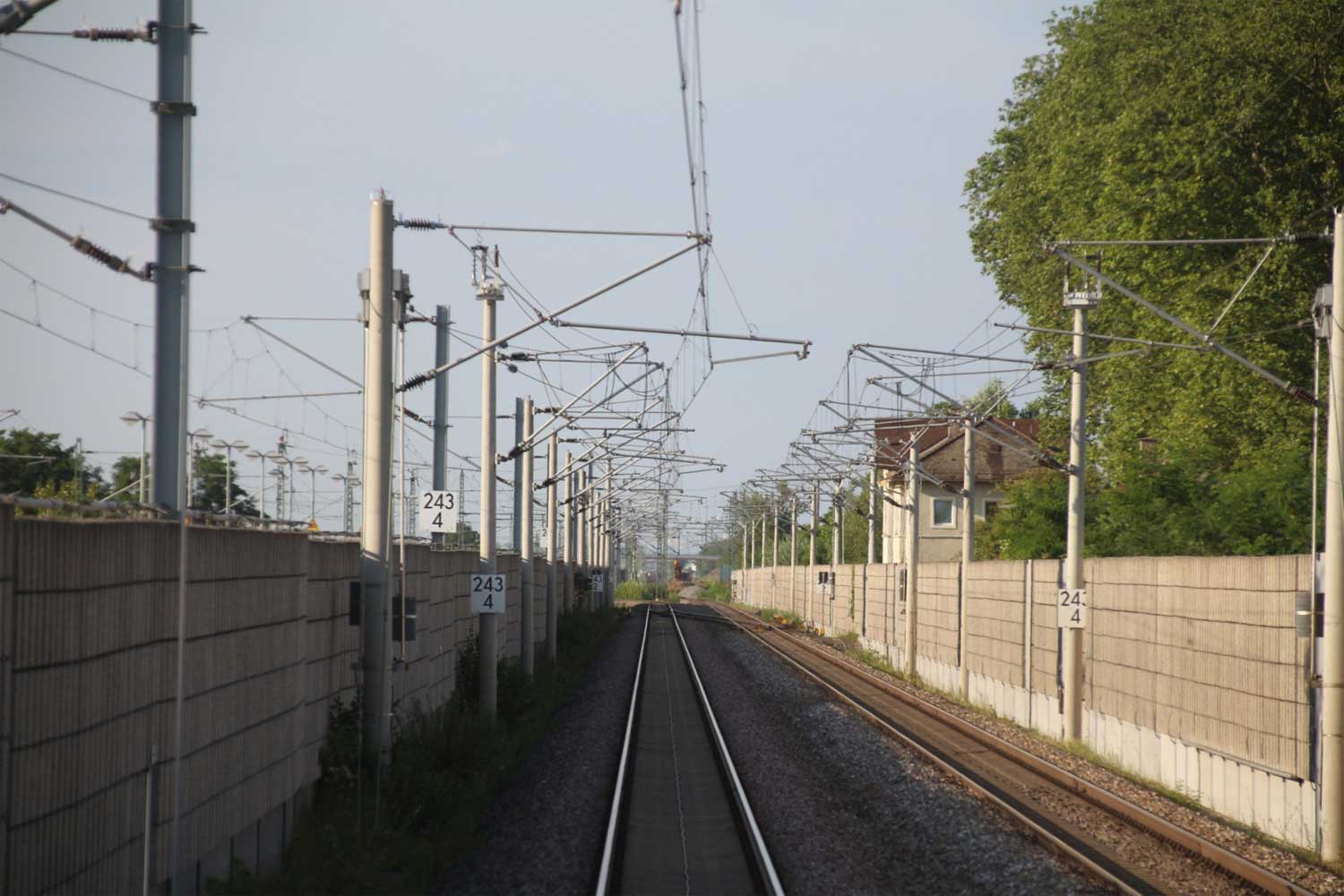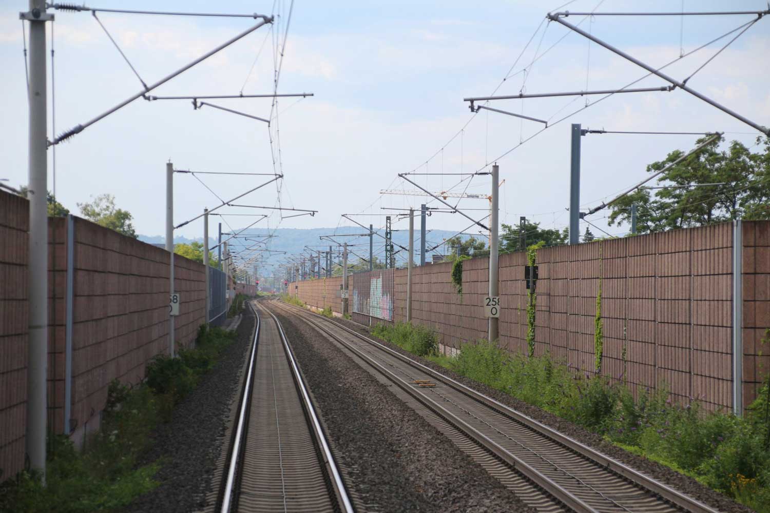 Rechts hinter der Lärmschutzwand die Strecke