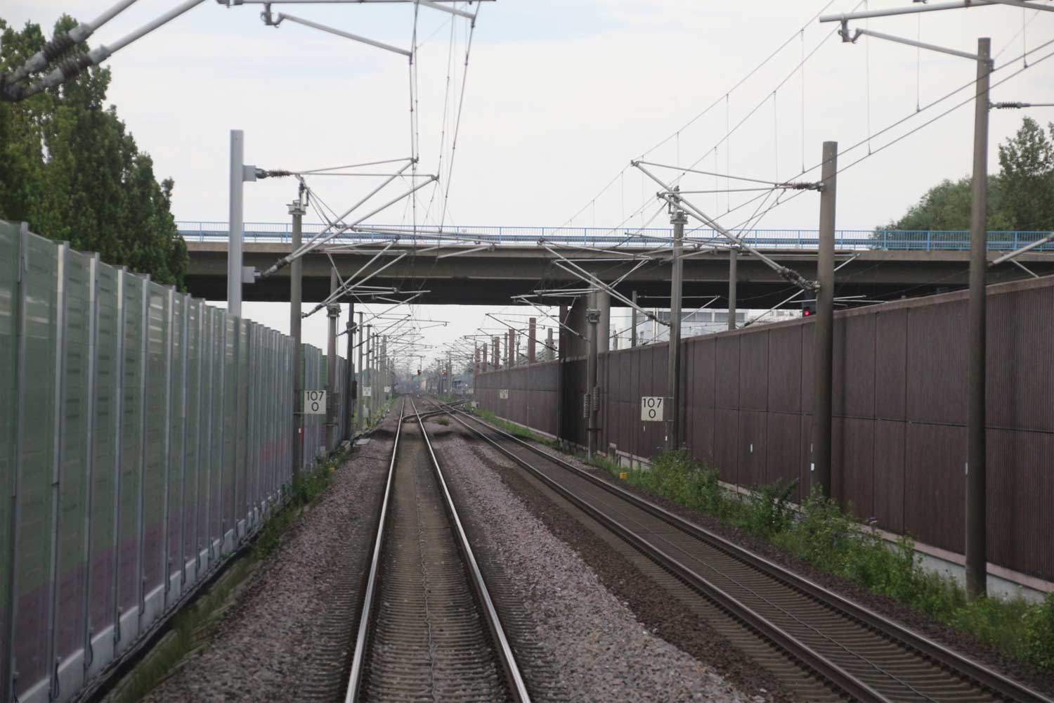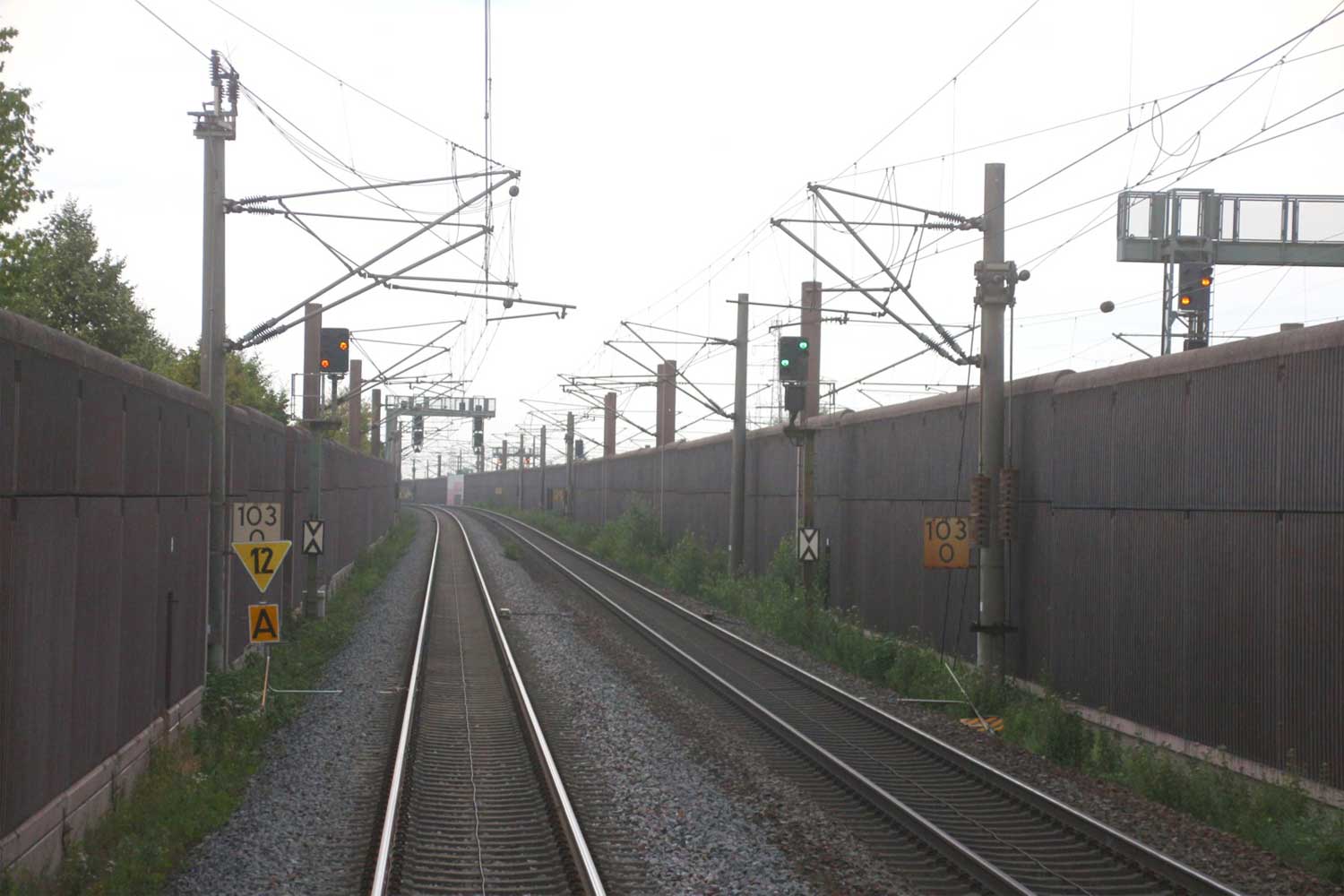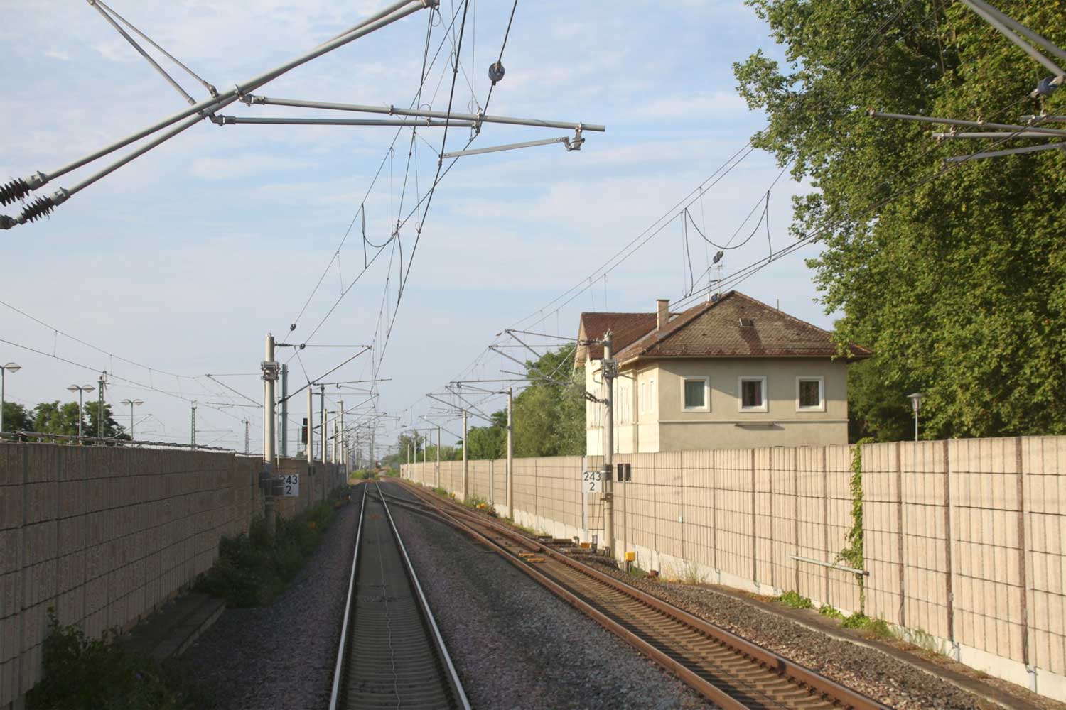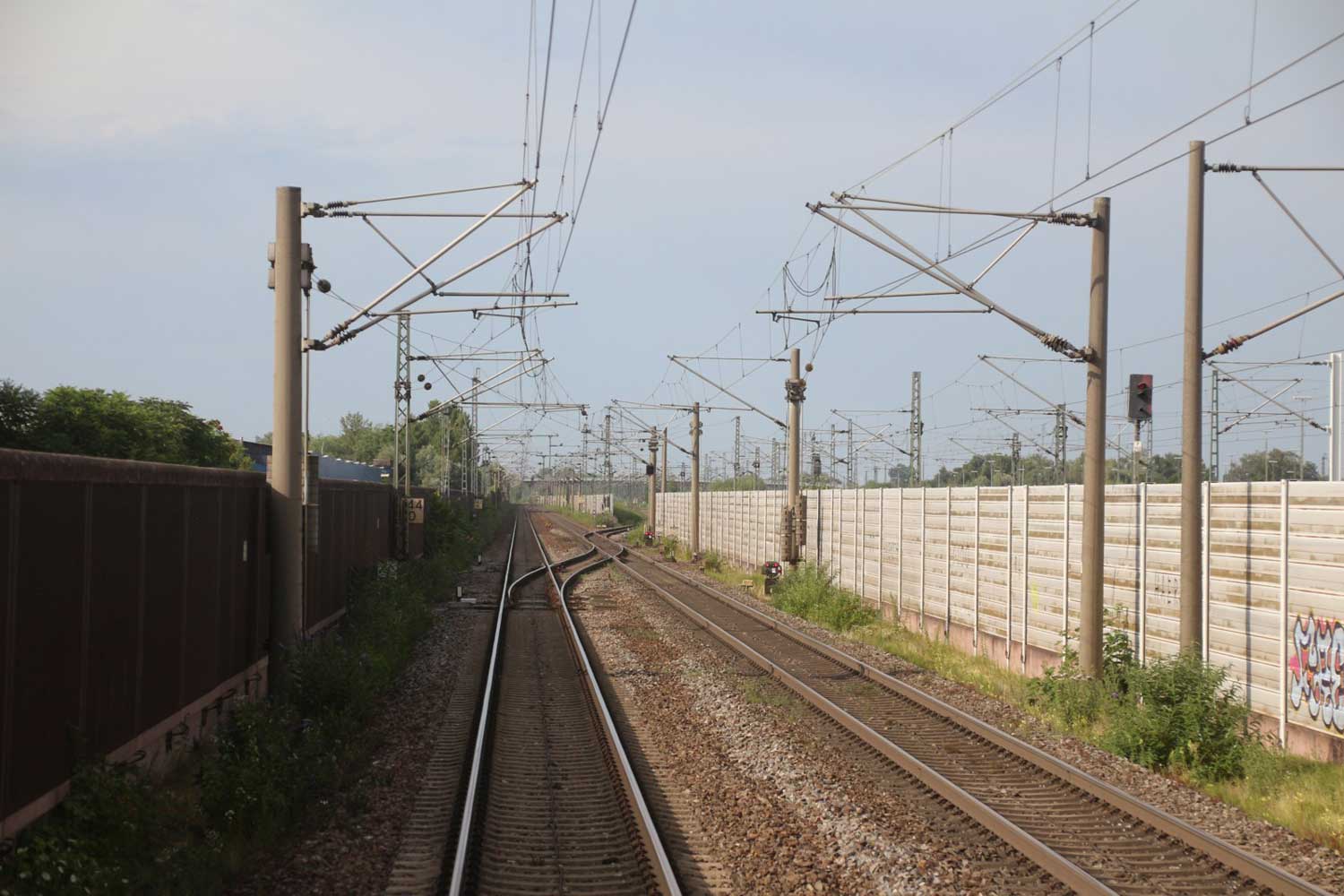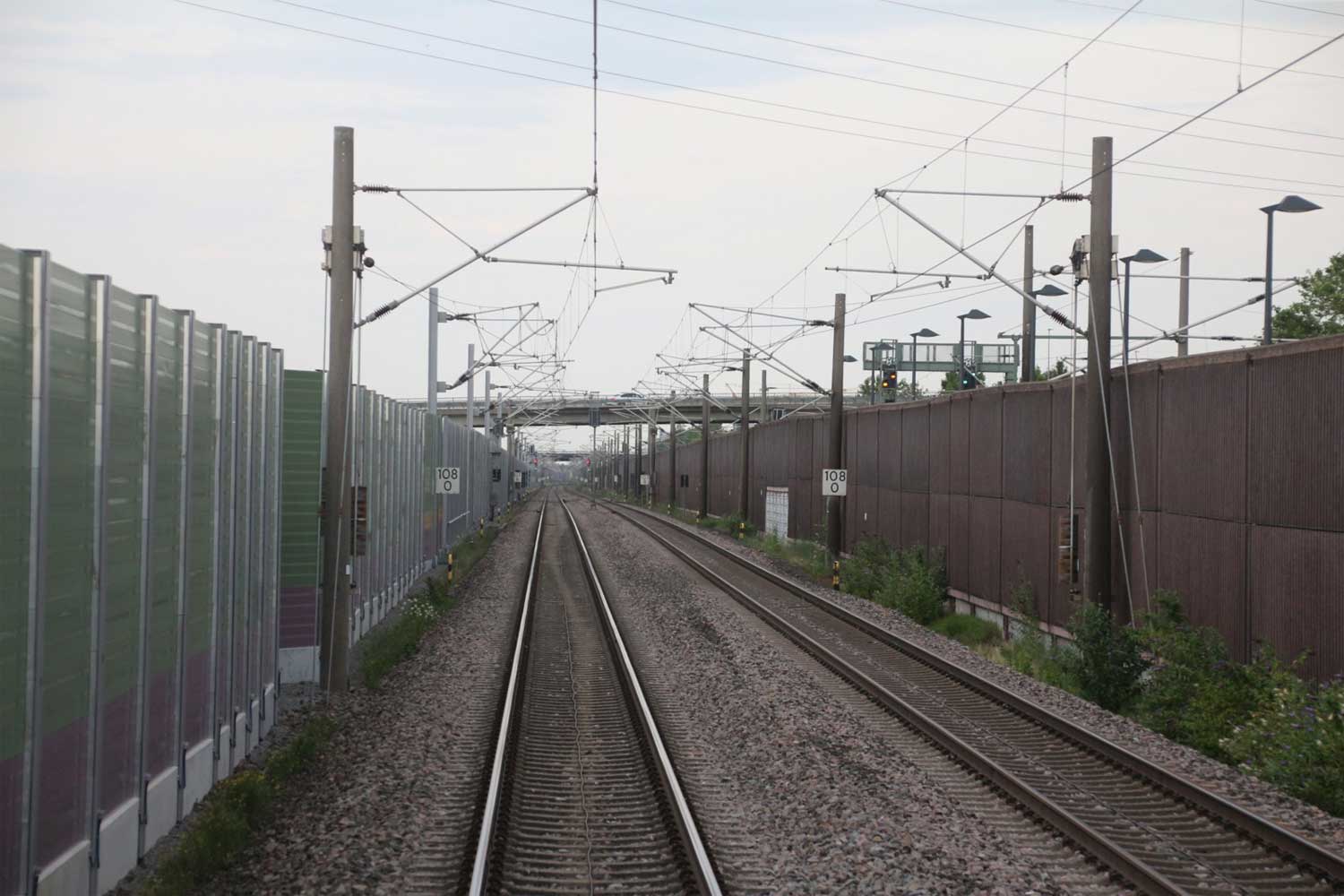 Rechts hinter der Lärmschutzwand die Strecke