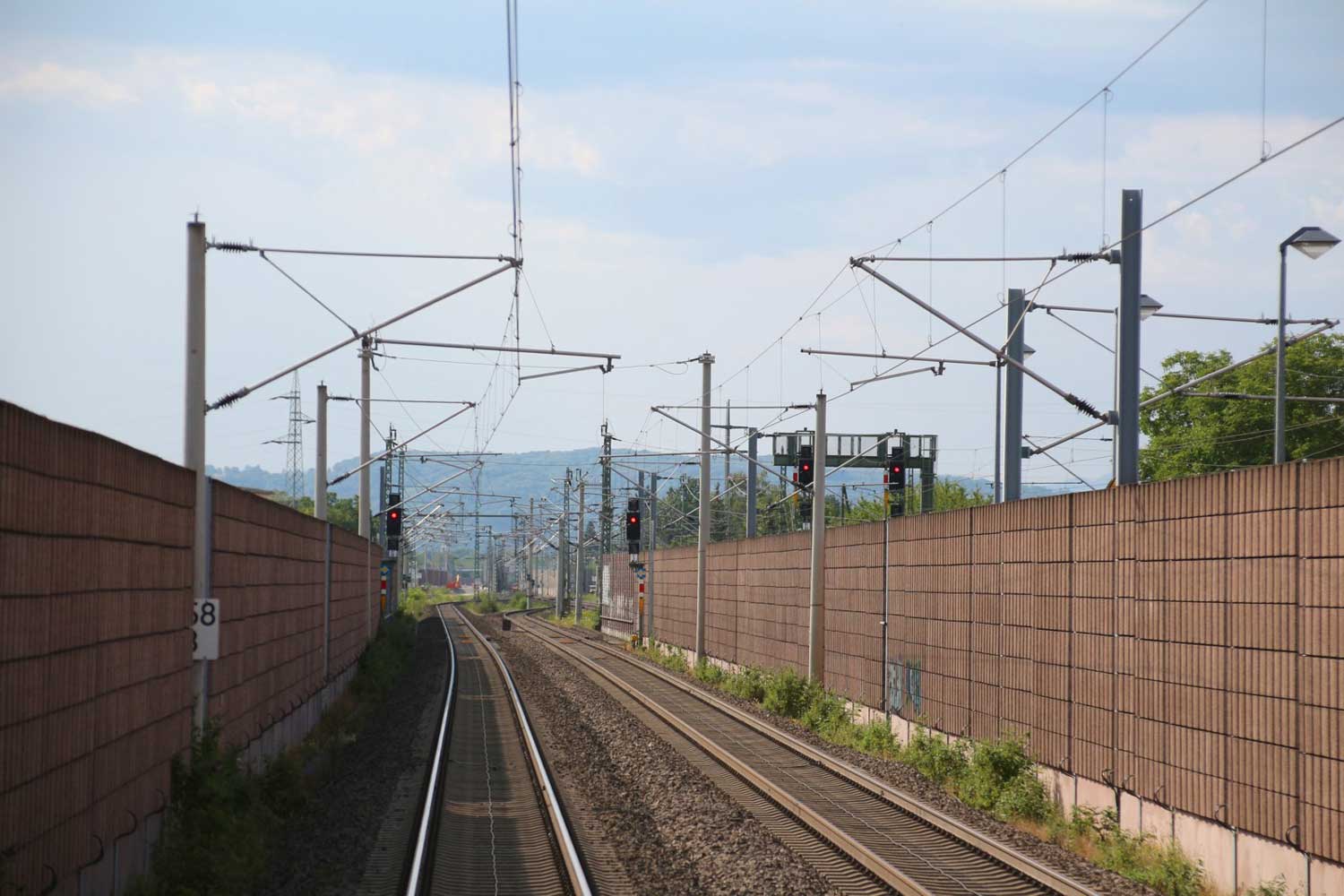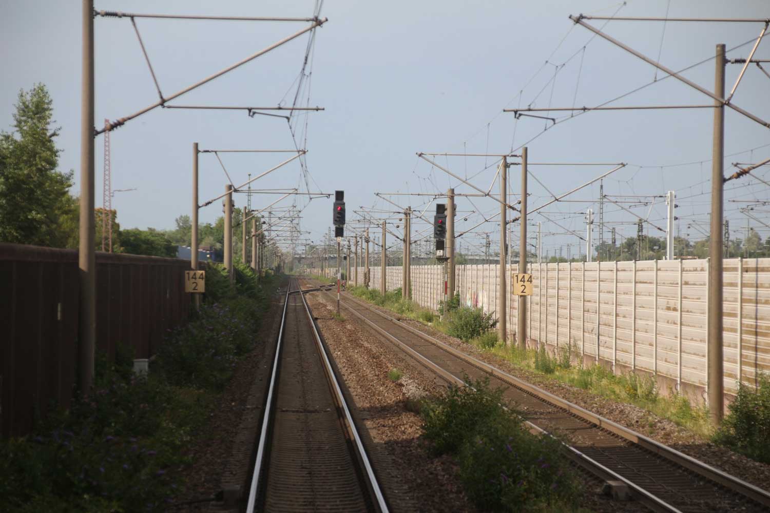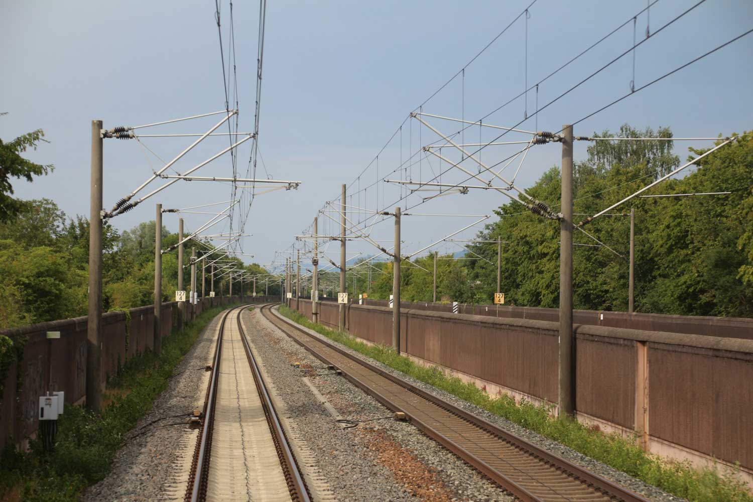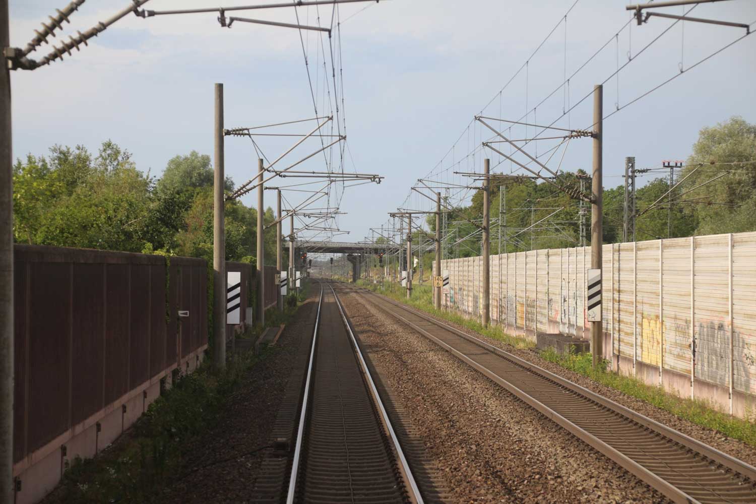 Rechts hinter der Lärmschutzwand die Strecke
