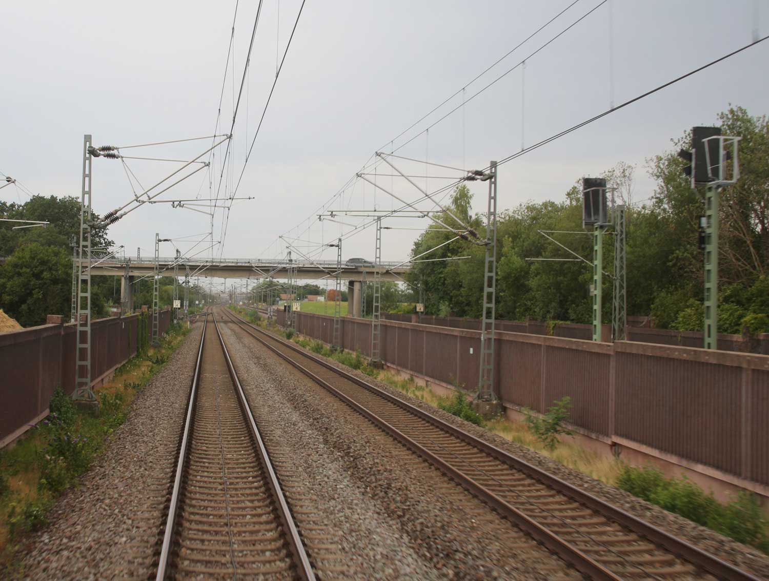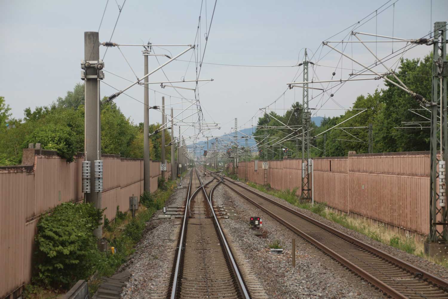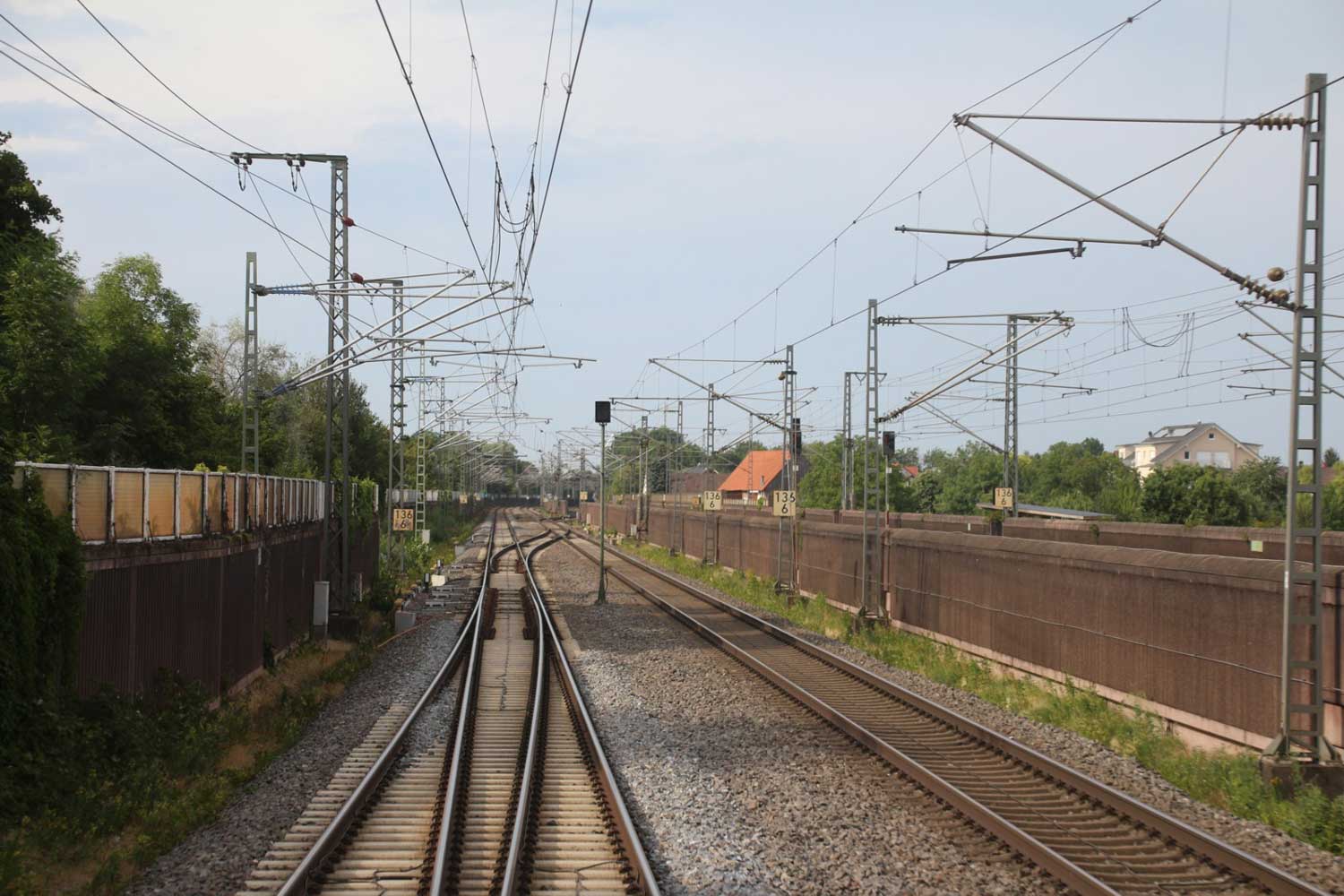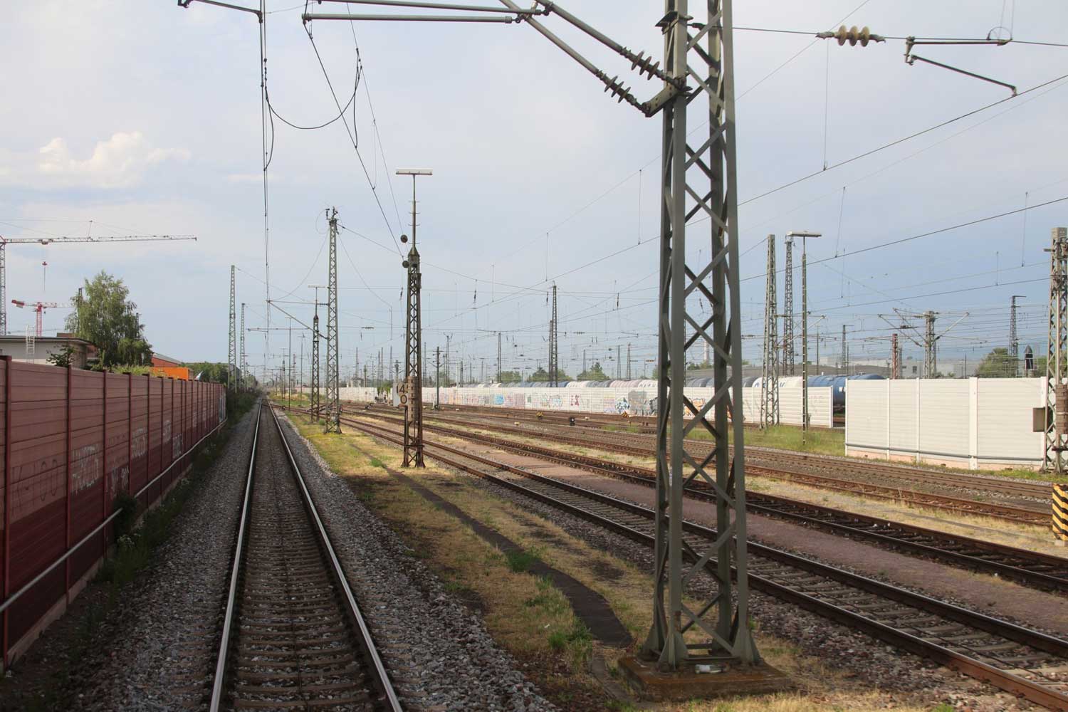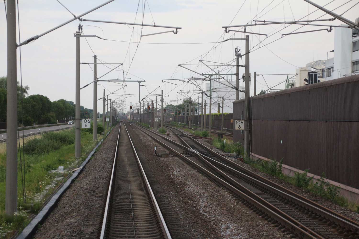 Rechts hinter der Lärmschutzwand die Strecke