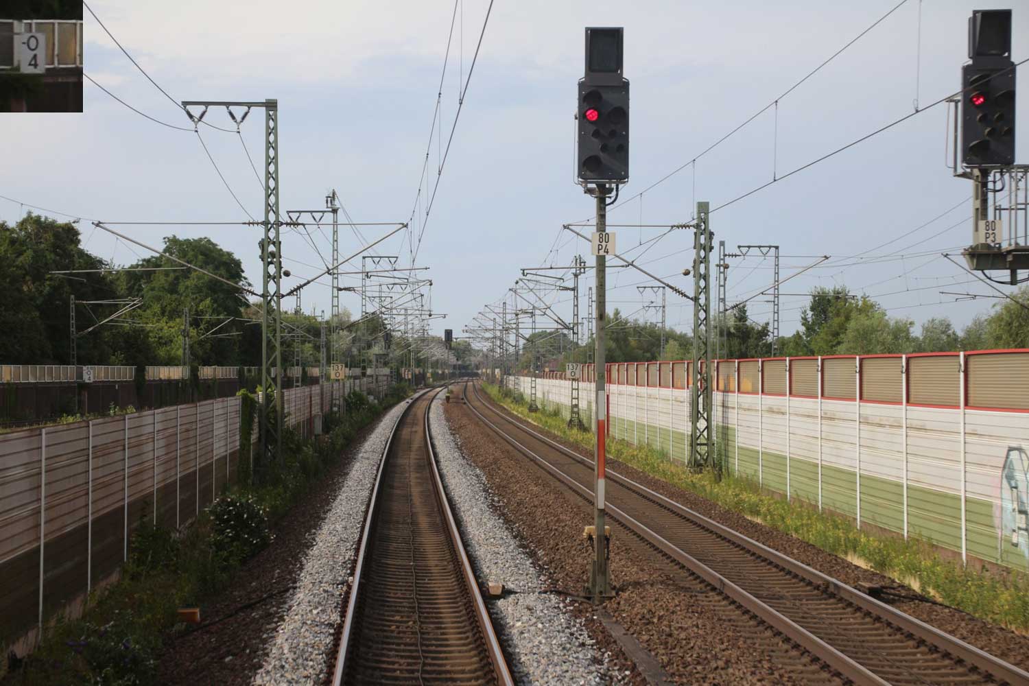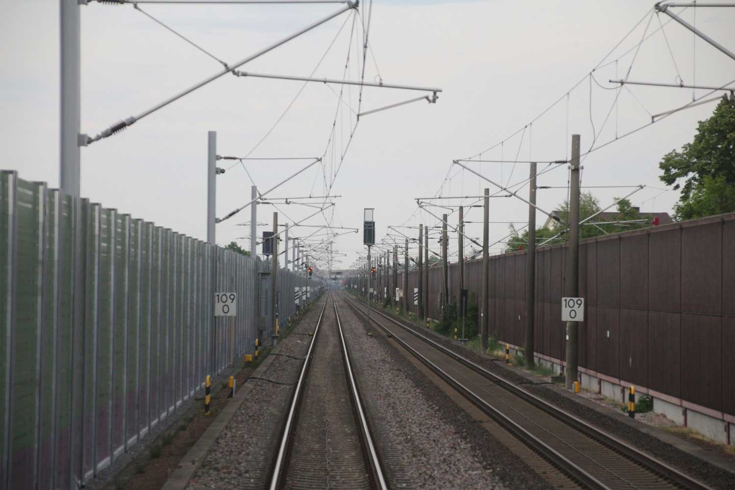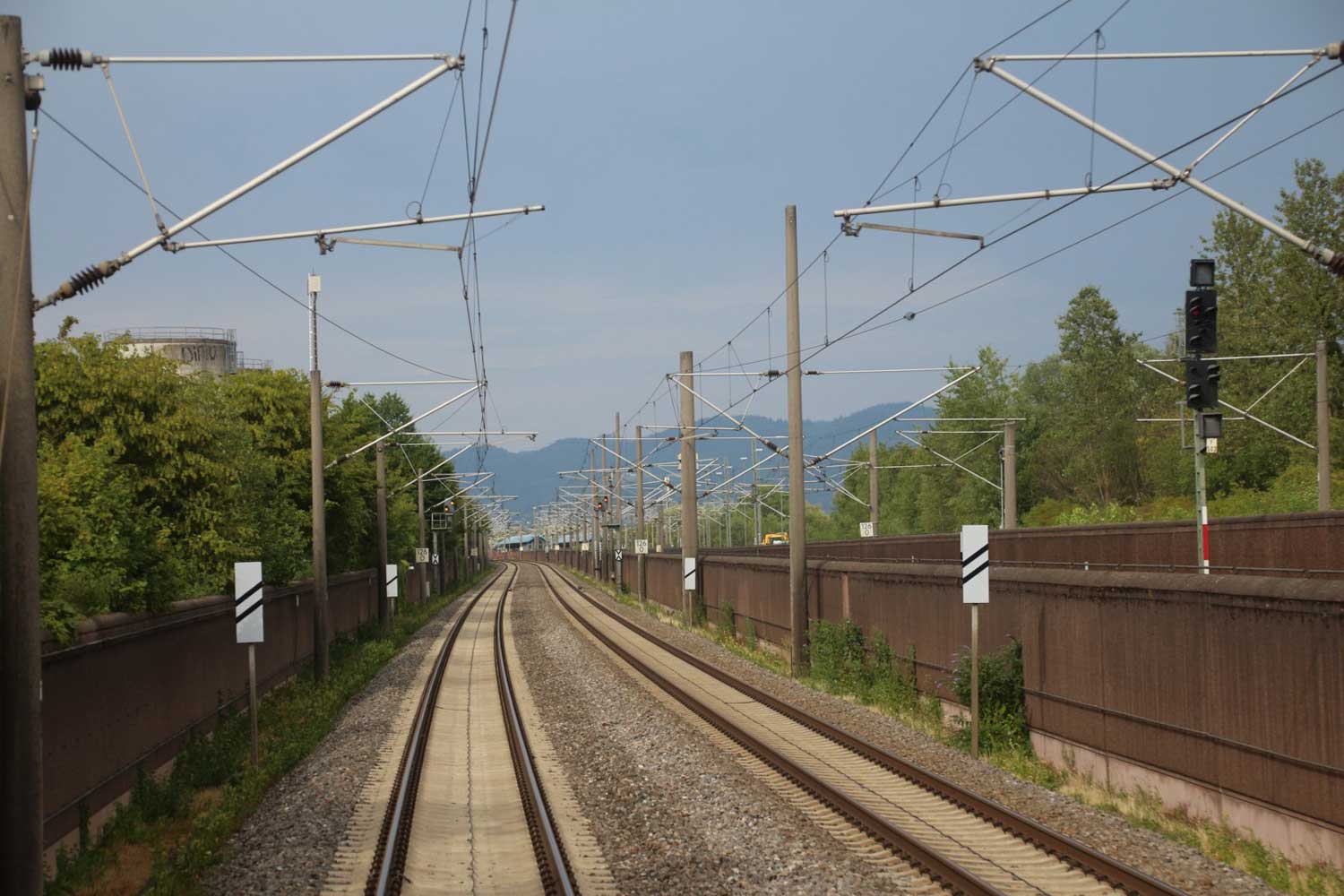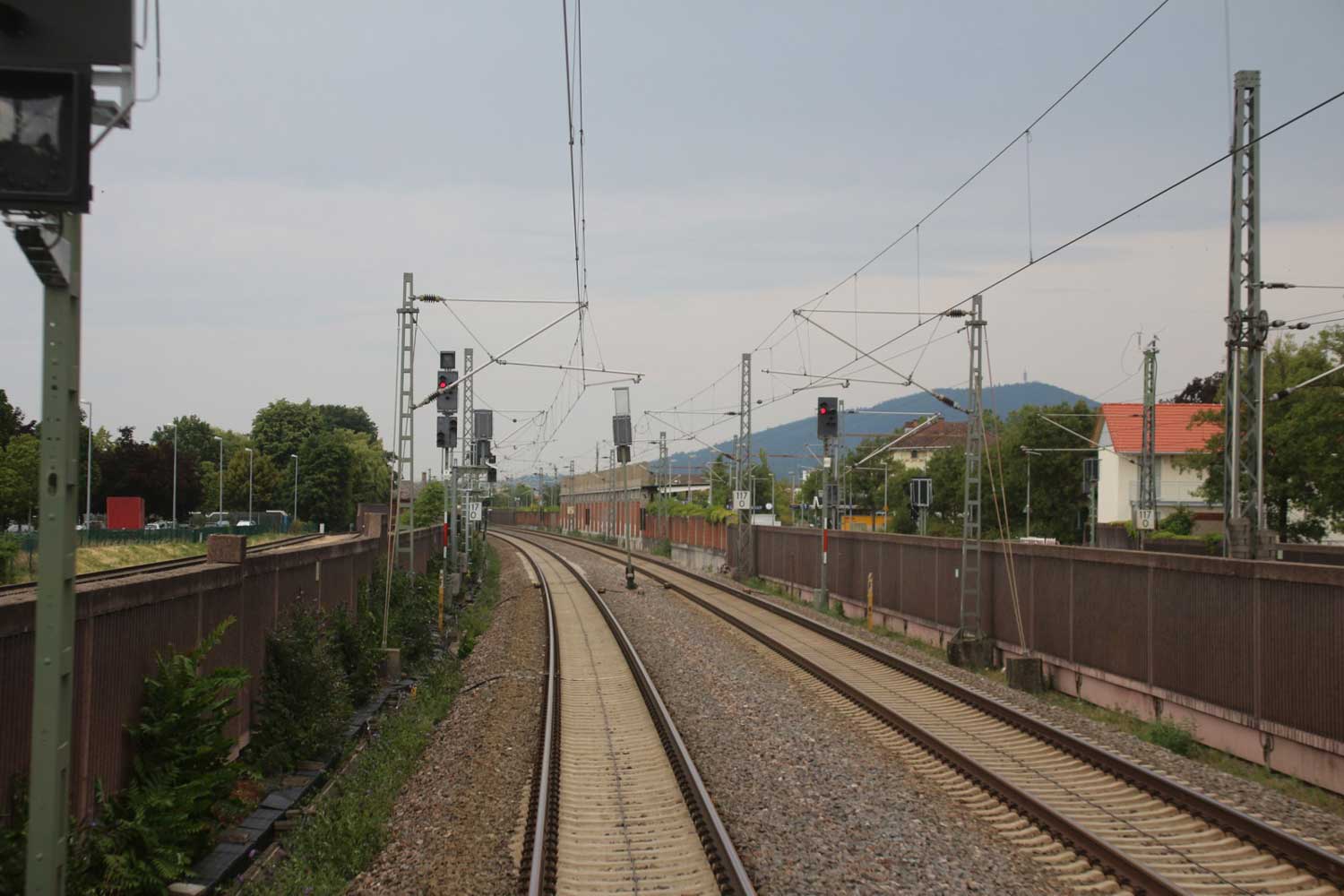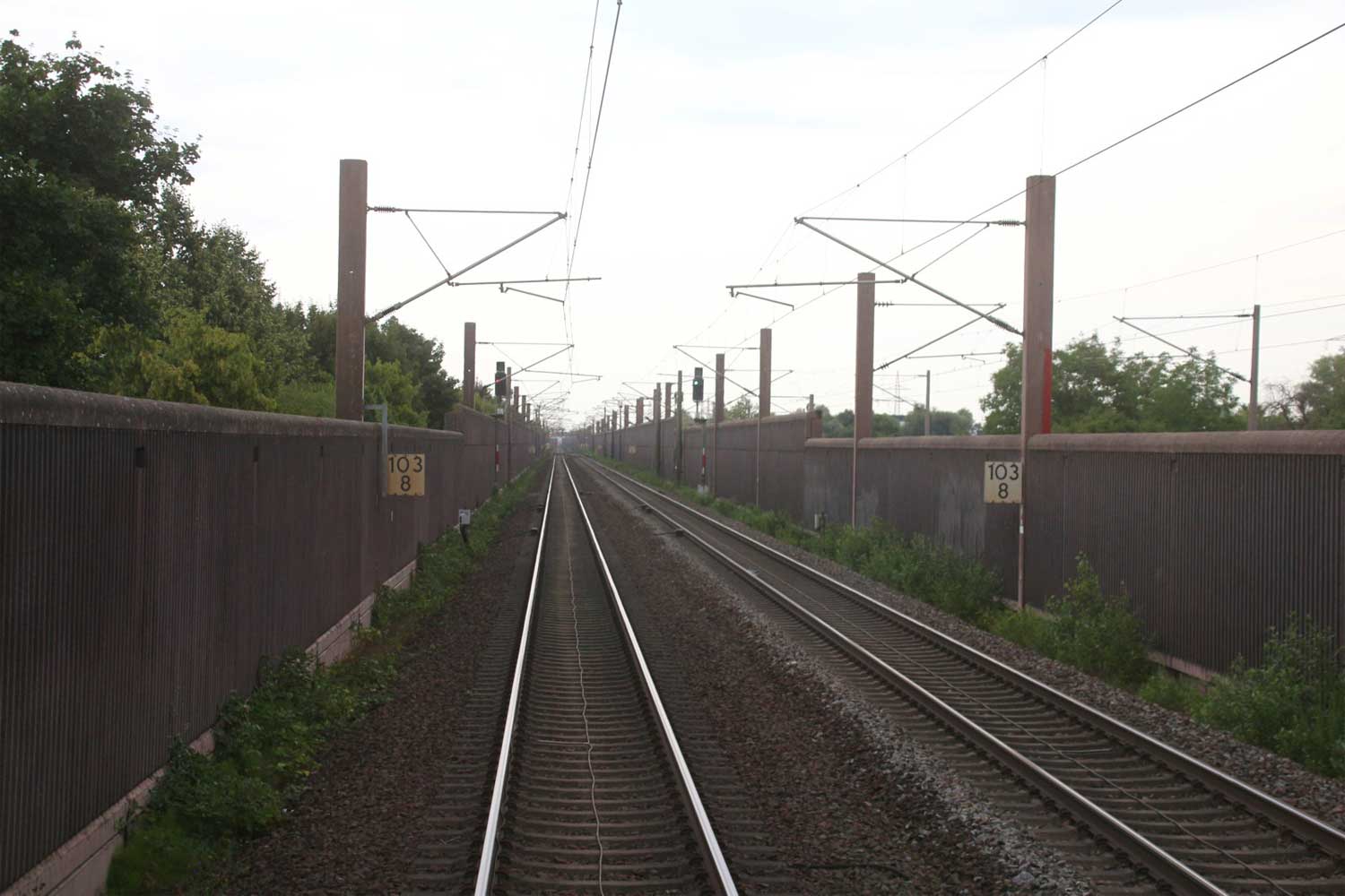 Rechts hinter der Lärmschutzwand die Strecke