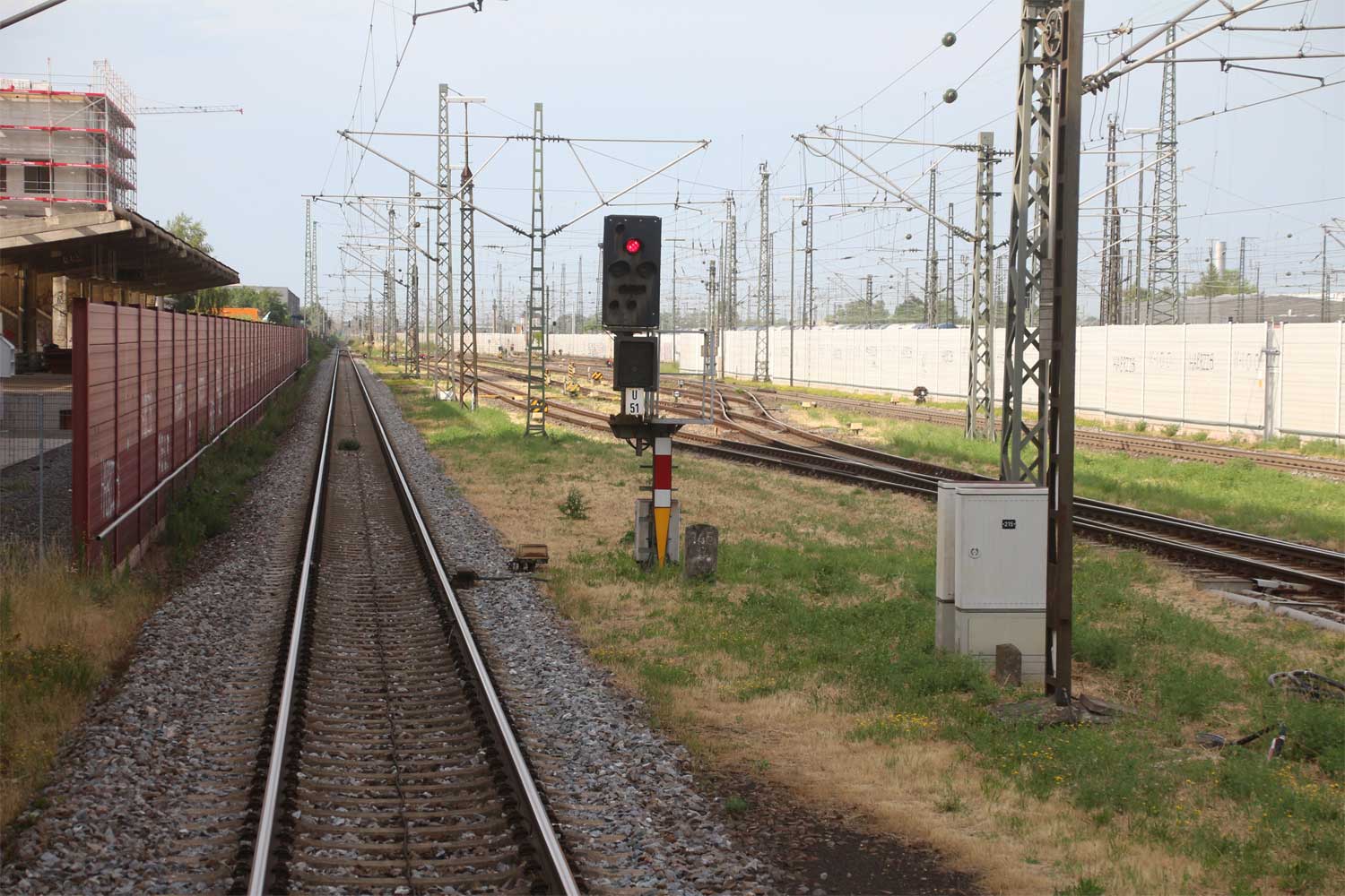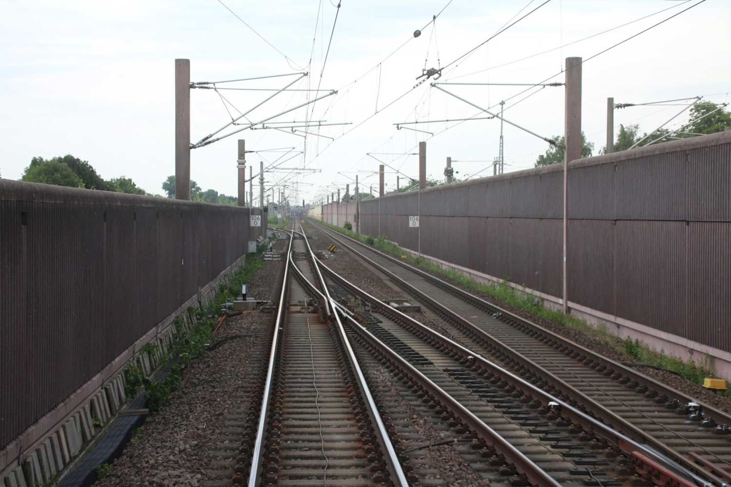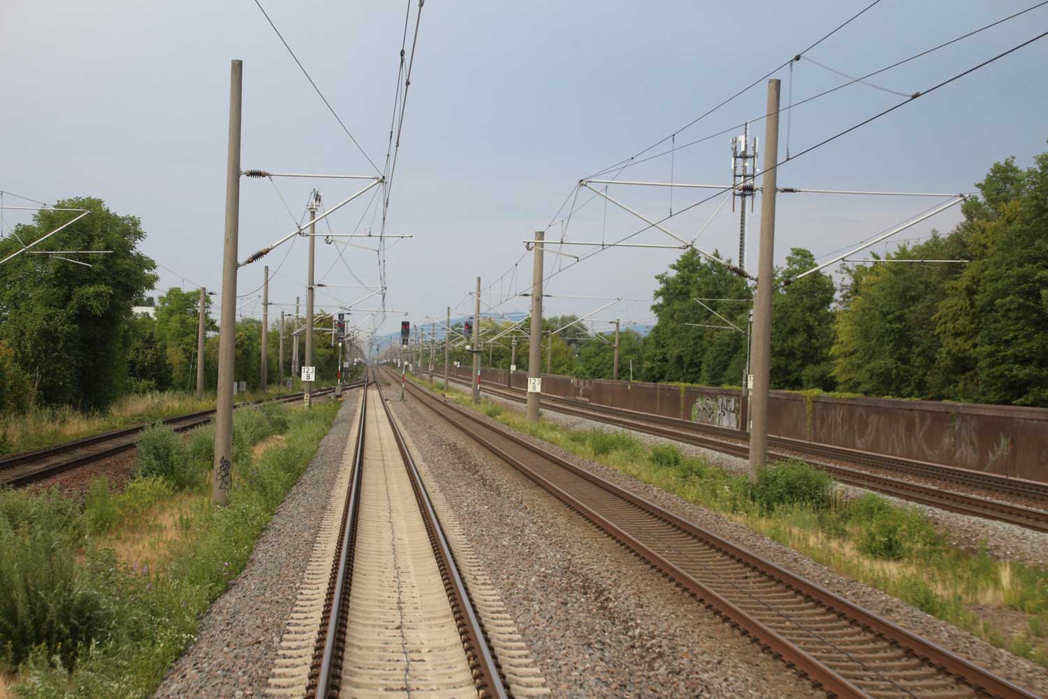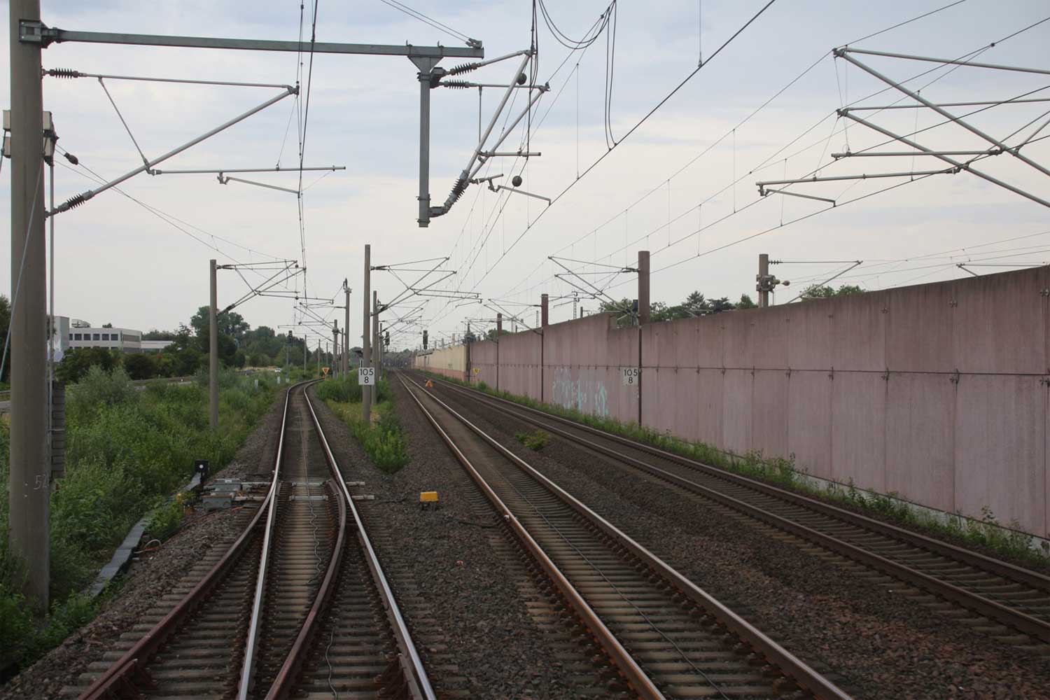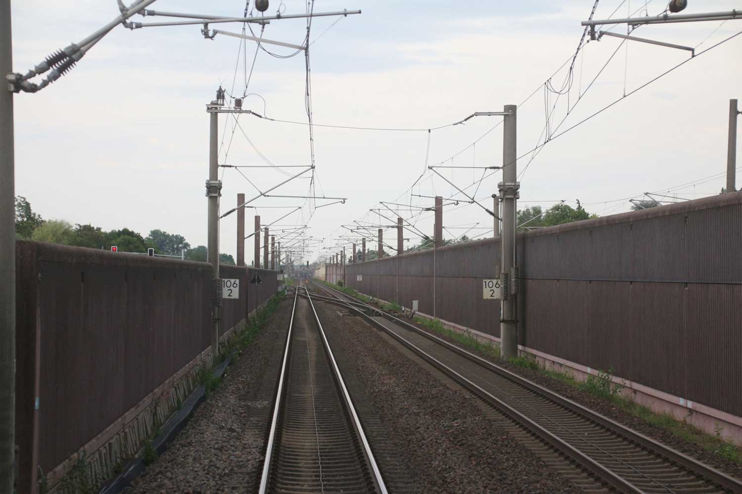 Rechts hinter der Lärmschutzwand die Strecke