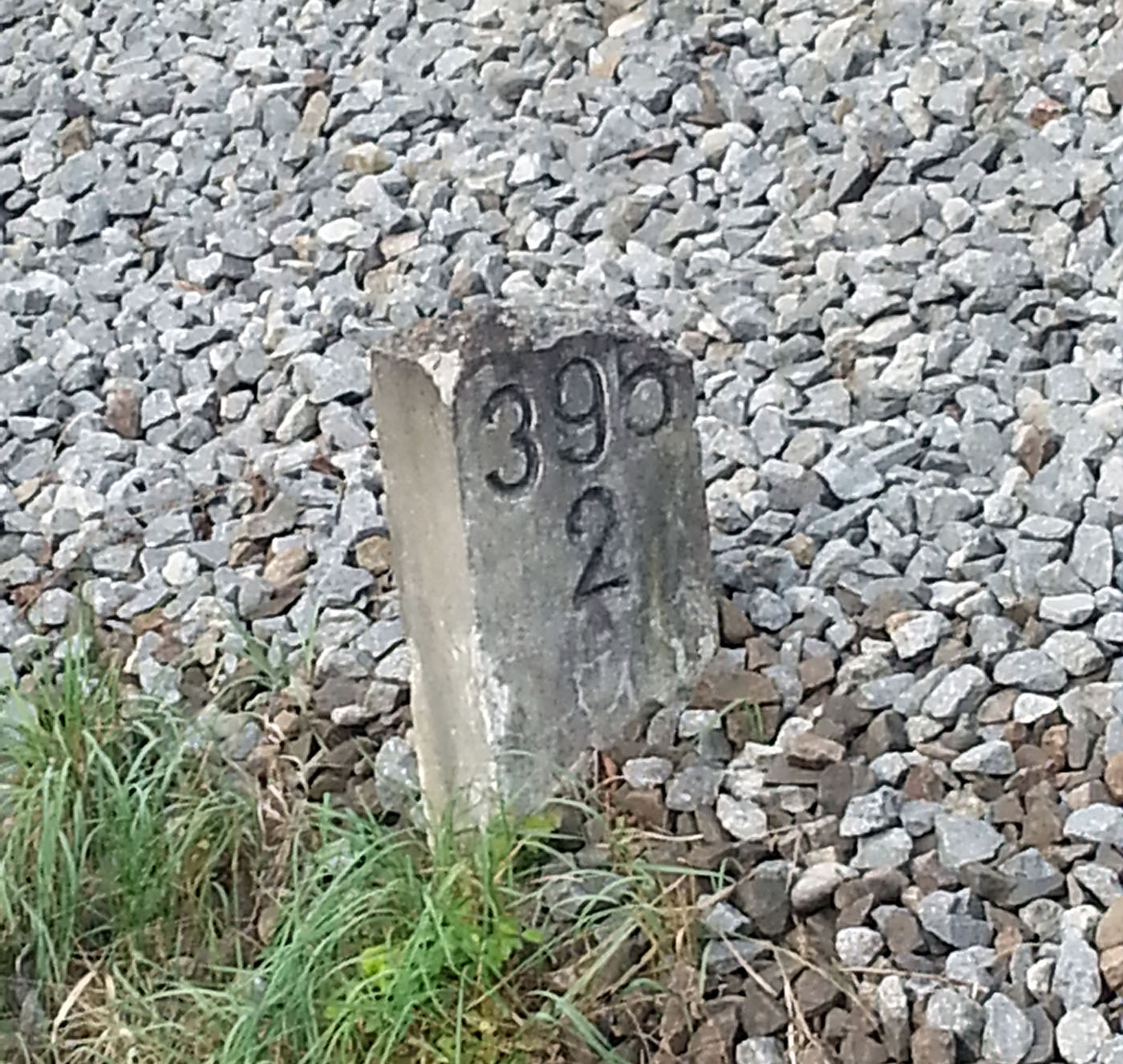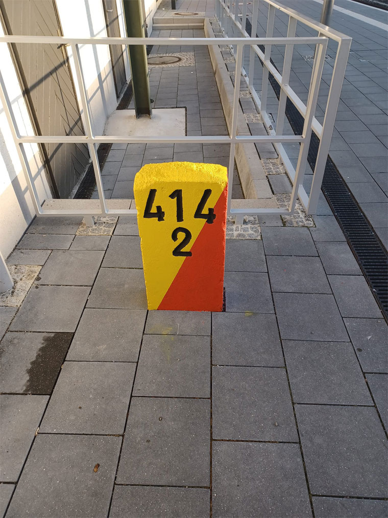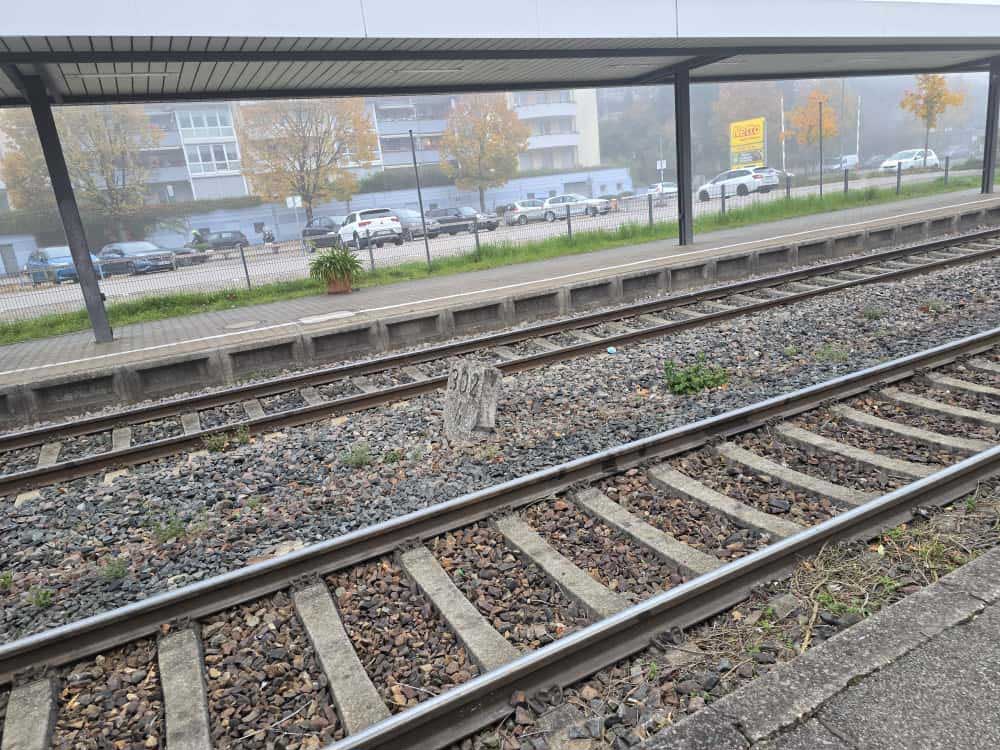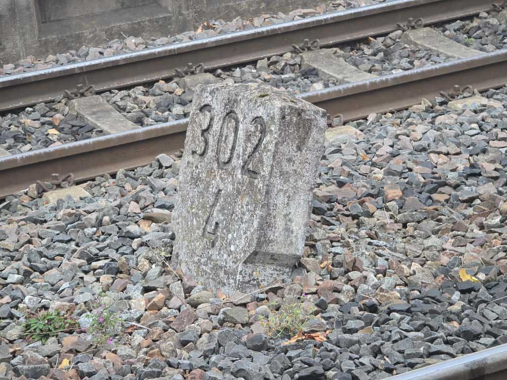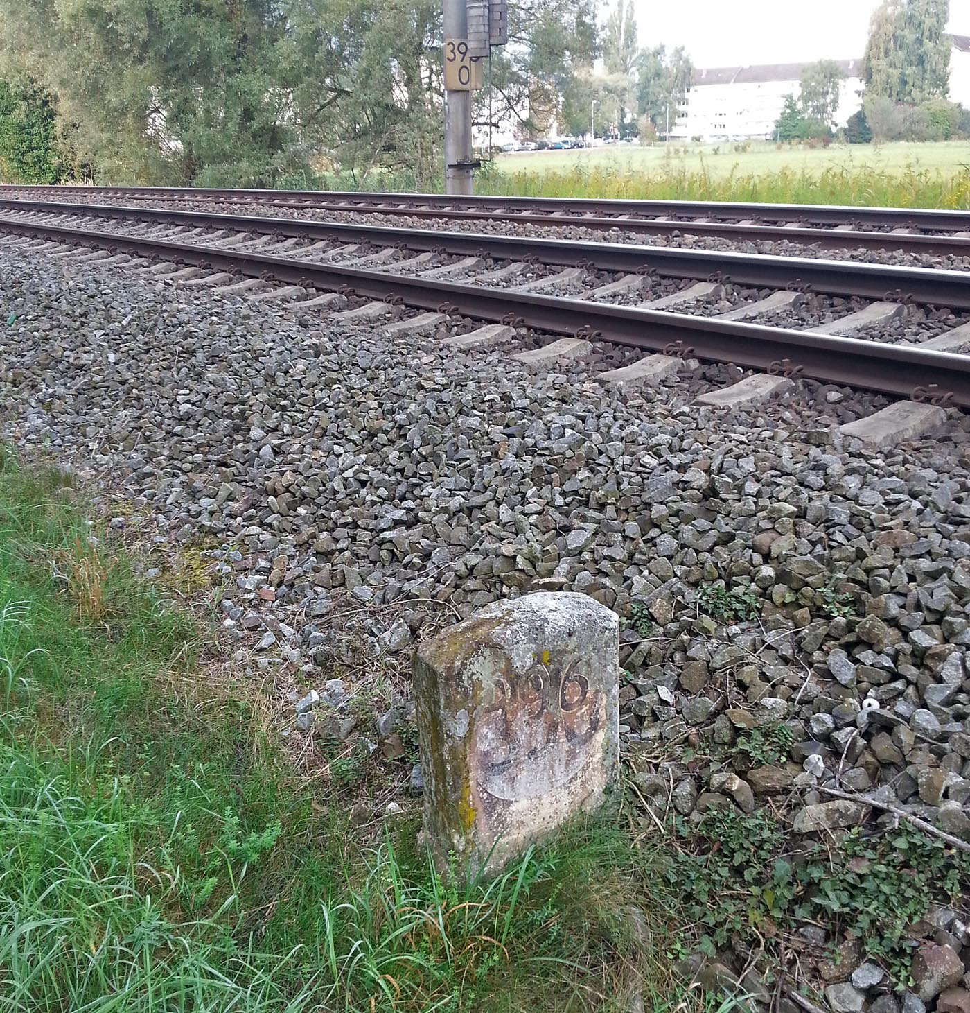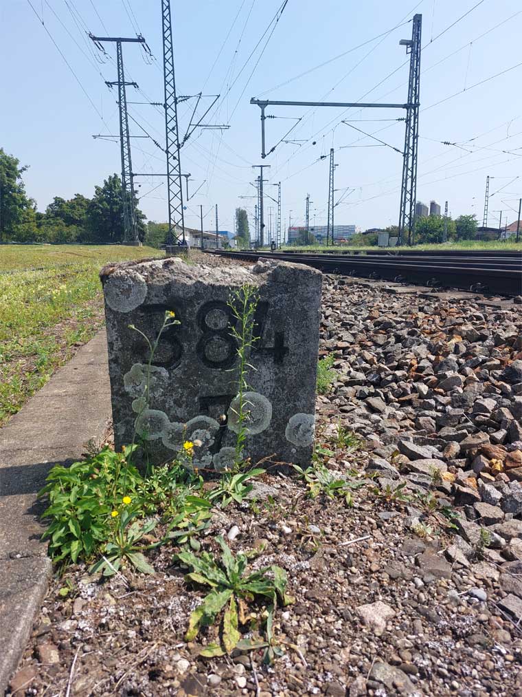 km 414,0 (Tafel und Stein) in Konstanz - Blick Richtung Mannheim