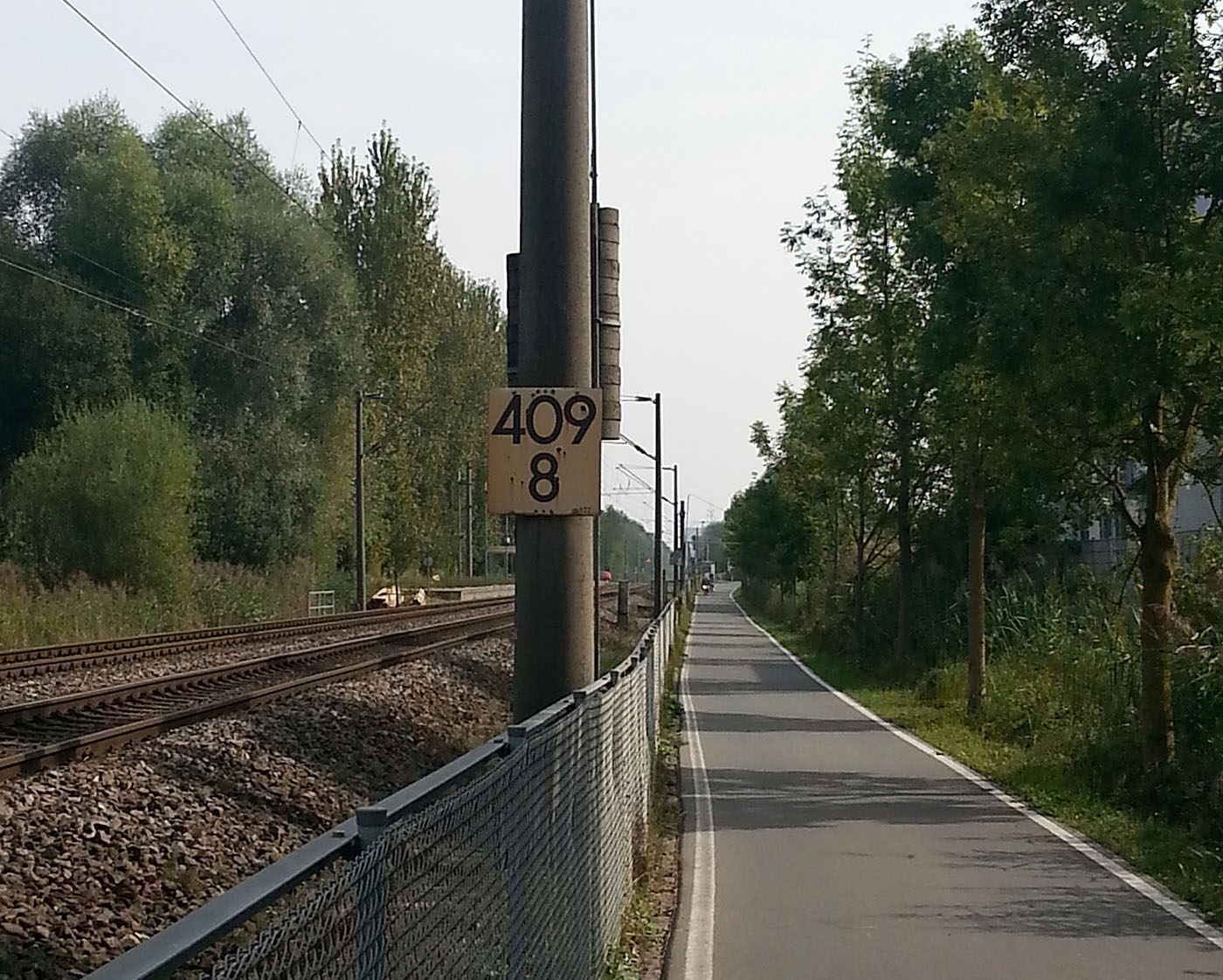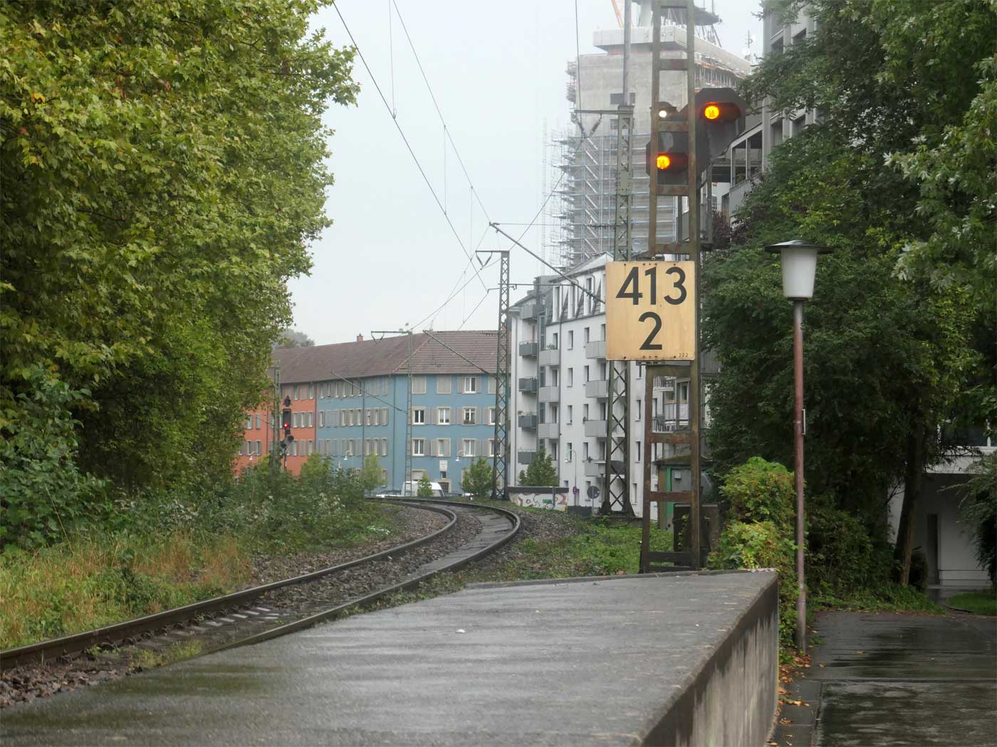 km 413,6 (Stein und Tafel) zwischen Konstanz-Petershausen und Konstanz - Blick Richtung Konstanz