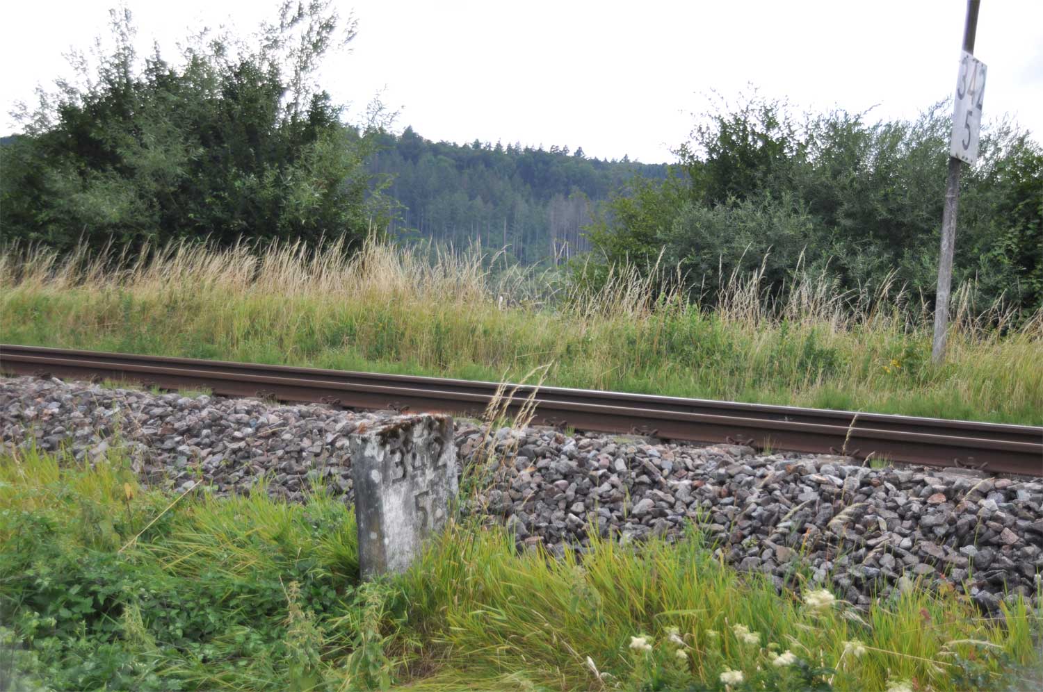 | Reichsgrenze | Hier erfolgt die Angabe der später gültigen Kilometrierung: 268,745 | |