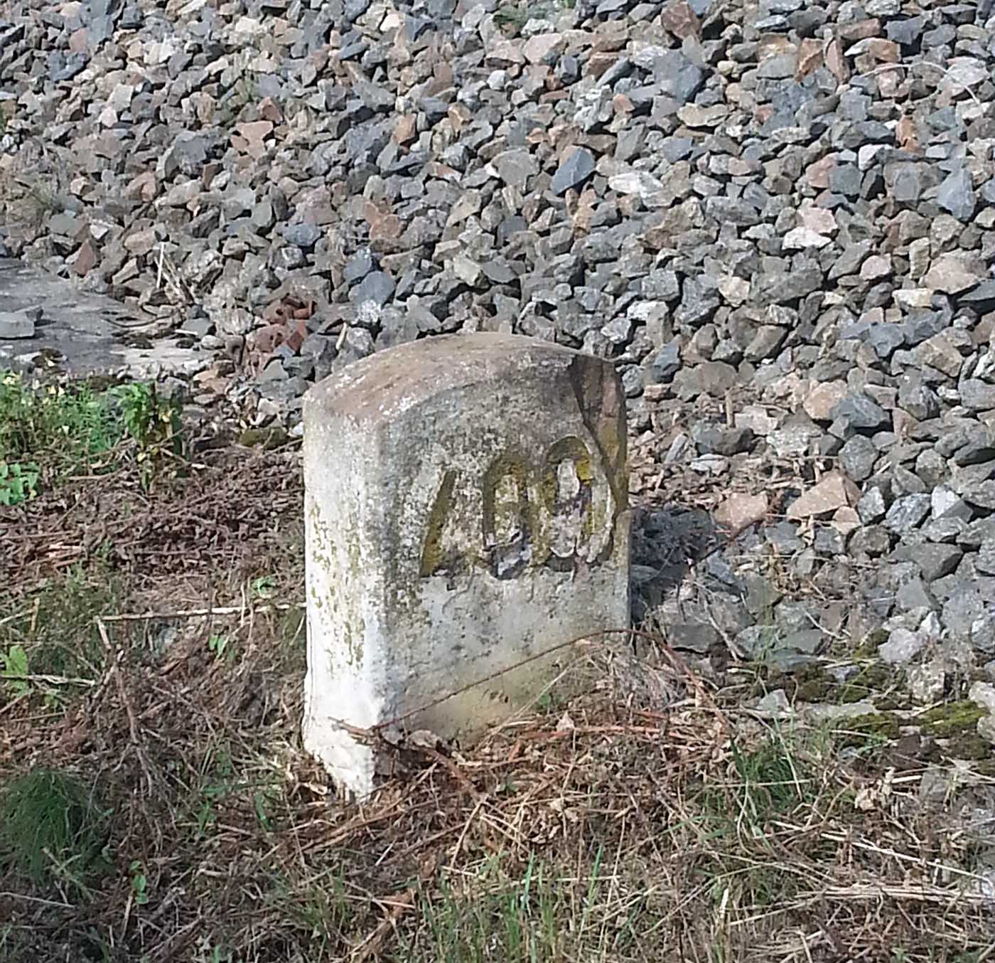 | Reichsgrenze | Hier erfolgt die Angabe der später gültigen Kilometrierung: 2414,83 | |