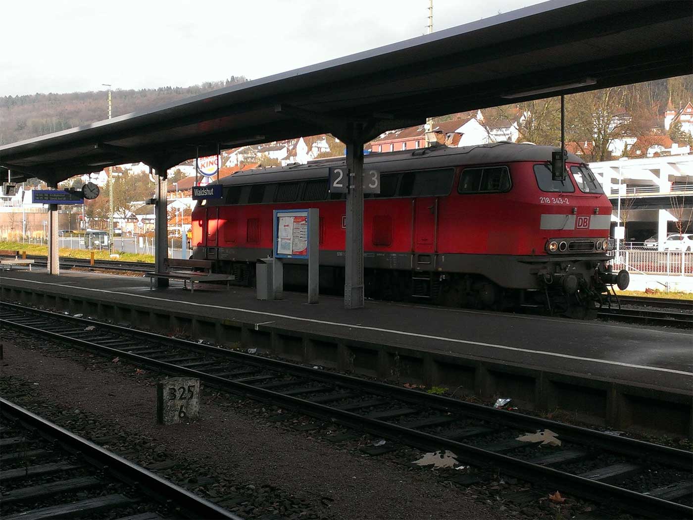 | Heidelberg Hbf | 18,71 | km 0,0 der Strecke Heidelberg Hbf 0,0 - Meckesheim 19,80 - Neckarelz 51,85 - Osterburken 81,29 - Lauda 116,08 - Würzburg-Heidingsfeld West 153,69 - Abzw. 154,01 |