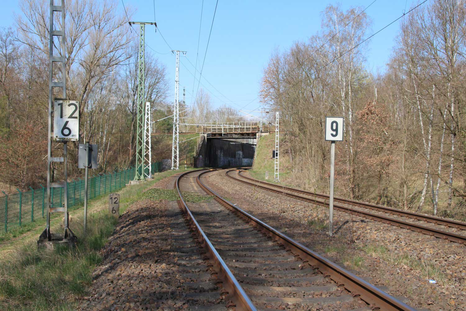 km 12,2 (Gegenrichtungsgleis) am Grünauer Kreuz - Blick Richtung Görlitz