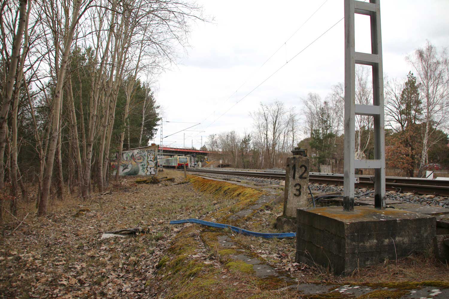 km 12,2 (Tafel im Hintergrund) gehört zur S-Bahnstrecke