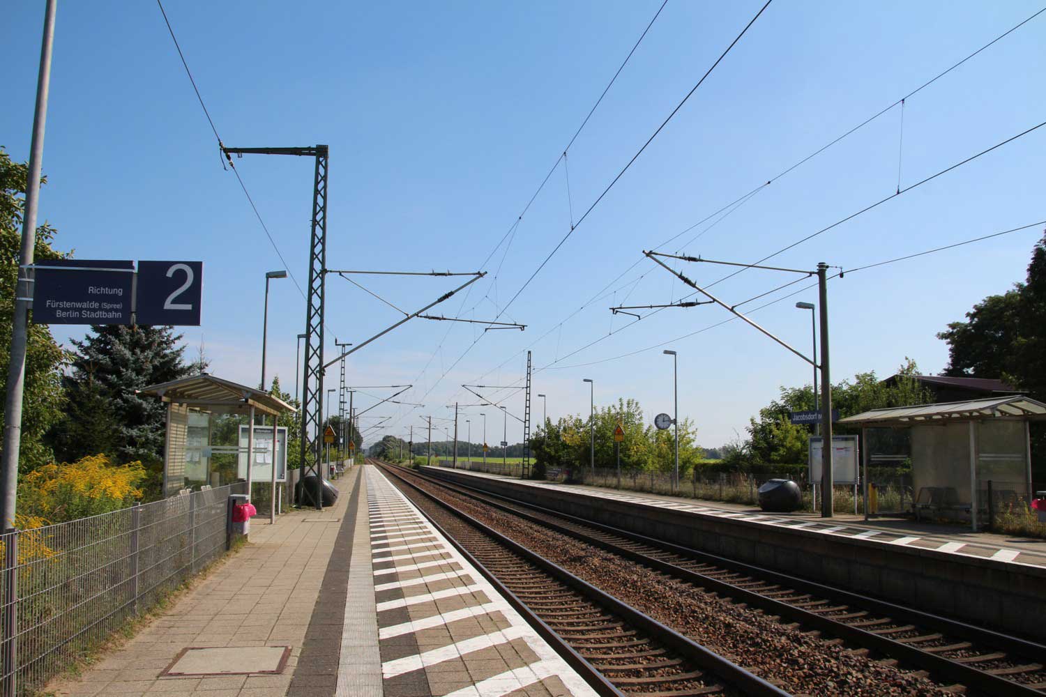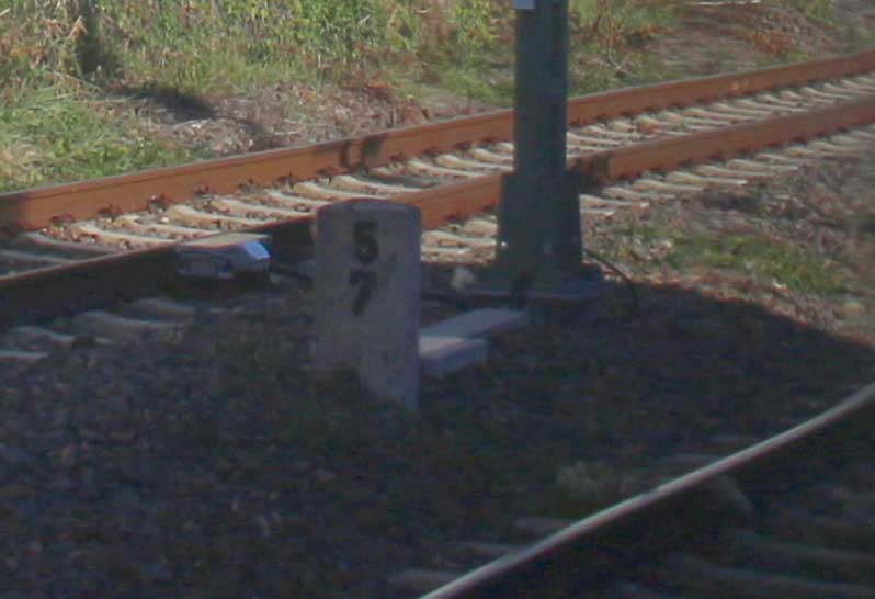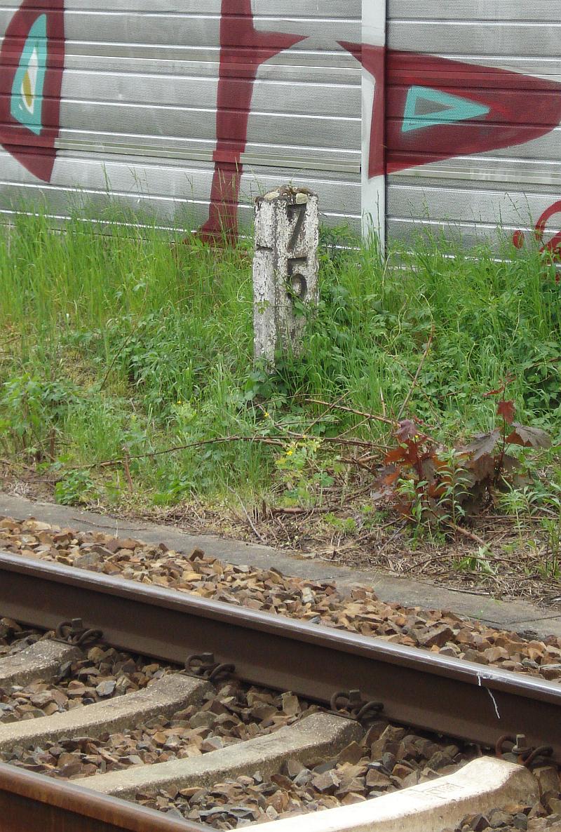 ► | km 75,95 der abgehenden Strecke (Berlin Schlesischer Bf 0,10) - Rosengarten (Kr Lebus) 75,95 - Frankfurt (Oder) Vbf 81,50 mit weiterlaufender Kilometrierung (Streckenverzweigung mit gemeinsamen Nullpunkt Berlin Schlesischer Bf) | |