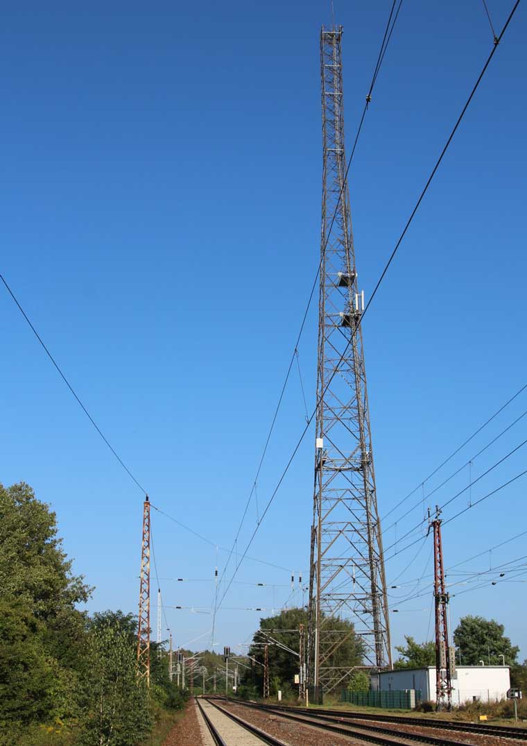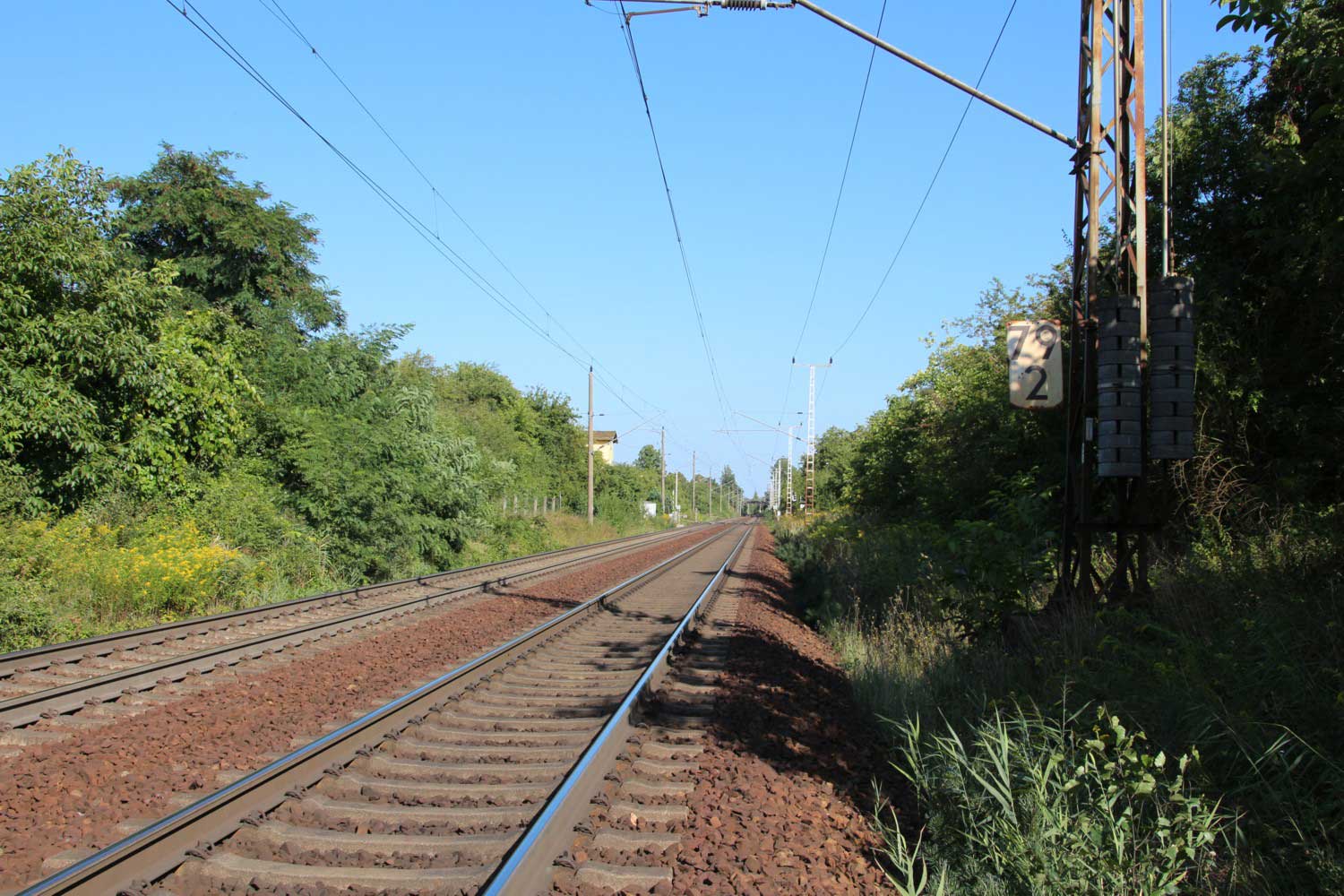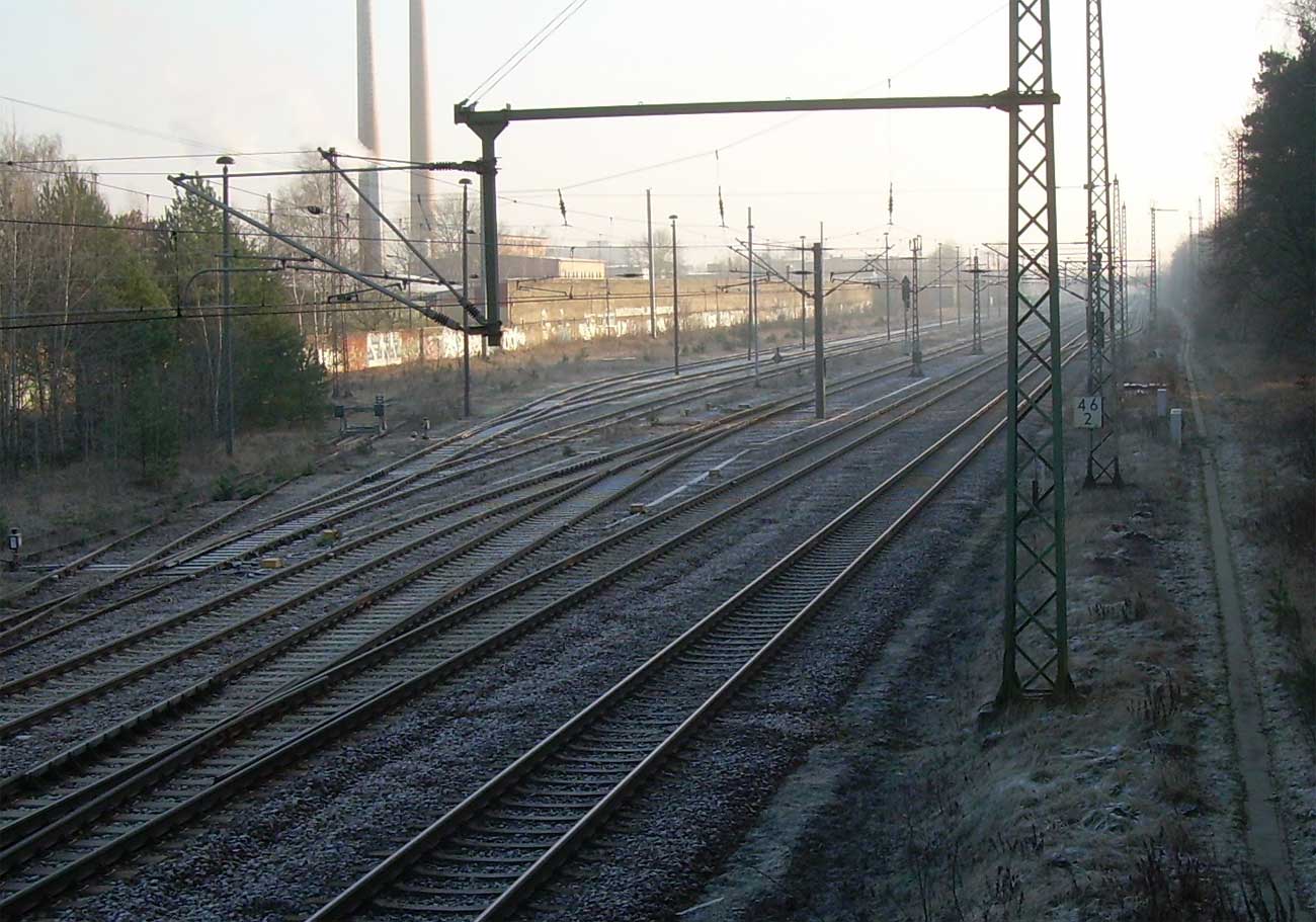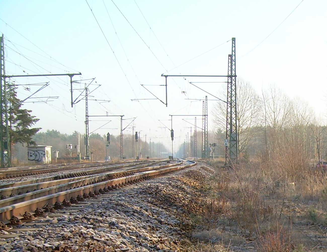 km 152,79 der Strecke Großenhain Cottb. Bf 0,0 - Senftenberg 45,29 - Cottbus 79,67 - Frankfurt (Oder) Pbf 152,85 (Personenzuggleise)/152,79 (Güterzuggleise) | ||