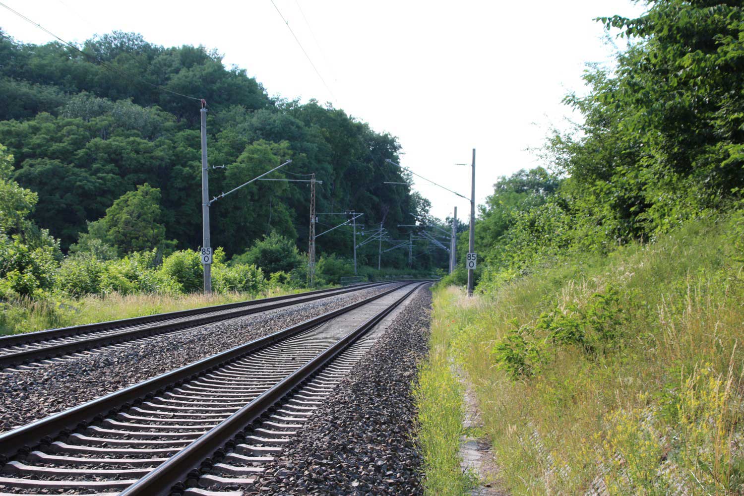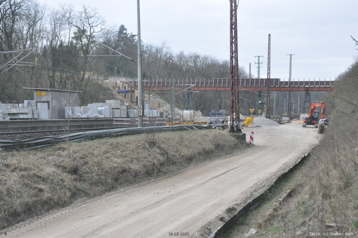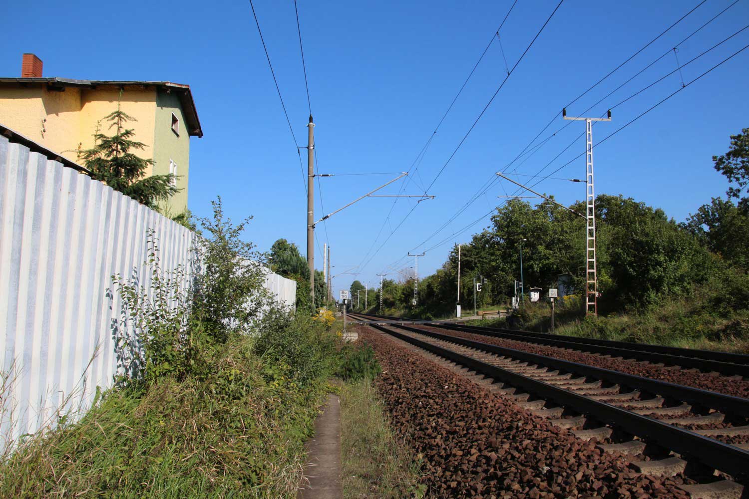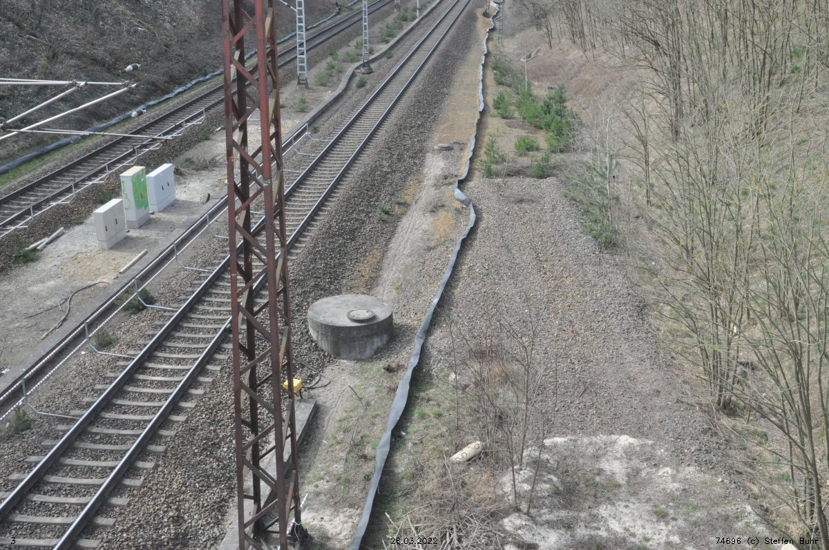 Ganz rechts im Bild ist noch das Schienenprofil der Verbindungskurve