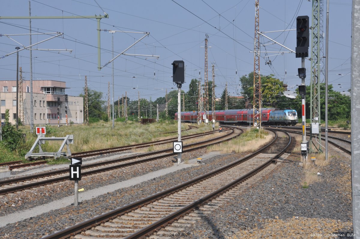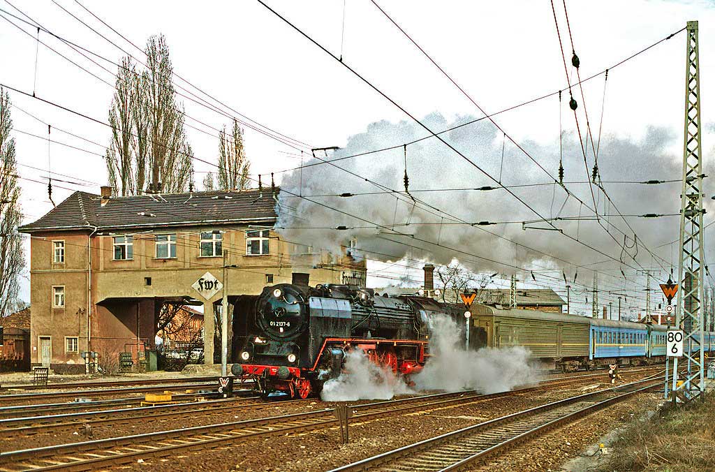 Frankfurt (Oder) Pbf | 81,20 | km 131,11 der Strecke (Berlin Stettiner Bf -0,28) - Eberswalde 45,24 (Abzw. von Strecke 2) - Wriezen 75,57 - Frankfurt (Oder) Pbf 131,11 mit Verbindungskurve Abzw. Vso 101,20 - Werbig Gbf 102,66 |