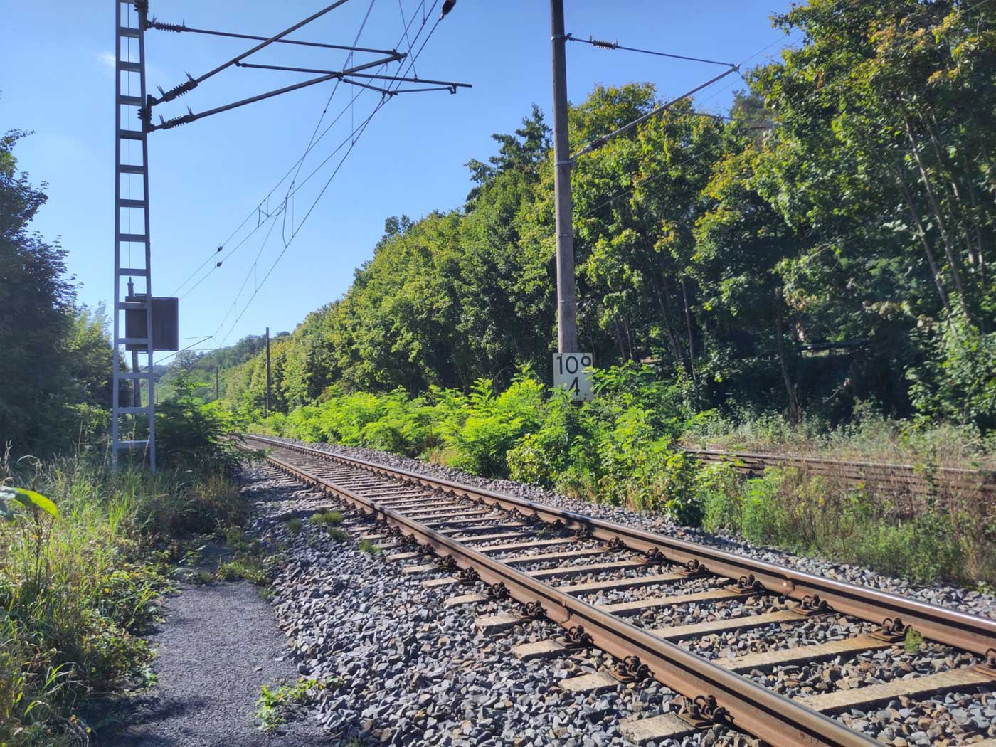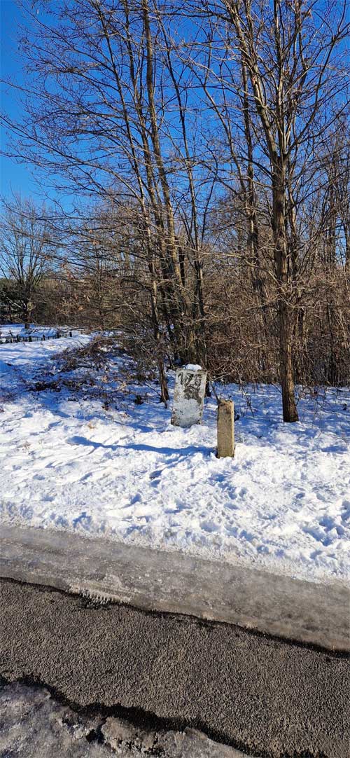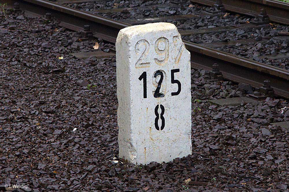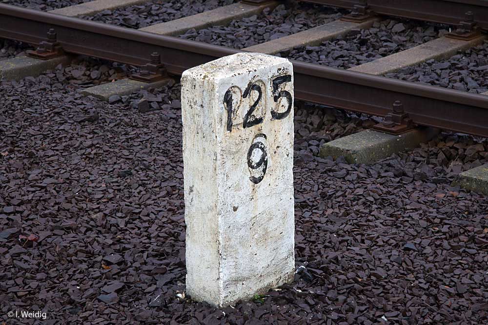 Links hinter dem Stein km 126,2 befindet sich ein weiterer Stein. Er gehört zur Strecke