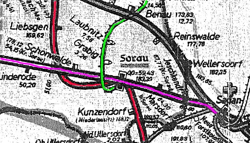 Sommerfeld Nebenbf 42,7 (bis 1945) teilweise auch Angabe: Weißwasser 0,0 - Muskau 7,71 - Teuplitz Nebenbf 30,9 - Sommerfeld Nebenbf 50,4 (bis 1945) |