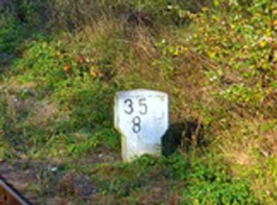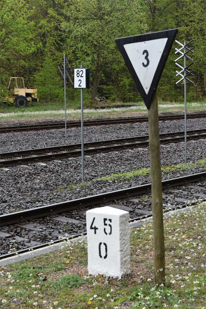 ► | km 75,95 der abgehenden Strecke (Berlin Schlesischer Bf 0,10) - Rosengarten (Kr Lebus) 75,95 - Frankfurt (Oder) Vbf 81,50 mit weiterlaufender Kilometrierung (Streckenverzweigung mit gemeinsamen Nullpunkt Berlin Schlesischer Bf) | |