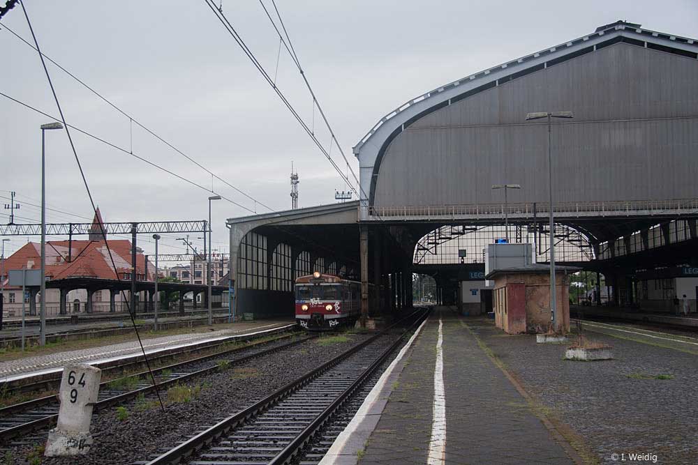 | Legnica (Liegnitz) | 65,133 | km 283,905 der Strecke Katowice (Kattowitz Hbf) 0,381 - Gliwice (Gleiwitz Hbf) 27,100 - Kędzierzyn Koźle [Heydebreck (Oberschles)] 64,162 - Nysa (Neisse) 139,075 - Kamieniec Ząbkowicki (Kamenz) 177,216 - Jaworzyna Śląska (Königszelt) 236,765 - Legnica (Liegnitz) 283.905 |