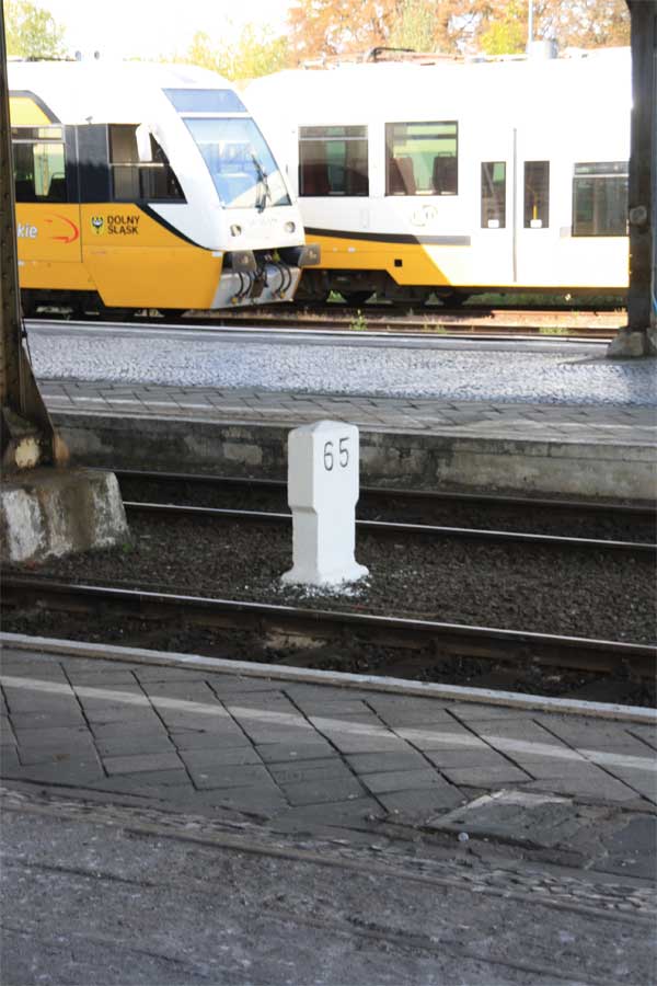 | km 0,0 der Strecke Malczyce (Maltsch a d Oder) 0,00 - Strzegom (Striegau) 36,283 - Marciszów [Merzdorf (Riesengeb)] 73,549 | ||